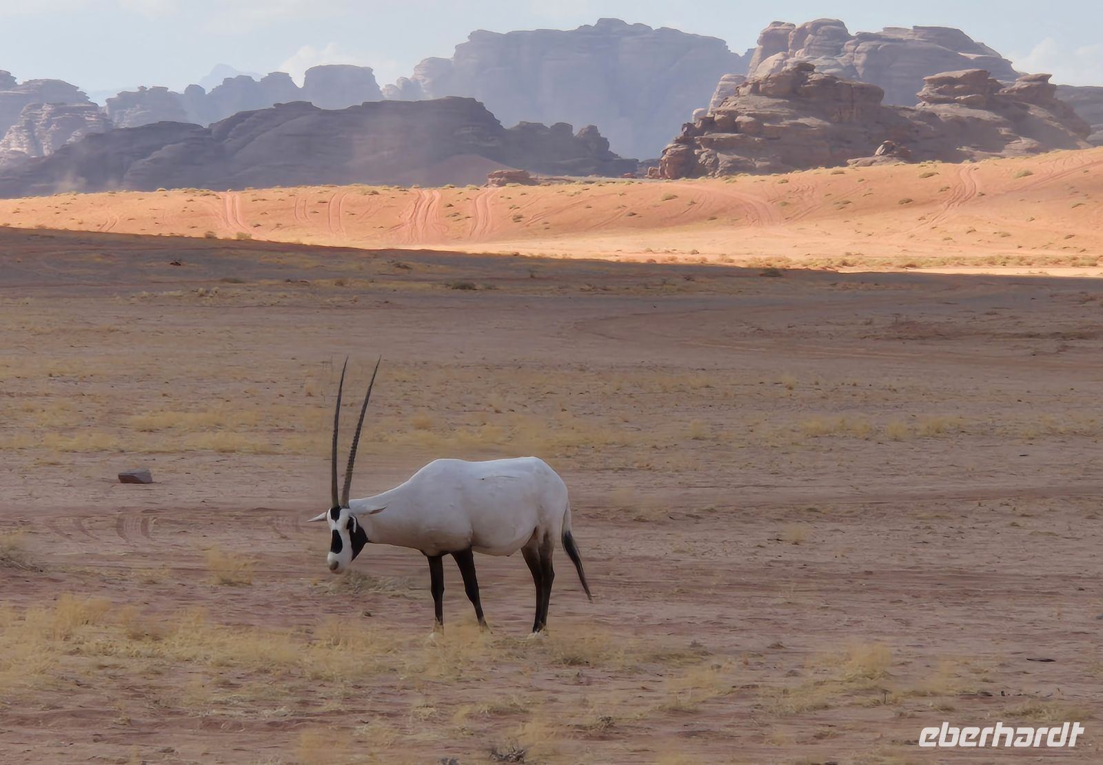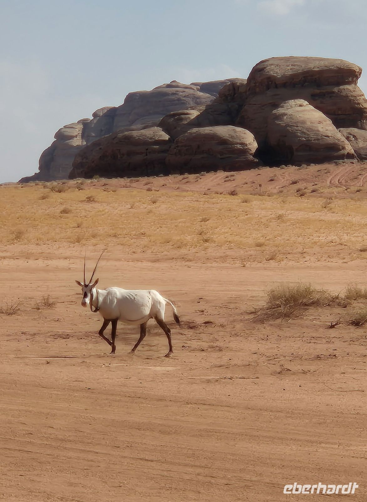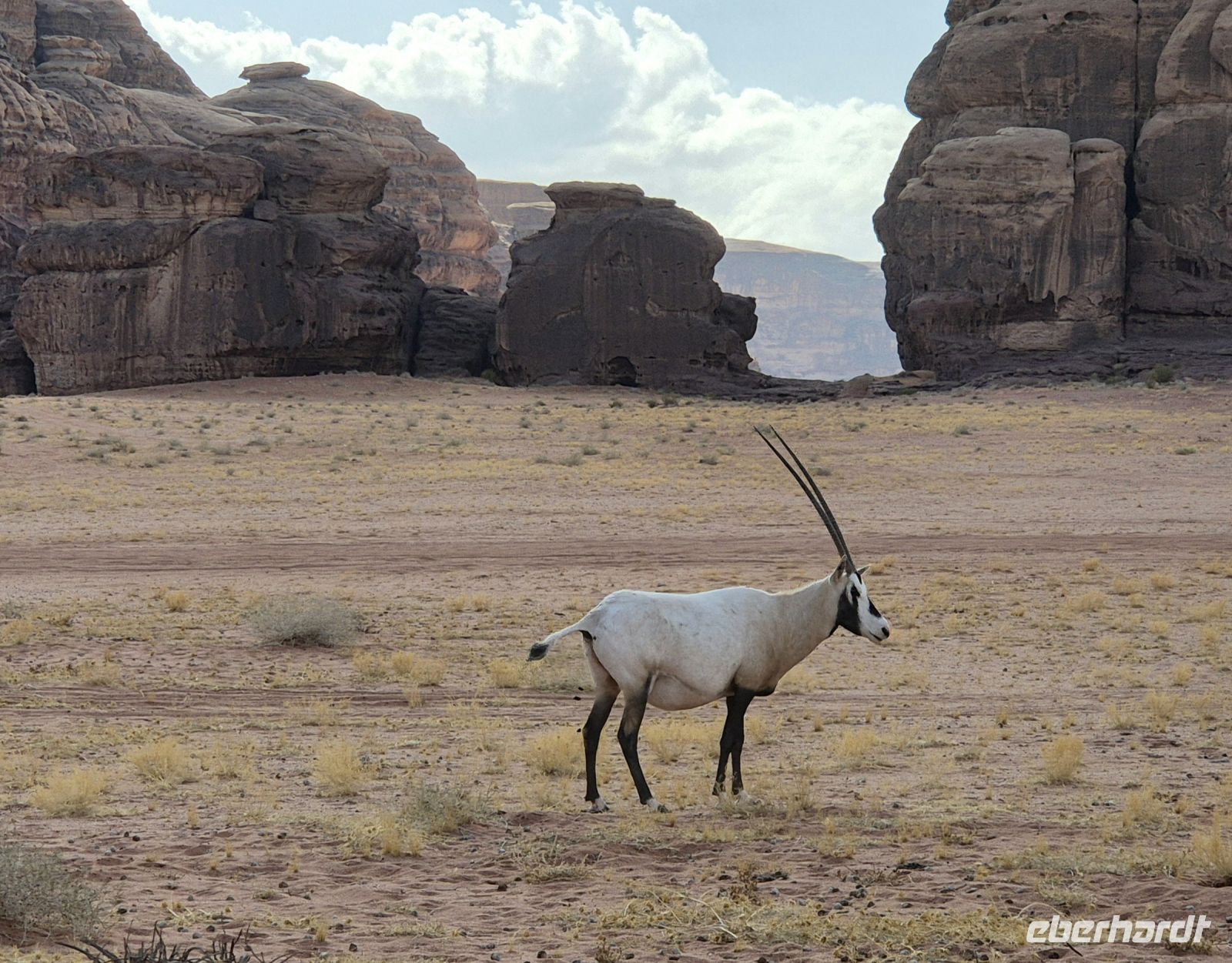 Nun widmen wir uns ausgiebig den Naturwundern. Im Neom Natur Reserve begegnen wir inmitten einer großartigen Natur Oryxantilopen. Auch unser Picknick haben wir hier im Schutzgebiet mit Aussicht auf eine wunderschöne Kulisse. Bei einer kurzen Wanderung durch eine beeindruckende Schlucht kommen wir an einen schmalen Felsspalt – eine beliebte Stelle um auszutesten, wie weit man hier hineinpasst.