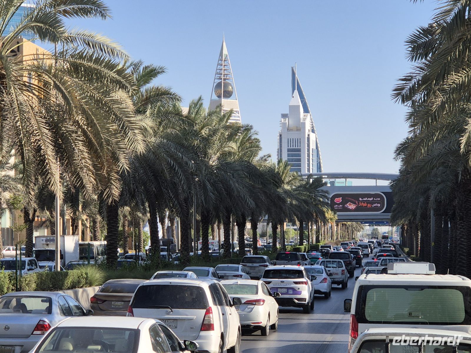 Nachdem wir uns mit saudischen Rial eingedeckt haben, folgt eine Stunde Busfahrt in die Innenstadt zu unserem Hotel.