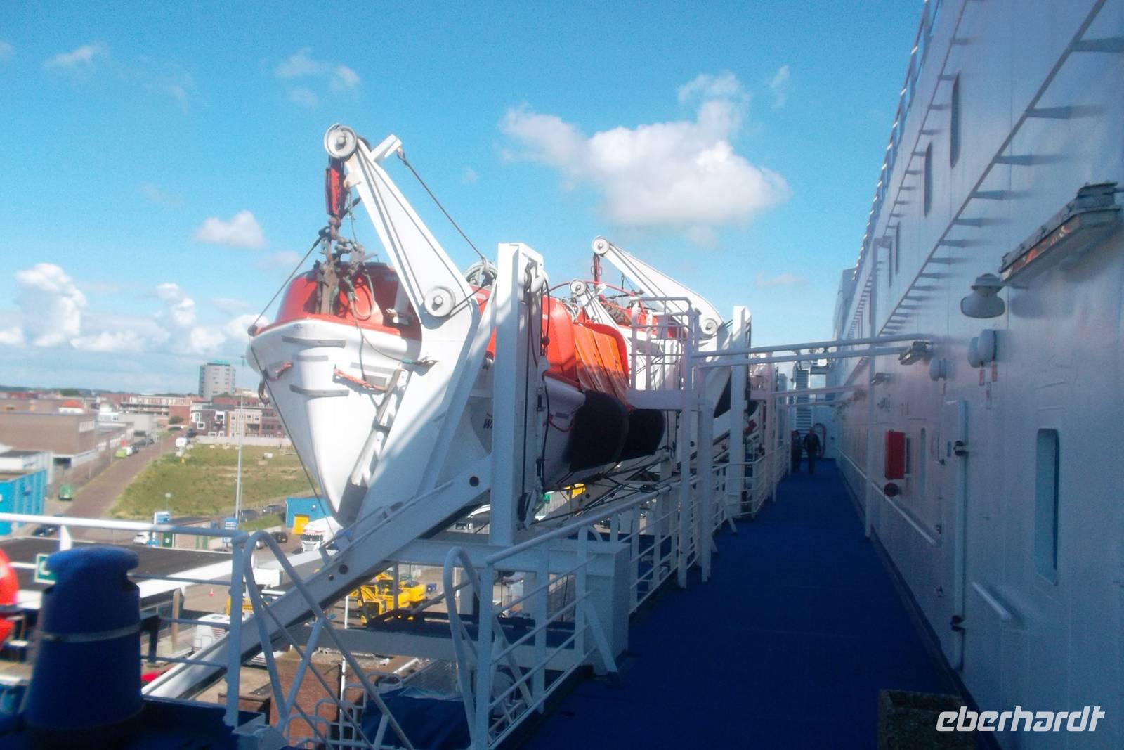Pünktlich waren wir dann am Fähranleger in Ijmuiden, konnten sofort einchecken und waren im Nu auf dem Fährschiff „Princess Seaways". Zwei Schiffe der Fährgesellschaft DFDS bedienen die Strecke Amsterdam - Newcastle und beide sind bequem ausgestattet und bieten ein hervorragendes Schlemmerbuffet zum Abendessen. Zwar sind die komfortablen Kabinen nicht allzu groß, aber wir waren darauf vorbereitet: denn wie sogar in unserem Katalog als Hinweis ausgeschrieben, hatten alle Mitreisenden kleines „Fährgepäck" vorbereitet, um möglichst bequeme Unterbringung zu erleben.