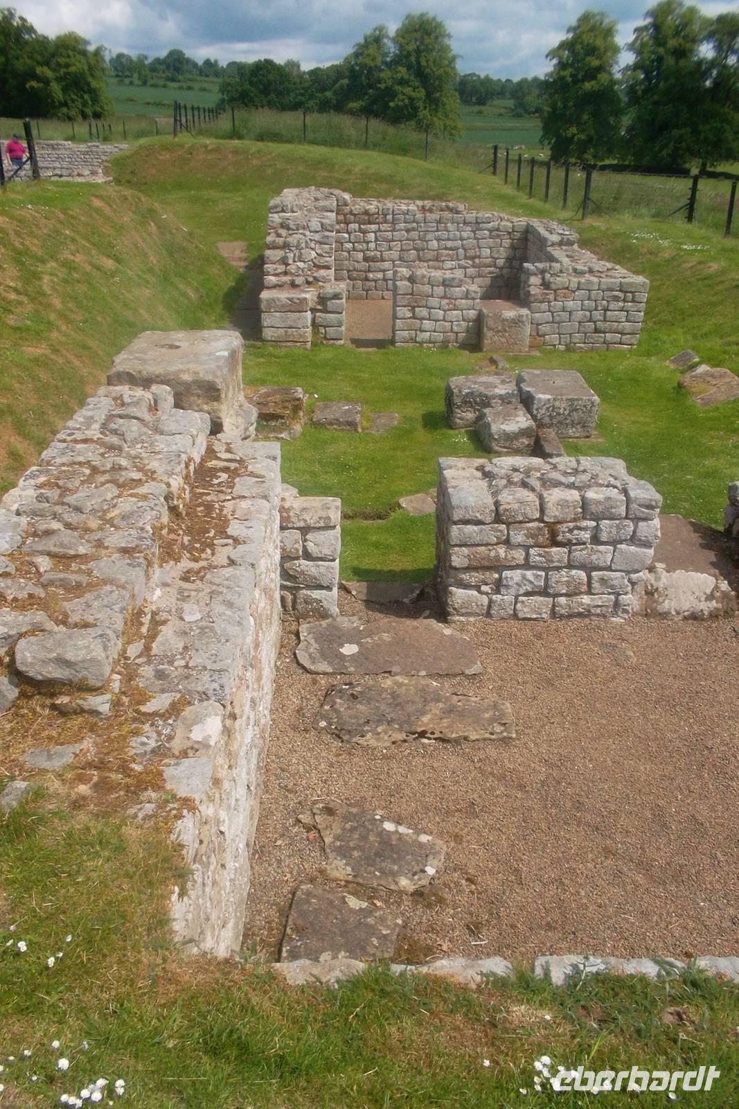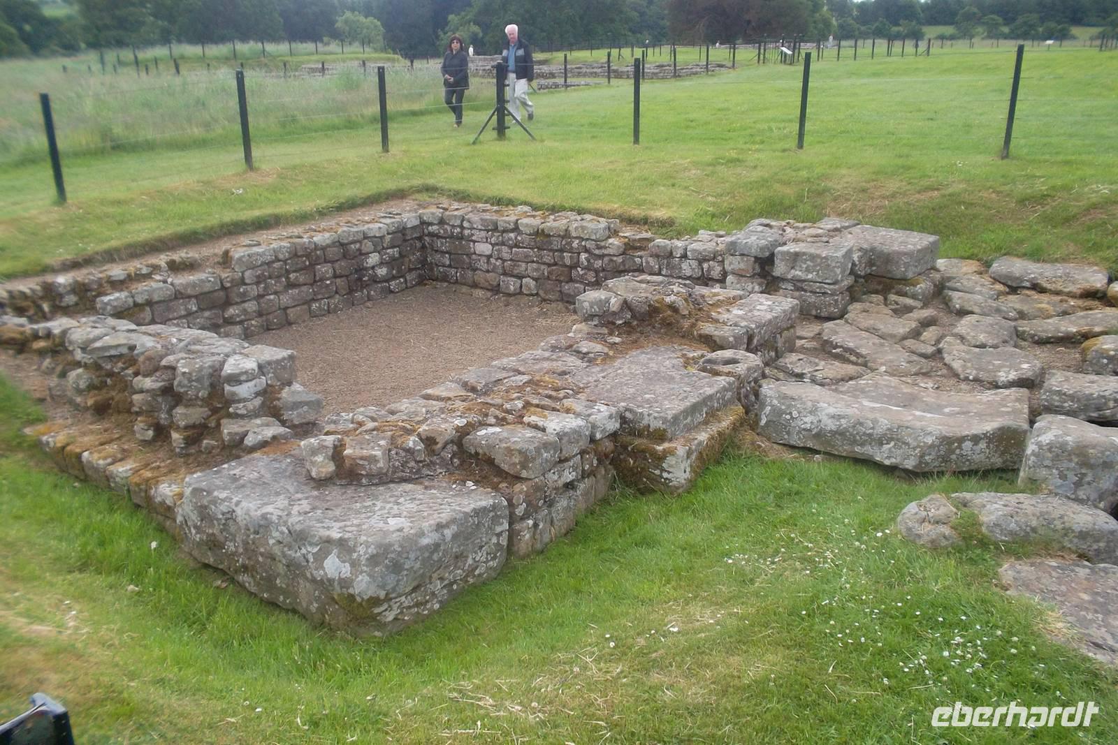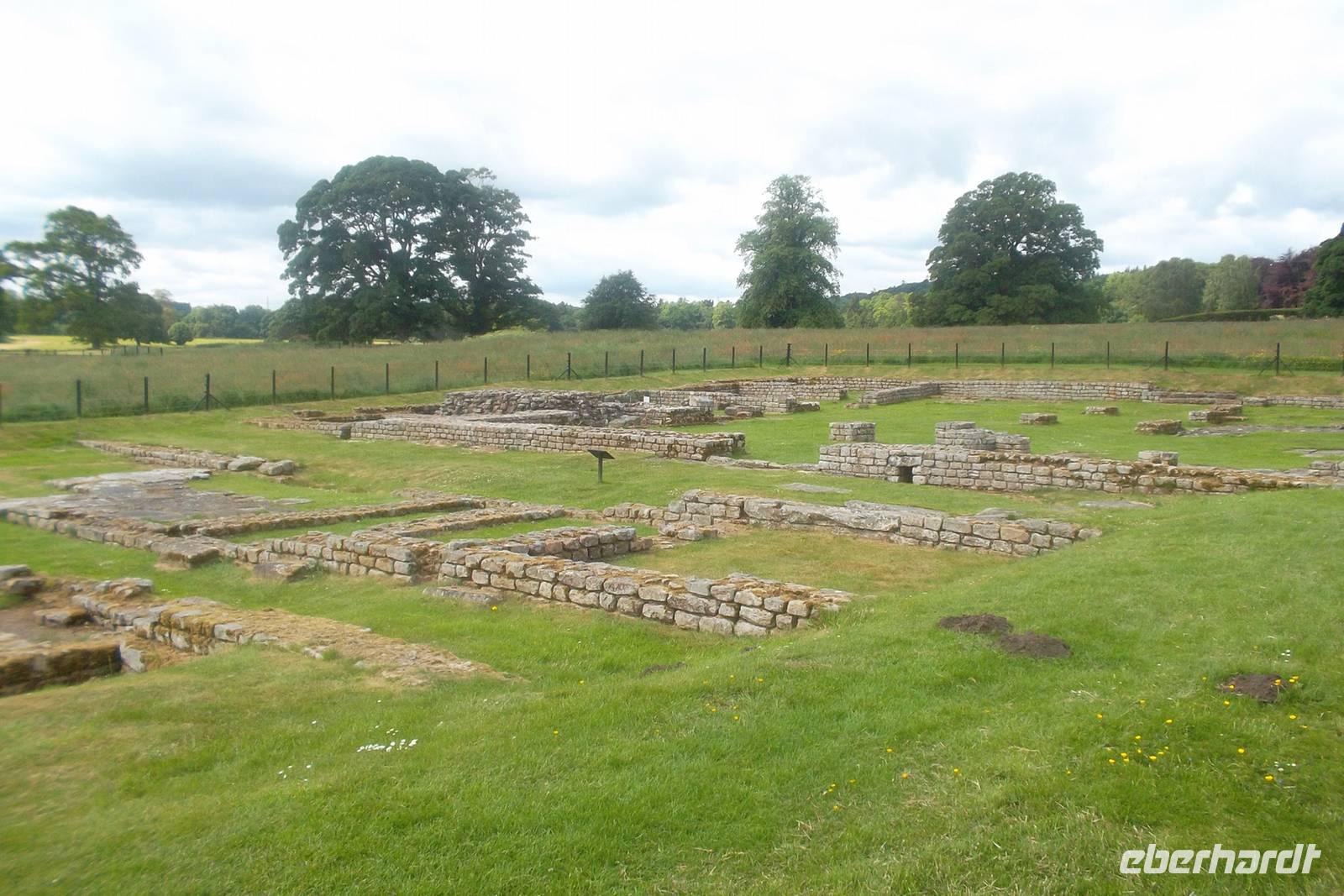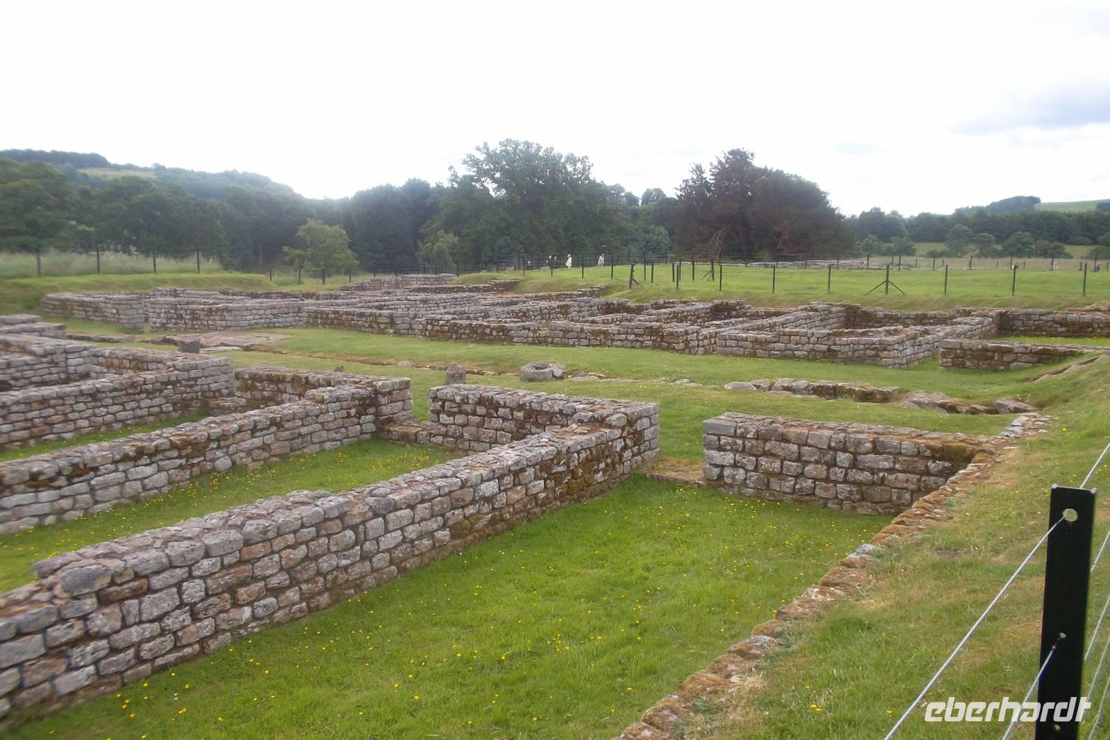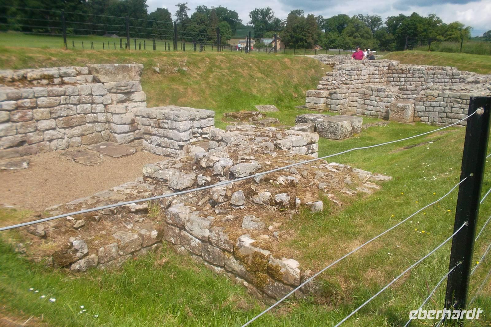 Wieder einmal hatte die Fähre etwa zwei Stunden Verspätung -angeblich durch technische Probleme. Nach dem Auschecken musste unsere Gruppe warten, denn die Busse wurden zuletzt von Bord gelassen und wir konnten erst gegen 10.00 Uhr englischer Zeit losfahren. . Dem Programm konnte das nicht so sehr schaden, denn wir hatten heute keine festen Tedrmine. Zunächst durchquerten wir Newcastle-upon-Tyne und da der Berufsverkehr schon vorbei war, ging dies ohne Stau. Es folgte der herrliche Weg zunächst in Richtung Westen und dann entlang dem Hadrianswall. Nachdem die Römer im 2. Jh. N.Chr. ihren weit nach Norden vorgeschobenen Antoniuswall hatten aufgeben müssen, wurde jener bekannte römische Grenzwall im 2. Jahrhundert n.Chr. unter Kaiser Hadrian errichtet - an der Nordgrenze der britischen Provinz zum Schutz des Römischen Reiches gegen die „Barbaren". Mehrere befestigte Heerlager hatte das römische Militär längs dieser Nordgrenze des Reiches errichtet und eines davon, Chester Fort, das für die interessanten ergrabenen Reste bekannt ist, konnten wir besichtigen. Nicht nur Reiste eines Badehauses, sondern noch gut erhaltene Grundmauern ehemaliger Kasernen und Toranlagen gibt es hier.