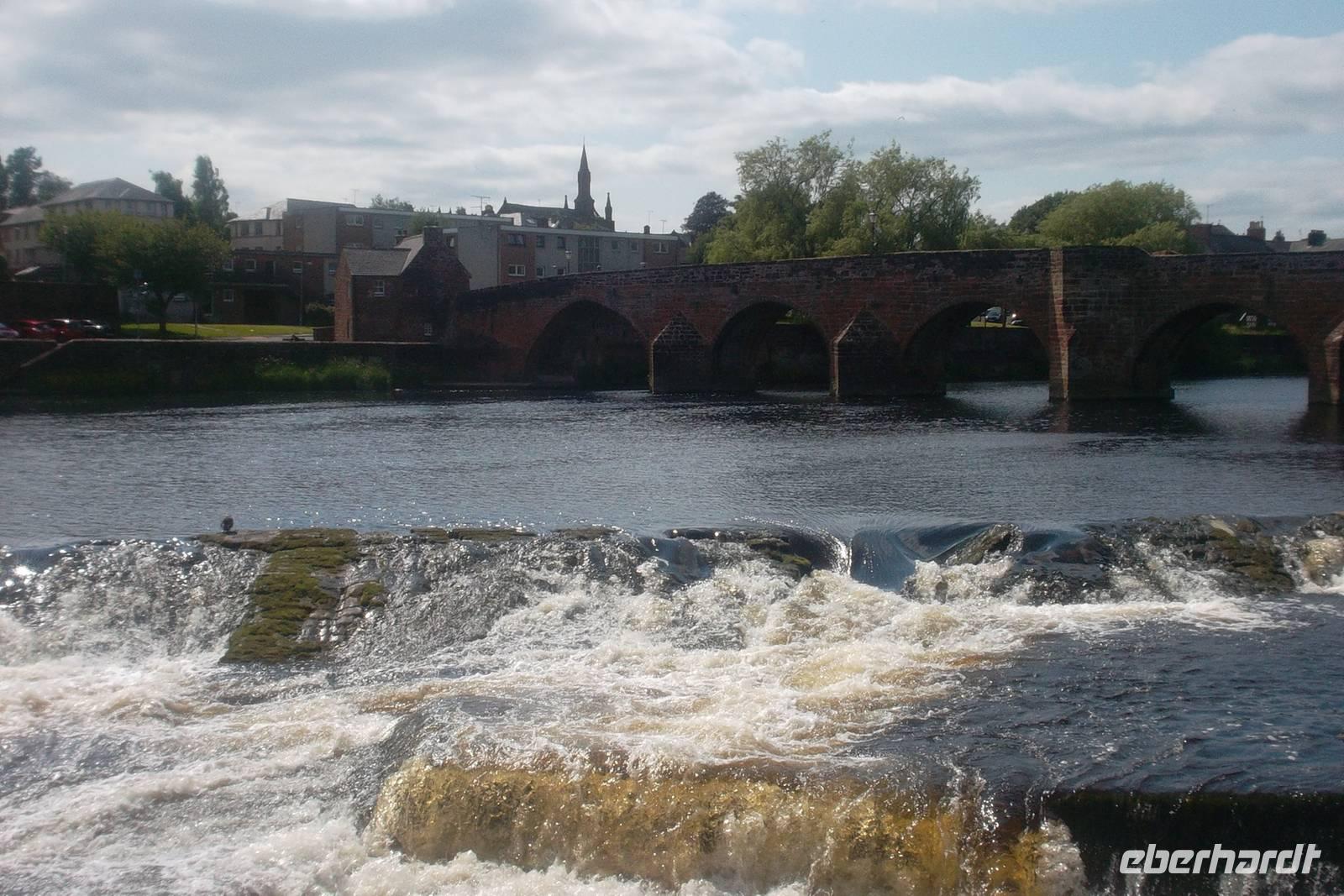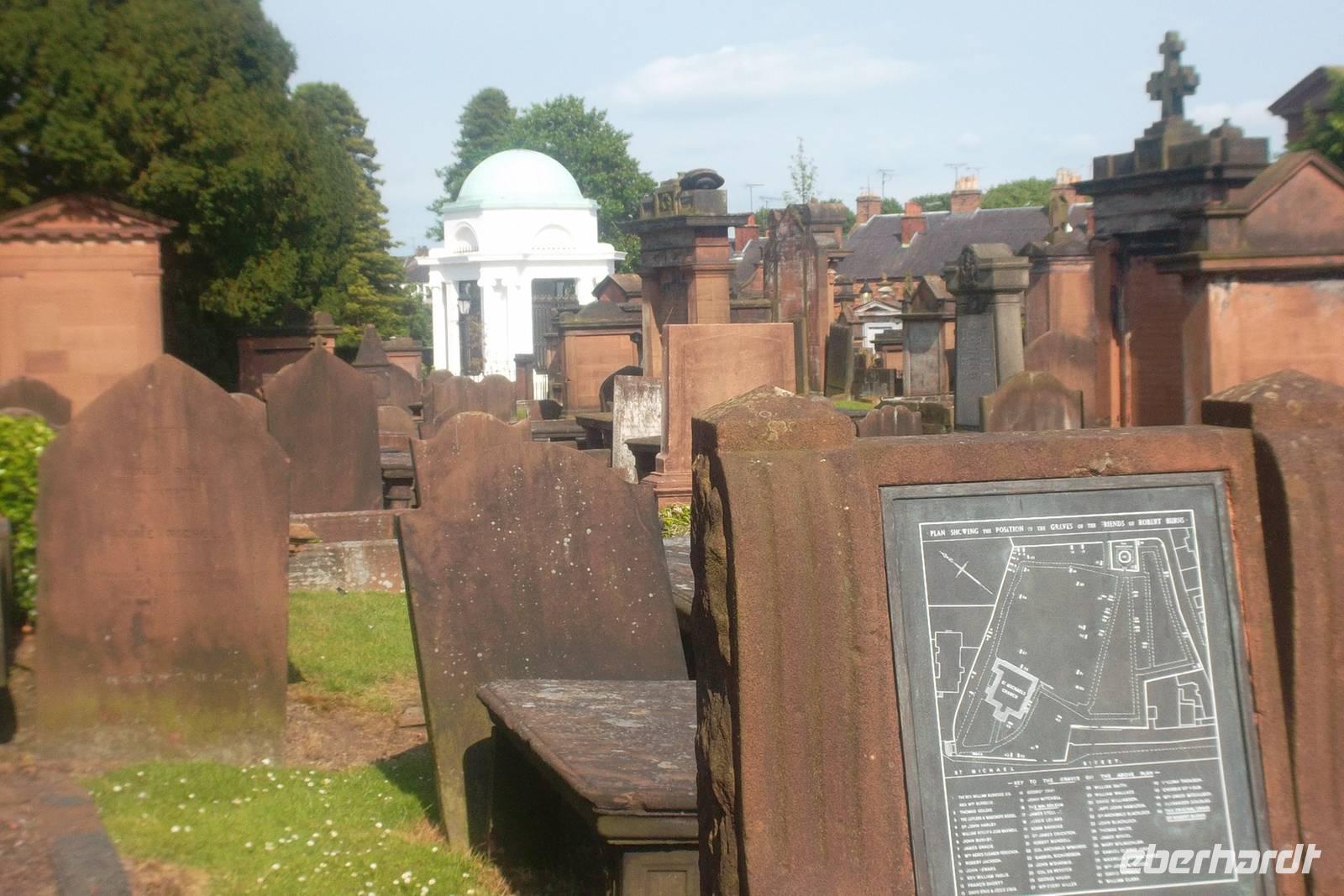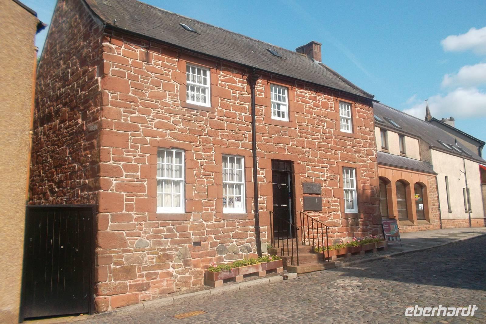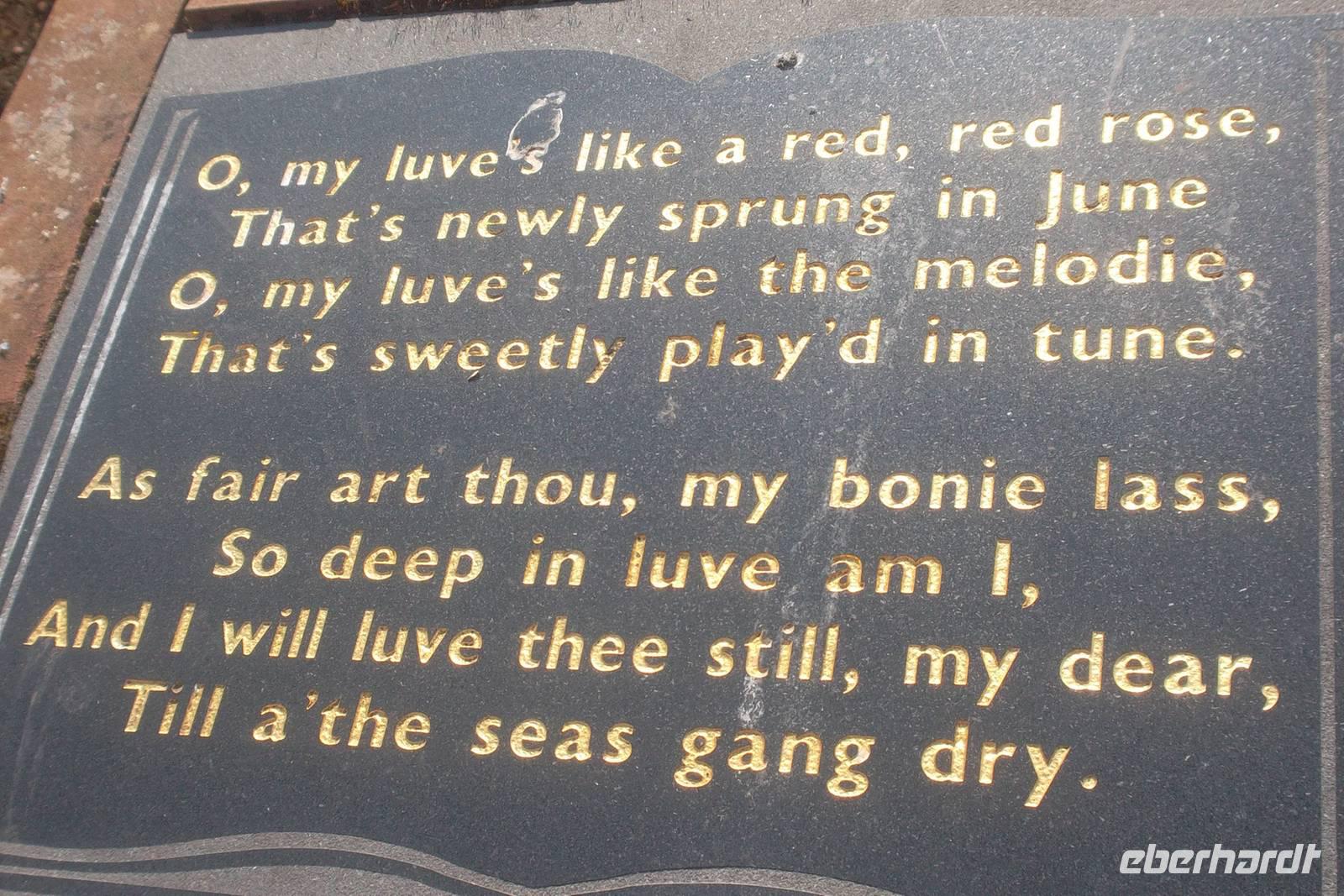 Dumfries, Hauptort der Grafschaft Dumfries und Galloway, liegt malerisch am Flüsschen Nith. Bei herrlichem Wetter machte ich mit unseren Gästen eine kleine Stadtführung - vom Nith-Ufer über den Robert-Burns-Platz durch die Innenstadt bis zum Sterbehaus des Nationaldichters Robert Burns. Ganz „nebenbei" lernten wir dabei auch seine bevorzugten Pubs und sein weißes Mausoleum auf dem Friedhof der St.Michaels-Kirche kennen. Den Abend verbrachten wir im gemütlichen „Cairndale Hotel".