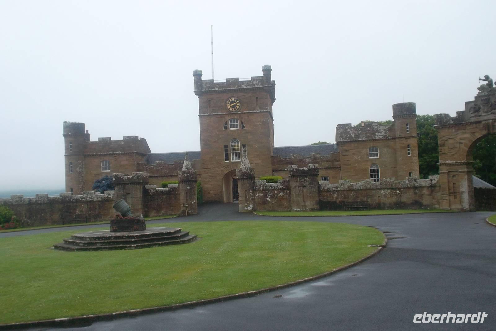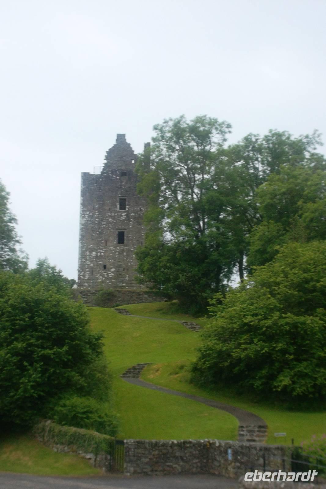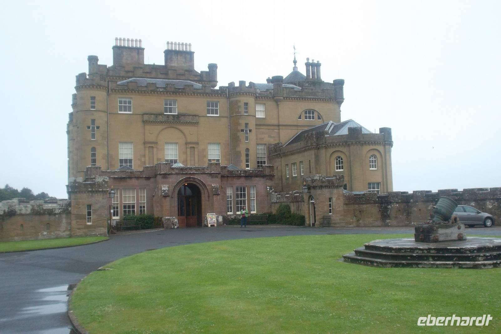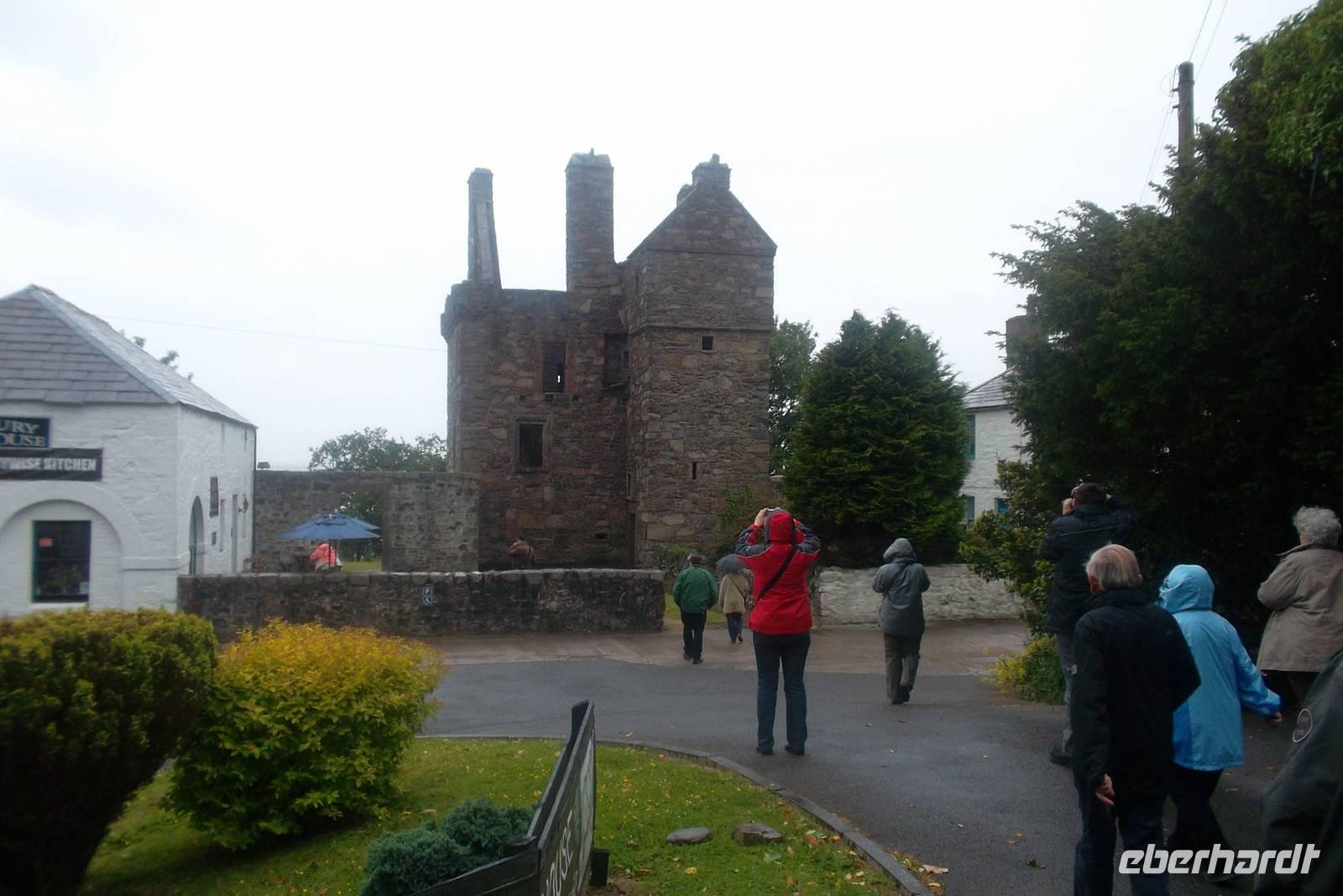 Leider spielte heute das Wetter nicht so gut mit: Ab unserem ersten Fotostopp bei Cardoness Castle regnete es in Strömen und wurde erst nachmittags besser. Die südschottische Küstenszenerie in Galloway und Ayrshire ist wundervoll und selbst bei Regen und Nebel noch attraktiv. Die malerische Ruine von Carsluith Castle begeisterte die Gäste zuerst, aber auch die Felsenszenerien an der Küste zwischen Stranraer und Girvan waren faszinierend. Ein kurzer Rundgang zeigte uns Stranraer, den ehemaligen Fährhafen nach Nordirland und danach ein weiterer den Hafen- und Fischerort Girvan. Es folgte ein Fotostopp bei „Souther Johnnies Cottage" - in Kirkoswald steht neben einem legendären Pub das kleine, schilfgedeckte Häuschen eines der von Burns besungenen Legendenhelden Malerisch und in spektakulärer Lage auf den Klippen präsentierte sich Culzean Castle. Der Regen hatte passenderweise aufgehört, so dass wir die Baukunst des Architekten Robert Adams im modern wirkenden Schloss und vor allem die herrlichen gepflegten Parkanlagen richtig würdigen konnten. Das Schloss ist inzwischen eine besondere Attraktion in Ayrshire, die das „Zeitalter der Eleganz" wiederspiegelt. Seine prächtigen Räume sind mit extra dafür gestalteten Möbeln versehen und seine Lage in wundervoller Küstenszenerie lässt die Besonderheit des Baues, umgeben von älteren Mauern, besonders eindrucksvoll hervortreten.