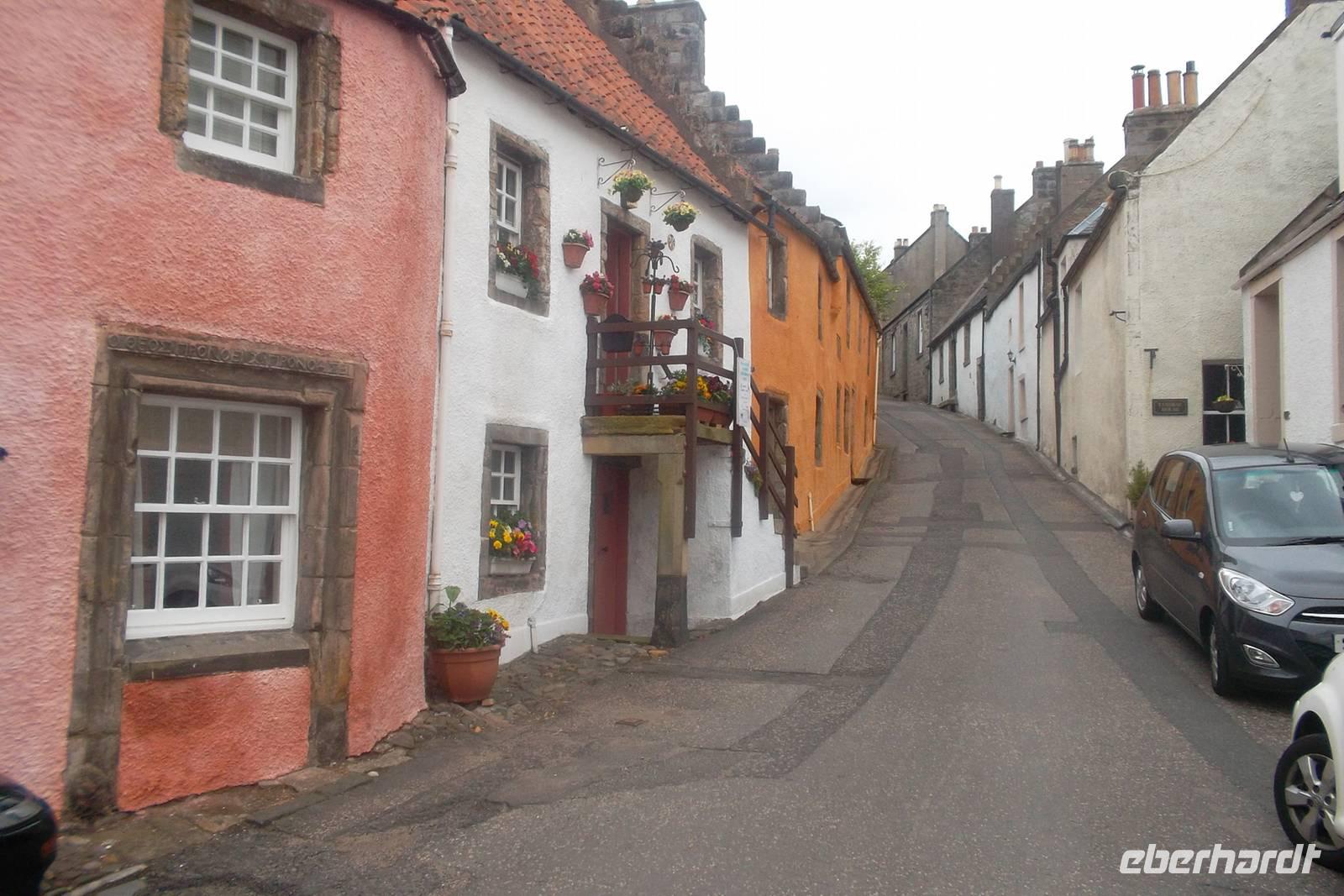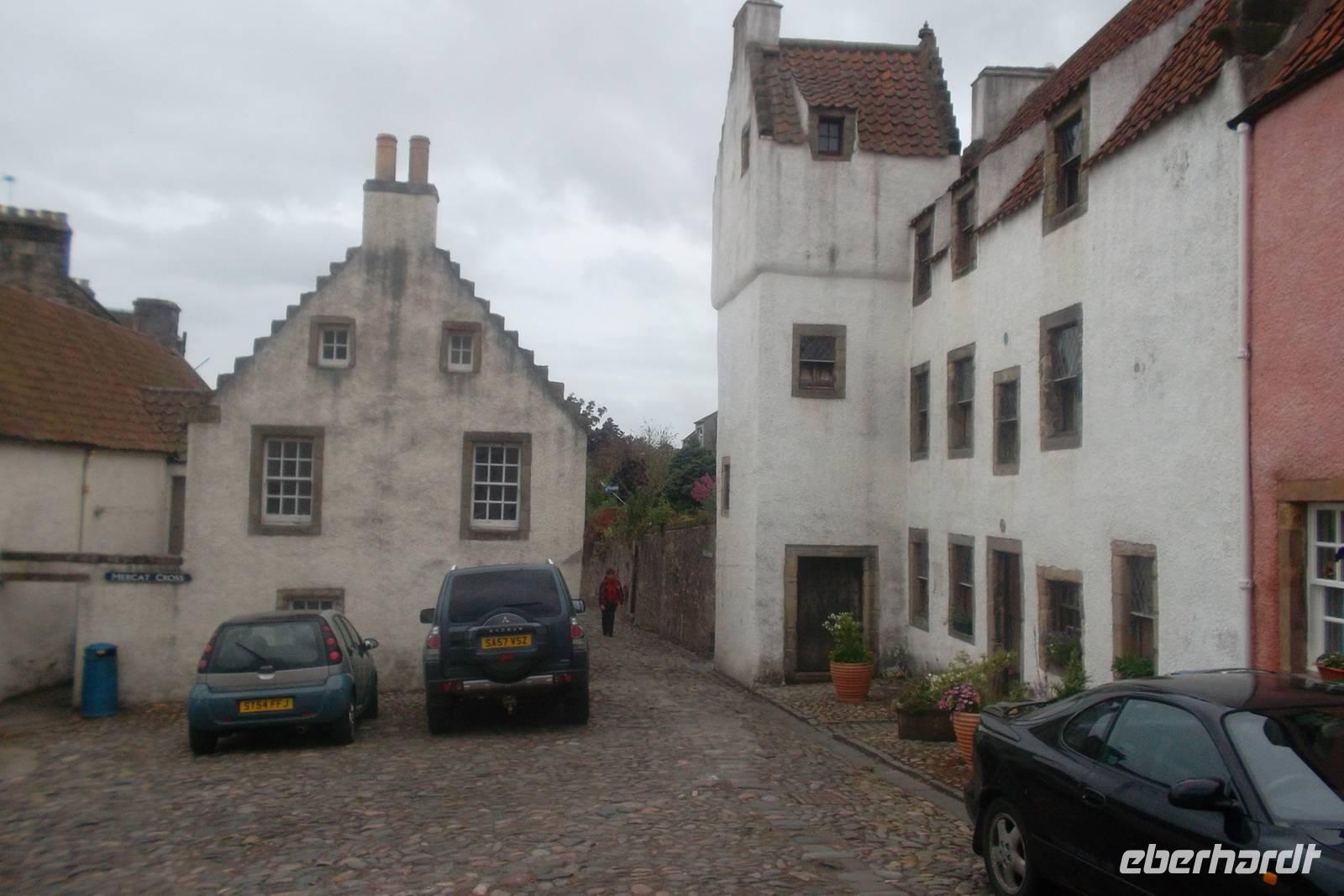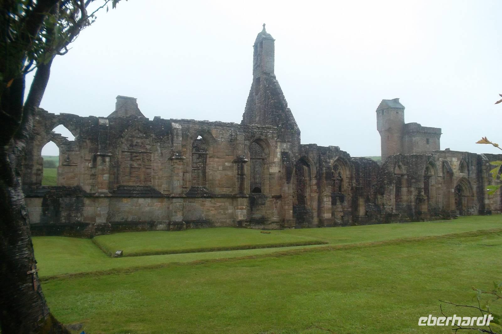 Wir hatten heute - bei besserem Wetter - etwas mehr Strecke zurückzulegen. Von Ayr ging es nördlich und durch Schottlands größte Stadt Glasgow. über die historidch interessante und beeindruckende Kincardine Bridge zum uralten Städtchen Culross. Das alte Rathaus, der winzige Marktplatz mit dem „mercator cross" und dem "study" zeigen die schottische Idylle einer Kleinstadt aus dem 16. Jahrhundert. Kopfsteinpflaster, uralte Gebäude mit Staffelgiebeln und das Ambiente vergangener Jahrhunderte machen den Ort einzigartig. Wir fuhren dann weiter nach Dunfermline, der alten schottischen Hauptstadt, deren Abtei die Grablege von über 20 Königen und Königinnen beherbergt. Eine unerhörte Raumwirkung hat die romanische Abtei, in die man nach dem Besuch des gotischen Anbaus der Kapelle der im 13. Jahrhundert heiliggesprochenen schottischen Königin Margarete gelangt. Wuchtige Säulen tragen den Obergaden, das Kennzeichen des Langhauses einer Basilika, als die die Abteikirche von Dunfermline einst gebaut wurde. Das rosa verputzte Abtshaus in der Nähe und der nur noch mit einer Mauer erhaltene Königspalast tun ein Übriges, um Dunfermline zu einem spektakulären Kultur-und Urlaubsziel zu machen.