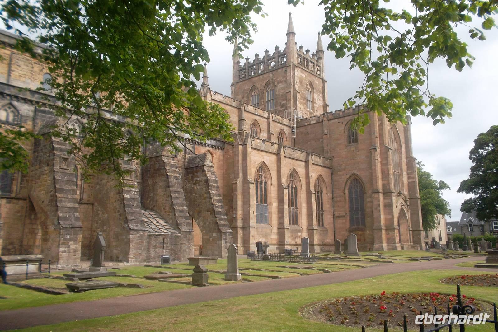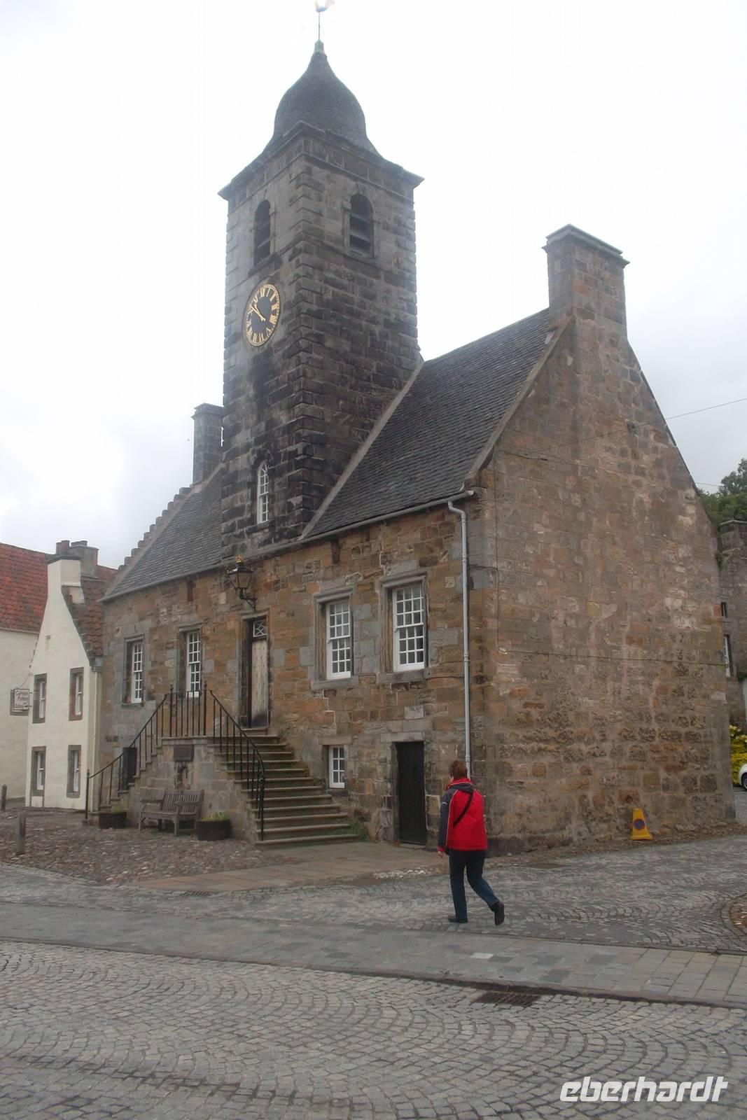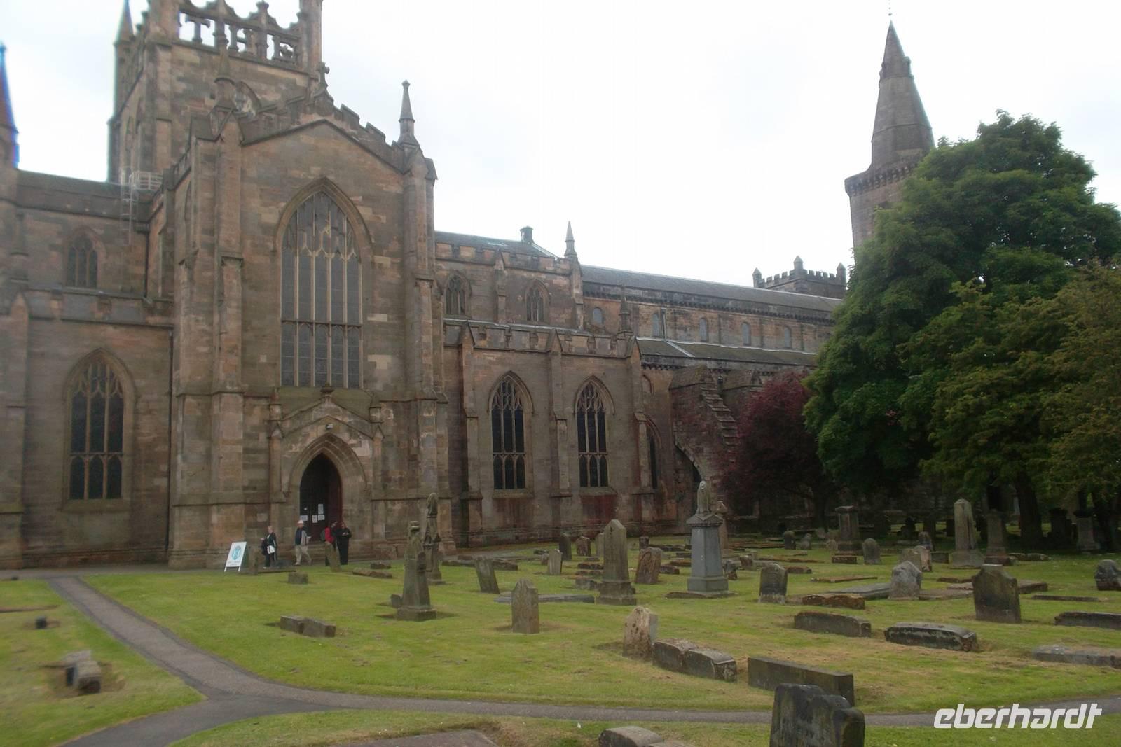 Wir hatten heute - bei besserem Wetter - etwas mehr Strecke zurückzulegen. Von Ayr ging es nördlich und durch Schottlands größte Stadt Glasgow. über die historidch interessante und beeindruckende Kincardine Bridge zum uralten Städtchen Culross. Das alte Rathaus, der winzige Marktplatz mit dem „mercator cross" und dem "study" zeigen die schottische Idylle einer Kleinstadt aus dem 16. Jahrhundert. Kopfsteinpflaster, uralte Gebäude mit Staffelgiebeln und das Ambiente vergangener Jahrhunderte machen den Ort einzigartig. Wir fuhren dann weiter nach Dunfermline, der alten schottischen Hauptstadt, deren Abtei die Grablege von über 20 Königen und Königinnen beherbergt. Eine unerhörte Raumwirkung hat die romanische Abtei, in die man nach dem Besuch des gotischen Anbaus der Kapelle der im 13. Jahrhundert heiliggesprochenen schottischen Königin Margarete gelangt. Wuchtige Säulen tragen den Obergaden, das Kennzeichen des Langhauses einer Basilika, als die die Abteikirche von Dunfermline einst gebaut wurde. Das rosa verputzte Abtshaus in der Nähe und der nur noch mit einer Mauer erhaltene Königspalast tun ein Übriges, um Dunfermline zu einem spektakulären Kultur-und Urlaubsziel zu machen.
