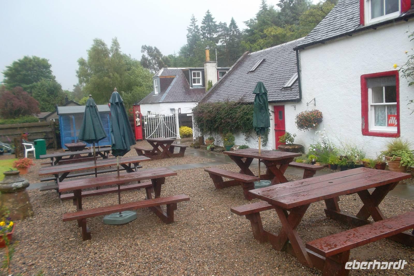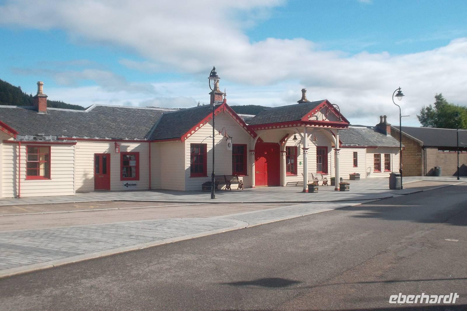 Pünktlich legte die Fähre im Hafen von Aberdeen an und wir bestiegen schon kurz nach 07.00 Uhr unseren Bus. Entlang dem Fluß Dee - der sogenannten „Royal Deeside" fuhren wir zunächst nach Ballater. Das kleine Städtchen wartet mit einem hübschen viktorianischen Bahnhof auf, obwohl die zugehörige Bahnstrecke längst stillgelegt ist. Dann ging es weiter in die Grampian Mountains, wo wir nach einem Fotostopp am Braemar Castle durch das Wintersportgebiet von Glenshee fuhren, um dann Edradour zu erreichen.