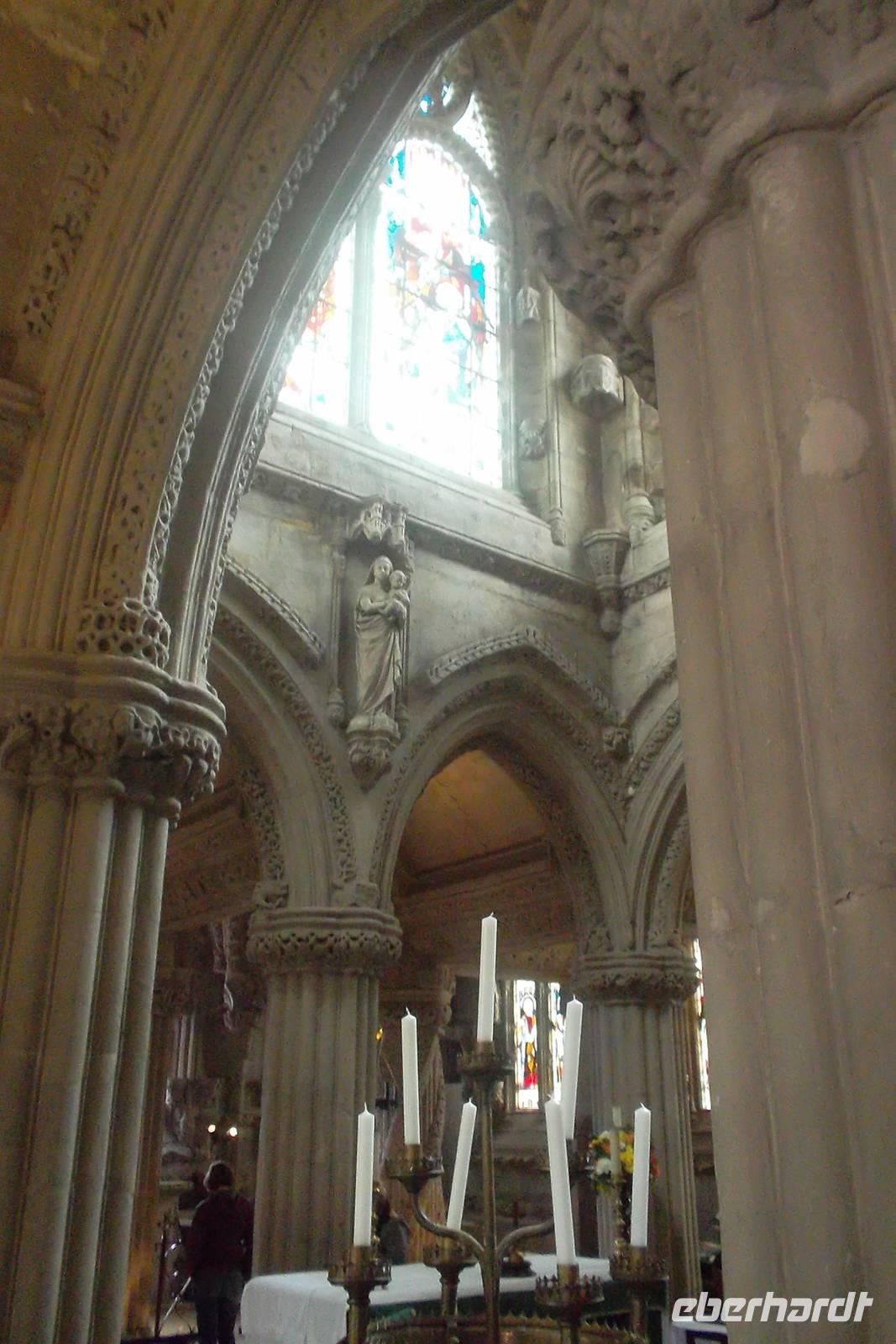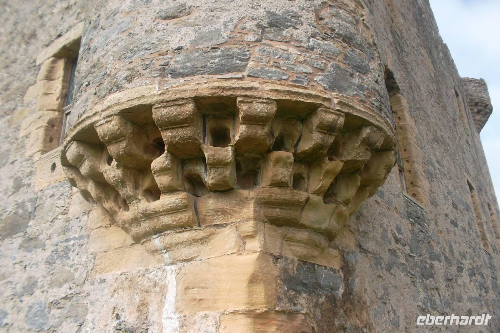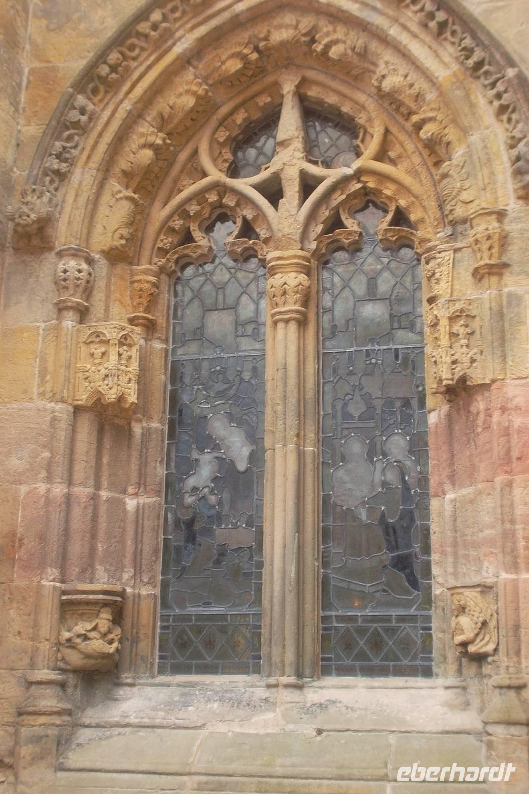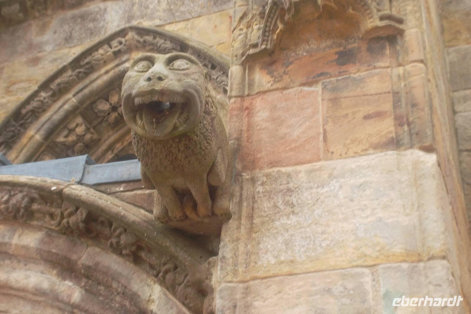Danach gab es als weiteren Höhepunkt einen Besuch in der mit herrlichen Steinmetzarbeiten verzierten Kapelle von Roslyn. Wer Dan Browns Roman „Der da Vinci-Code" (deutsche Ausgabe unter dem Titel „Sakrileg") kennt, der kann sie sich als Aufbewahrungsort für den Heiligen Gral vorstellen. Auf jeden Fall ist die aus dem 15. Jahrhundert stammende Kapelle etwas ganz Besonderes - man sieht es an den Glasmalereien der Fenster ebenso wie an den Steinmetzarbeiten der Fensterrahmungen oder den Verzierungen der Säulen. Vom Dörfchen Roslyn aus war es nicht mehr weit zu unserem Hotel, das in einem Vorort von Peebles lag.