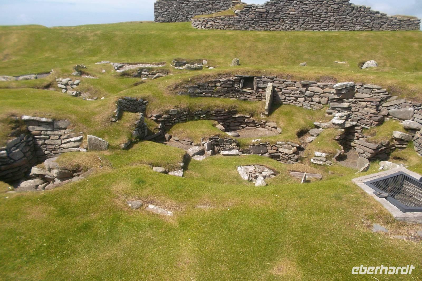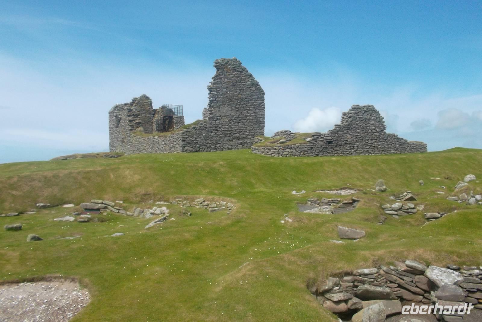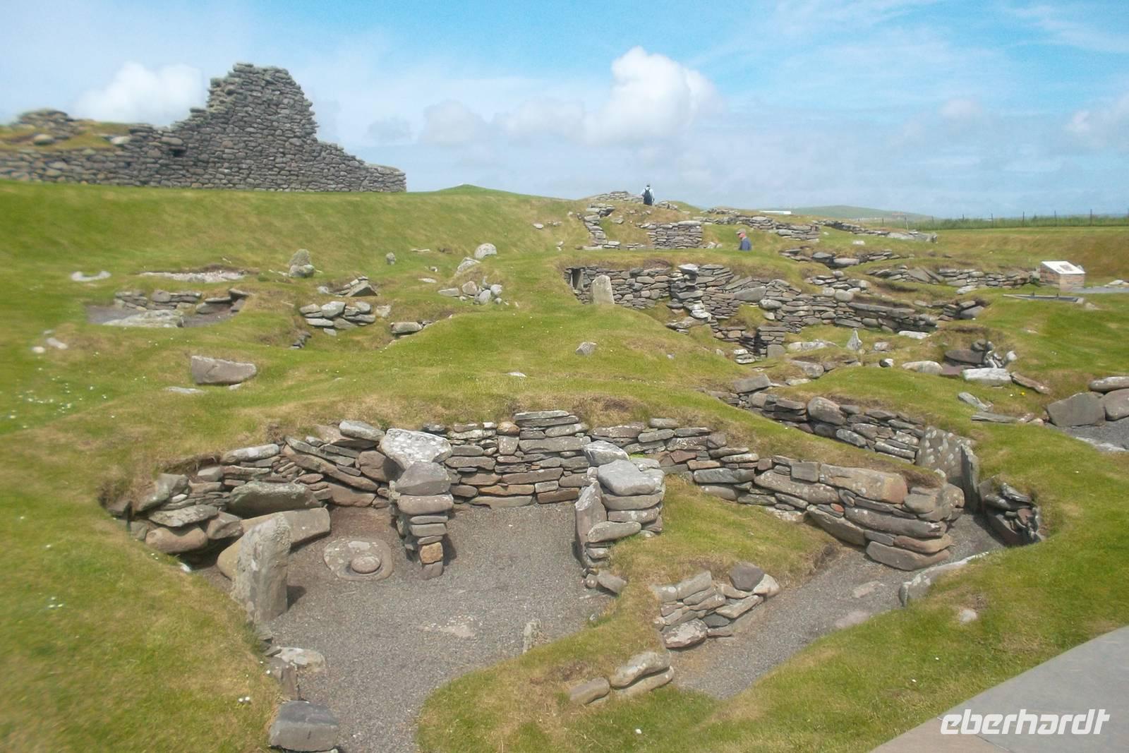 Von den Vogelfelsen ging es weiter zum prähistorischen Jarlshof. Kein Geringerer als der berühmte schottische Historien-Autor Sir Walther Scott hat diesen Namen in seiner Novelle „Der Pirat" geprägt. Bauten aus mehreren aufeinanderfolgenden Epochen sind hier zu sehen - von bronzezeitlichen Rundhäusern über piktische und Wikingerbauten bis hin zu einem Wohnturm des späten 16. Jahrhunderts.