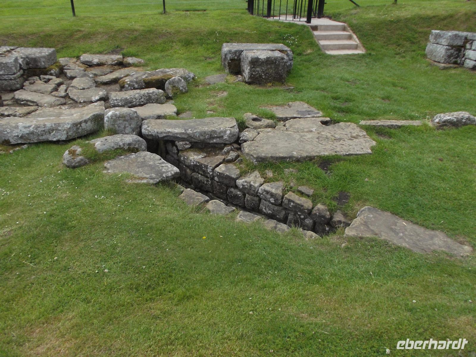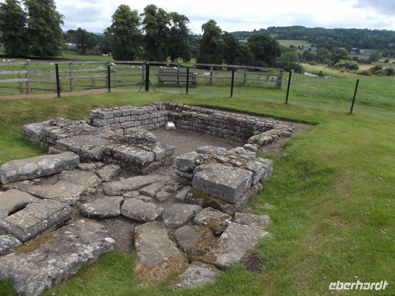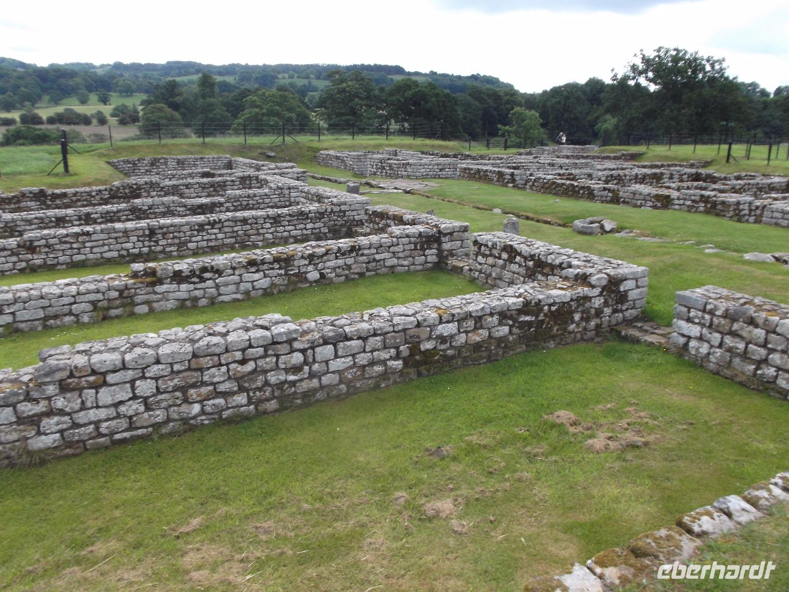 Pünktlich erreichten wir den britischen Fähranleger in der Mündung des Flüßchens Tyne bei Newcastle und waren relativ schnell von Bord - auch unser Bus war schneller da als unsere sonstige Erfahrung besagte. So durchquerten wir recht früh Newcastle-upon-Tyne und holten dabei noch weitere Mitreisende ab, die per Flugzeug hierher gereist waren und die Nach im Hotel verbracht hatten. Jetzt waren wir komplett und unsere Reise konnte richtig losgehen. Genau wie am Vortag folgten wir weiter der Westroute, diue uns schon nach kurzer Zeit entlang dem historischen Hadrianswall führte. Dieses Grenzbefestigungssystem des „britannischen Limes" hatten die Römer schon im 2. nachchristlichen Jahrhundert unter Kaiser Hadrian errichtet, als Nordgrenze des römischen Imperiums und zum Schutz ihrer Provinz Britannien errichtet. Vor allem für die Regulierung des Grenzverkehrs und zur Zollerhebung hatte dieses fast 120 km lange und mitunter bis knapp fünf Meter hohe Bauwerk gedient, das schon 1987 zum UNESCO-Weltkulturerbe erklärt wurde. Was heute zunehmend zur Touristenattraktion wird, diente einst dem Römischen Reich als Bollwerk gegen die „Barbaren" und zu diesem Zweck hatten die Militär-Architekten neben Mauern, Wällen, Gräben und Wachtürmen mehrere befestigte Heerlager längs der Nordgrenze ihres Reiches als Garnisonen errichtet. Eines davon, Chester Fort, bekannt für seine interessanten Ausgrabungen, konnten wir besichtigen. Gut erhaltene Grundmauern ehemaliger Kasernen Wirtschaftsgebäude und Toranlagen gibt es hier, sogar noch die Reste eines Badehauses.