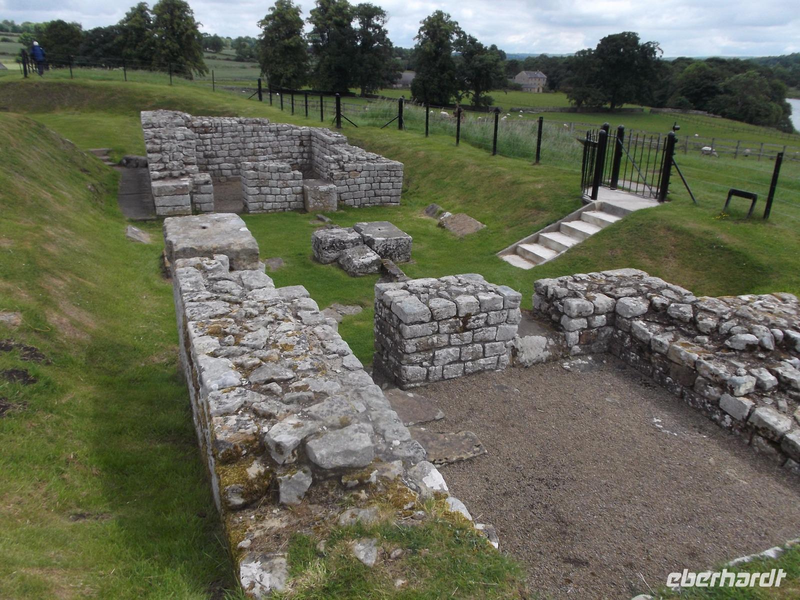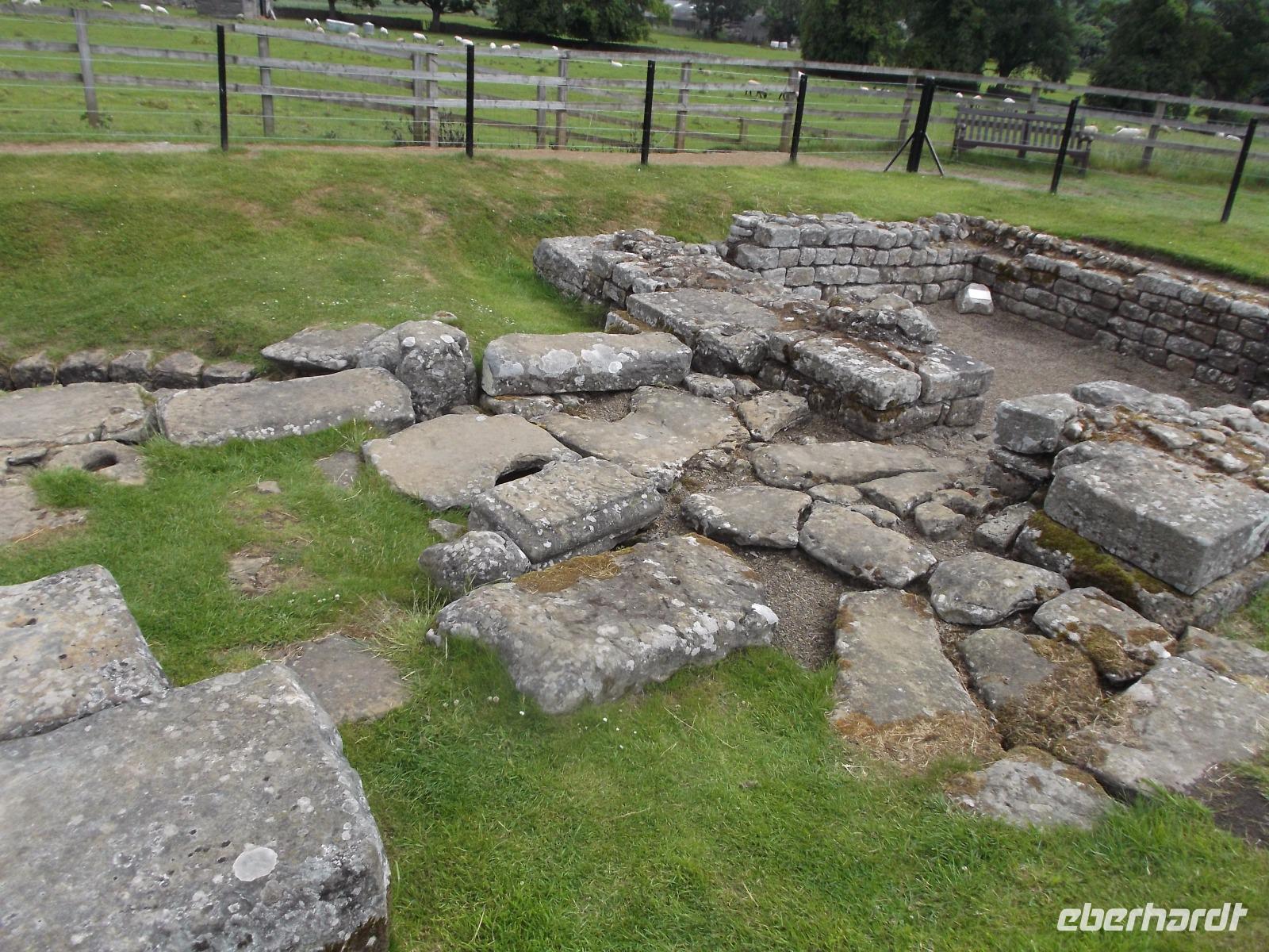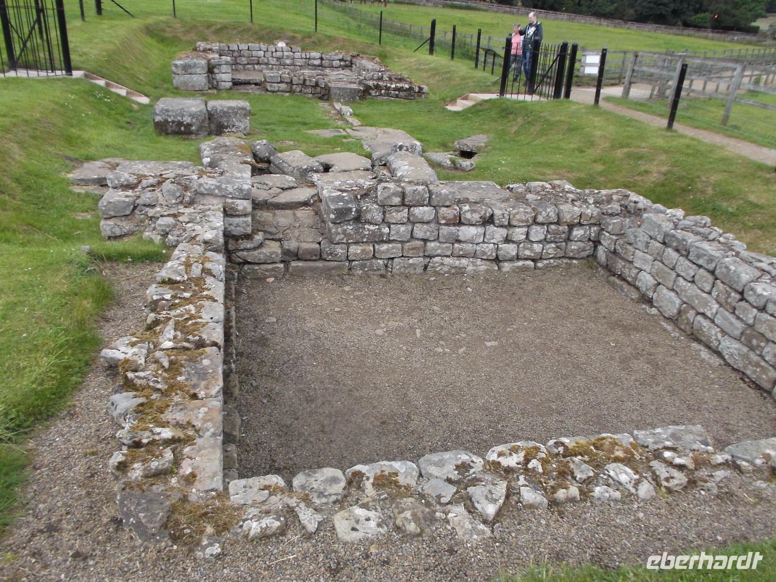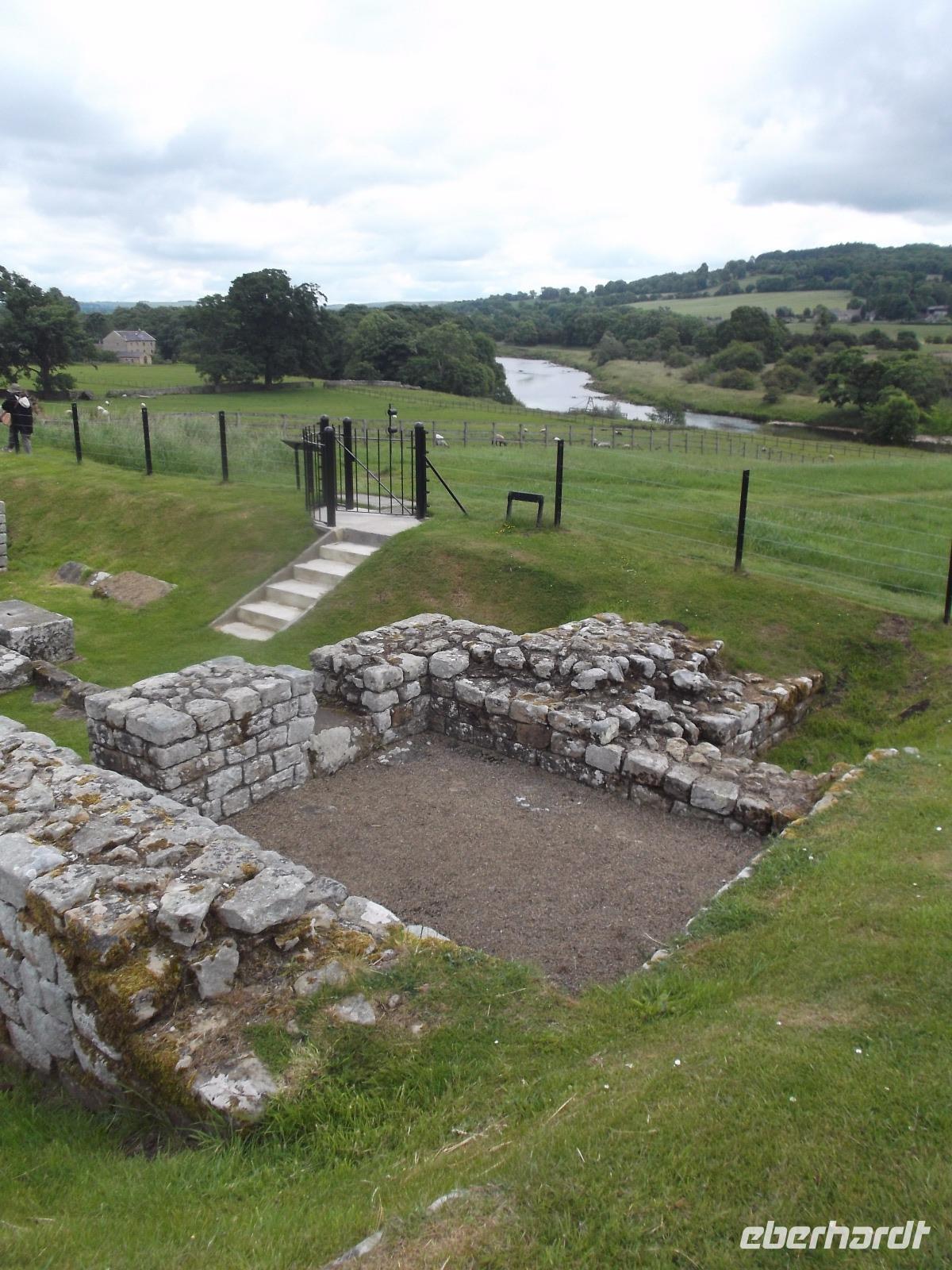 Pünktlich erreichten wir den britischen Fähranleger in der Mündung des Flüßchens Tyne bei Newcastle und waren relativ schnell von Bord - auch unser Bus war schneller da als unsere sonstige Erfahrung besagte. So durchquerten wir recht früh Newcastle-upon-Tyne und holten dabei noch weitere Mitreisende ab, die per Flugzeug hierher gereist waren und die Nach im Hotel verbracht hatten. Jetzt waren wir komplett und unsere Reise konnte richtig losgehen. Genau wie am Vortag folgten wir weiter der Westroute, diue uns schon nach kurzer Zeit entlang dem historischen Hadrianswall führte. Dieses Grenzbefestigungssystem des „britannischen Limes" hatten die Römer schon im 2. nachchristlichen Jahrhundert unter Kaiser Hadrian errichtet, als Nordgrenze des römischen Imperiums und zum Schutz ihrer Provinz Britannien errichtet. Vor allem für die Regulierung des Grenzverkehrs und zur Zollerhebung hatte dieses fast 120 km lange und mitunter bis knapp fünf Meter hohe Bauwerk gedient, das schon 1987 zum UNESCO-Weltkulturerbe erklärt wurde. Was heute zunehmend zur Touristenattraktion wird, diente einst dem Römischen Reich als Bollwerk gegen die „Barbaren" und zu diesem Zweck hatten die Militär-Architekten neben Mauern, Wällen, Gräben und Wachtürmen mehrere befestigte Heerlager längs der Nordgrenze ihres Reiches als Garnisonen errichtet. Eines davon, Chester Fort, bekannt für seine interessanten Ausgrabungen, konnten wir besichtigen. Gut erhaltene Grundmauern ehemaliger Kasernen Wirtschaftsgebäude und Toranlagen gibt es hier, sogar noch die Reste eines Badehauses.