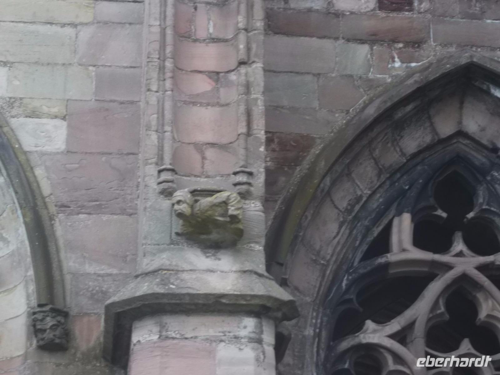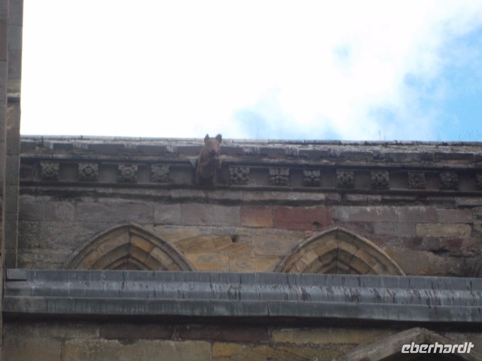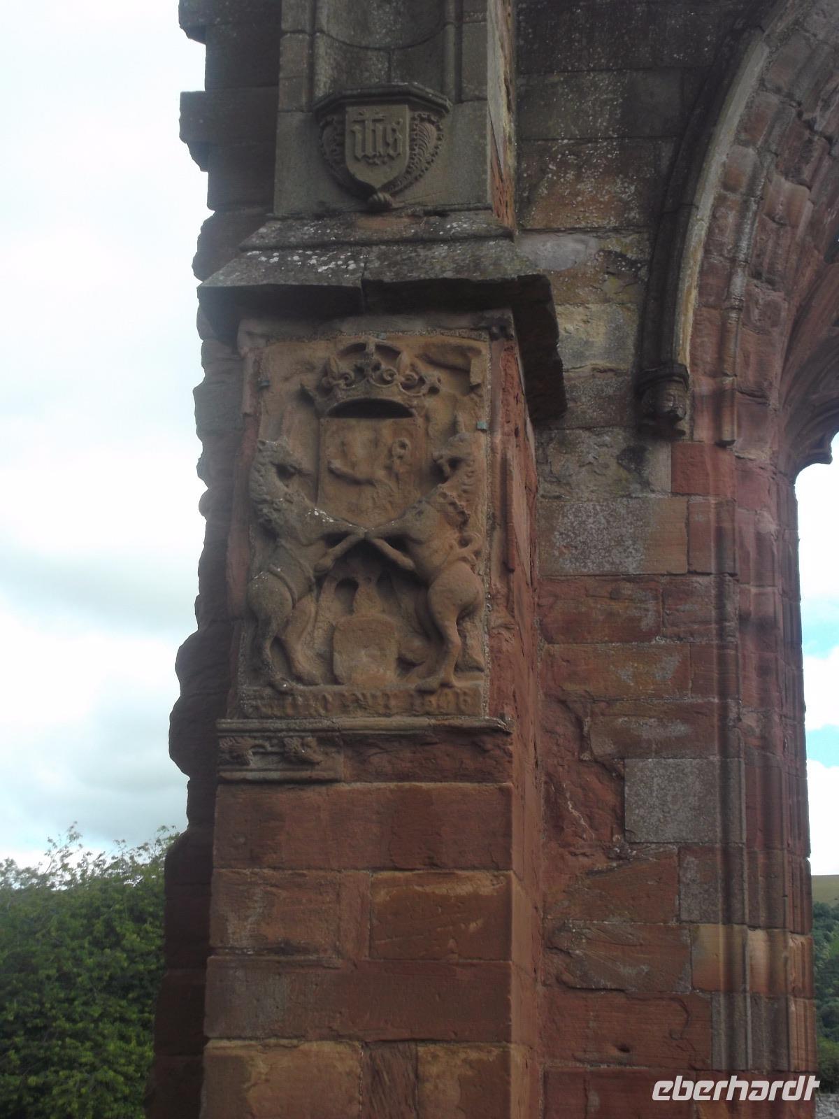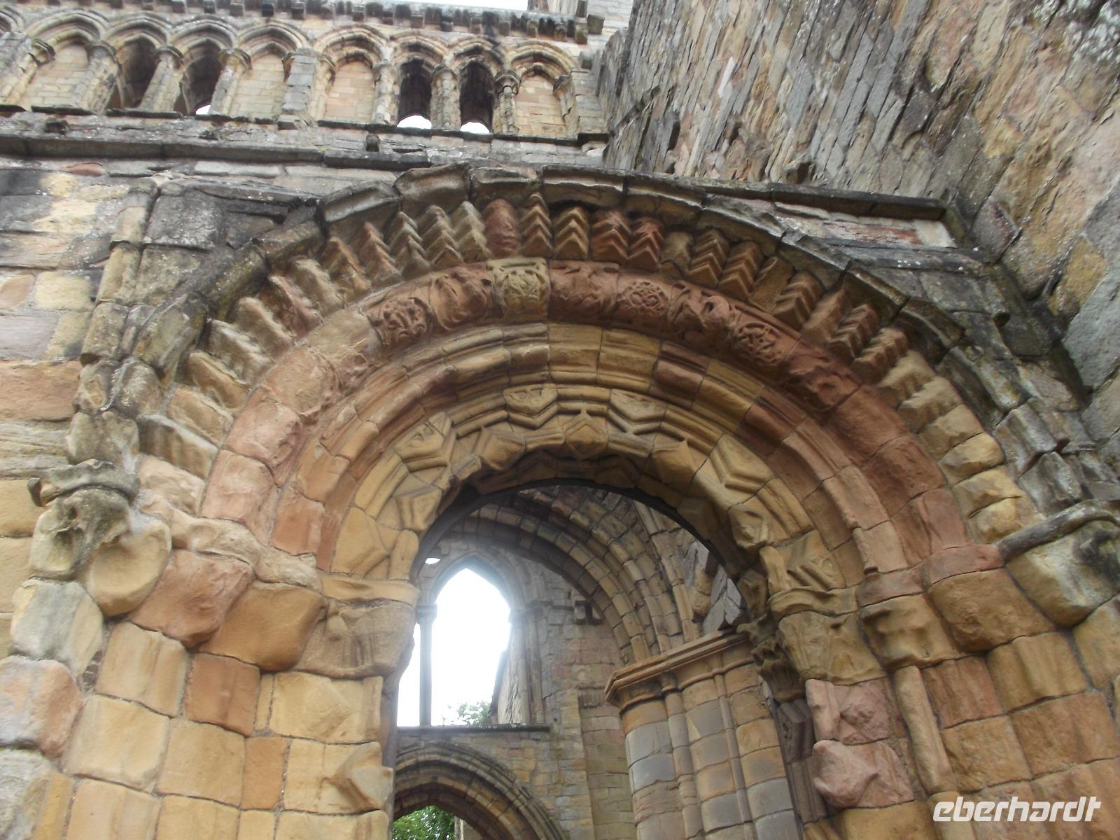 Der letzte Schottland-Tag dieser Reise war angebrochen! Heute hieß es Abschied nehmen, denn unser Tagesziel war die DFDS-Fähre im Hafen von Newcastle. Unser Weg führte durch die Hügellandschaft der „Borders", wie der breite Grenzstreifen zwischen Schottland und England seit Jahrhunderten genannt wird. Gleichzeitig ist die Gegend eine historische Kulturlandschaft, deren Besonderheiten unter anderem mehrere alte Abteien aus dem 12. Und 13. Jh. bilden. Die überaus malerische Ruinen sind recht gut erhalten und finden in der Literatur mehrfach Erwähnung, beispielsweise in den Werken des bekannten schottischen Schriftstellers Sir Walther Scott aber auch im Büchlein „Jenseit des Tweed" des von dieser Gegend begeisterten deutschen Dichters Theodor Fontane. Besonders Melrose Abbey, bei der Theodor Fontane empfahl, sie „im Mondenschein" zu besuchen, hatte es dem Romancier angetan. Das teilweise gut erhaltene Maßwerk und der noch gut erkennbare Gesamtaufbau der roten Sandstein-Ruine und einige Besonderheiten wie die Figur eines Dudelsack spielenden Schweines an der Dachtraufe lassen den Besuch der Abtei Melrose zu einem Erlebnis werden.