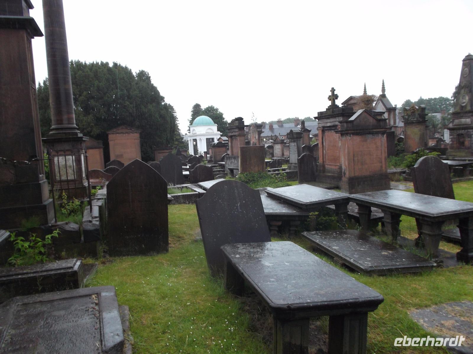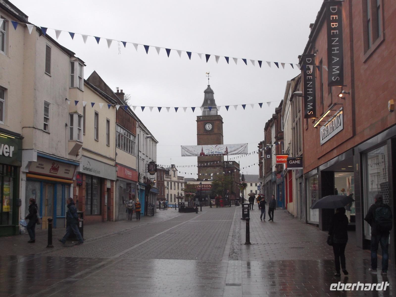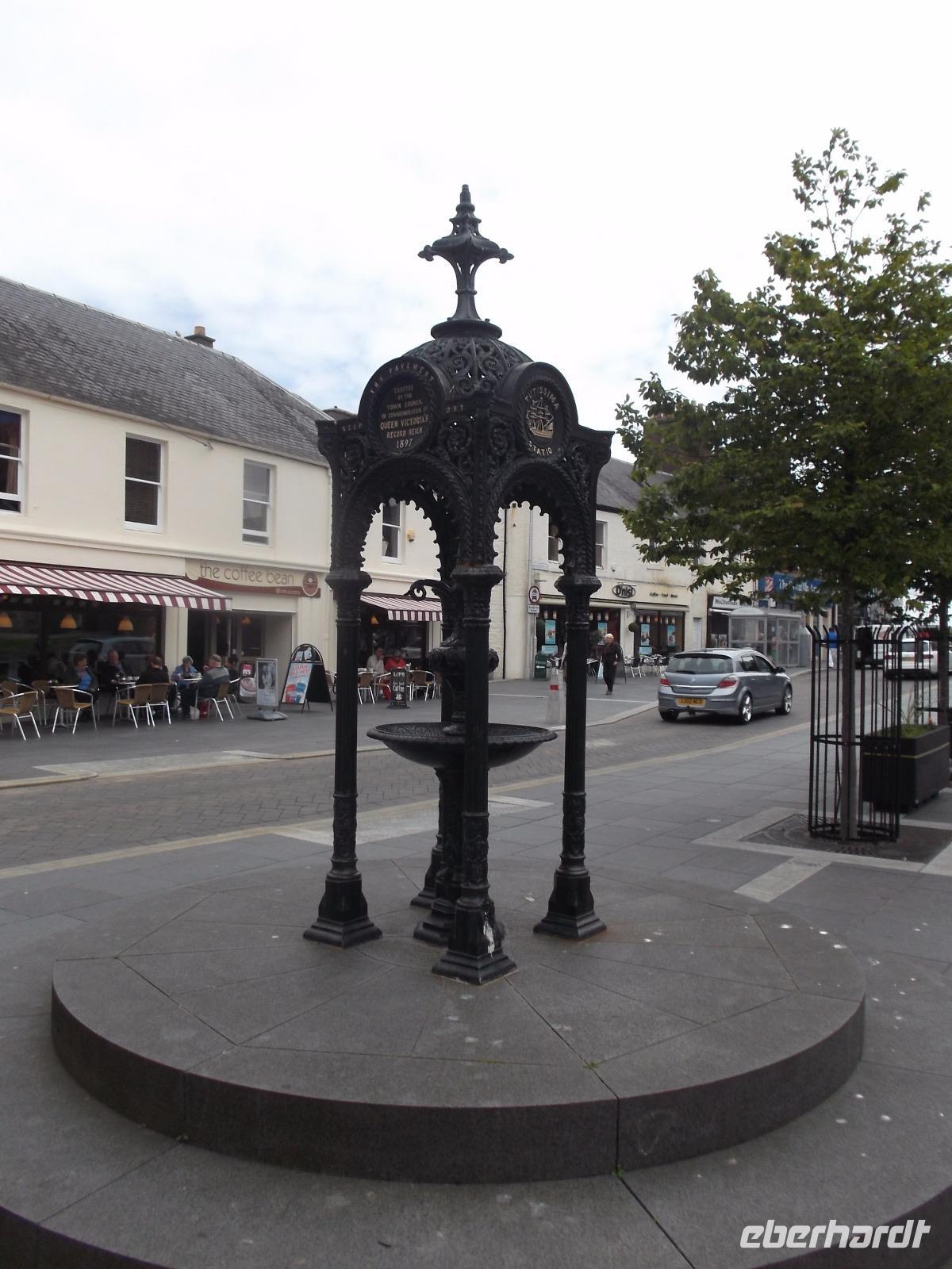 Dann fuhren wir nach Dumfries, dem Hauptort der Grafschaft Dumfries und Galloway. Recht malerisch am Flüsschen Nith gelegen, ist er vor allem als Wohn- und Sterbeort des schottischen Nationaldichters Robert Burns bekannt. Auch wenn das regnerische Wetter nicht gerade für Spaziergänge geeignet schien, drehten wir eine kleine „Runde" im Städtchen und besuchten den Friedhof mit dem Burns-Mausoleum, kamen an seinem Wohn- und Sterbehaus vorbei und durchquerten die Innenstadt vorbei an verschiedenen historischen Sehenswürdigkeiten - worunter sich übrigens auch die bevorzugten Pubs des Nationaldichters befanden - bis zu seinem Denkmal vor der Pfarrkirche.