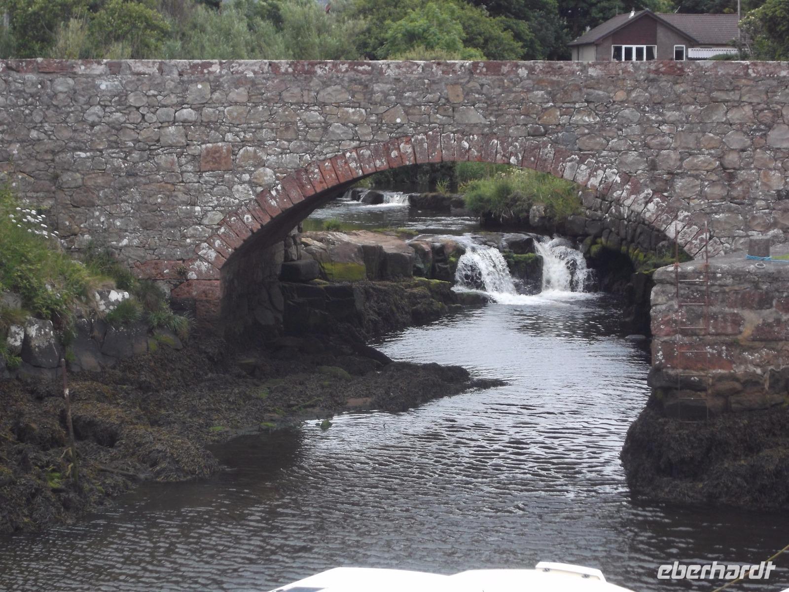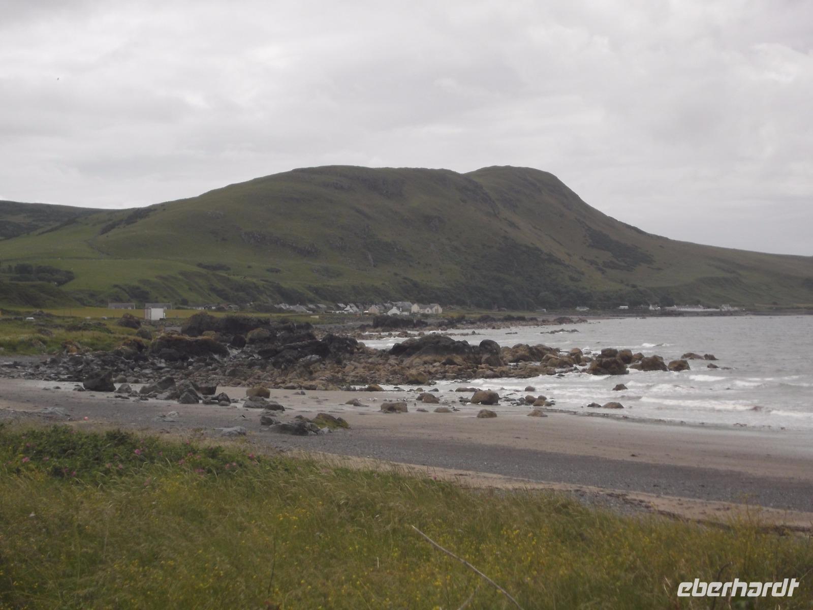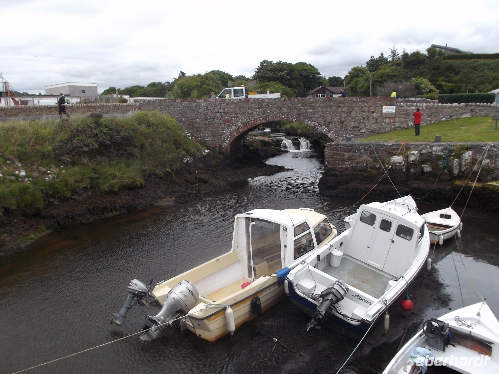 Nachj einem Stopp hier ging es weiter an der romantischen Küste entlang, jetzt aber in südlicher Richtung an der Westküste von Arran, denn wir hatten den nördlichsten Punkt der Insel schon überschritten. Es gab noch einen Halt im Dörfchen Blackwaterfoot neben dessen mehr als winzigen Hafen. Nun wurde es schon fast Zeit für den Rückweg, denn wir mussten ja mit der späten Nachmittagsfähre fahren, um rechtzeitig zum Abendessen zu kommen. Also durchquerten wir die Insel von West nach Ost und erreichten bald wieder den Hauptort Brodick, wo wir noch ein paar Minuten Freizeit bis zum Ablegen der Fähre hatten. Pünktlich waren wir auf dem „Festland" zurück und fuhren zu Abendessen und Übernachtung in unser Hotel vom Vortag.