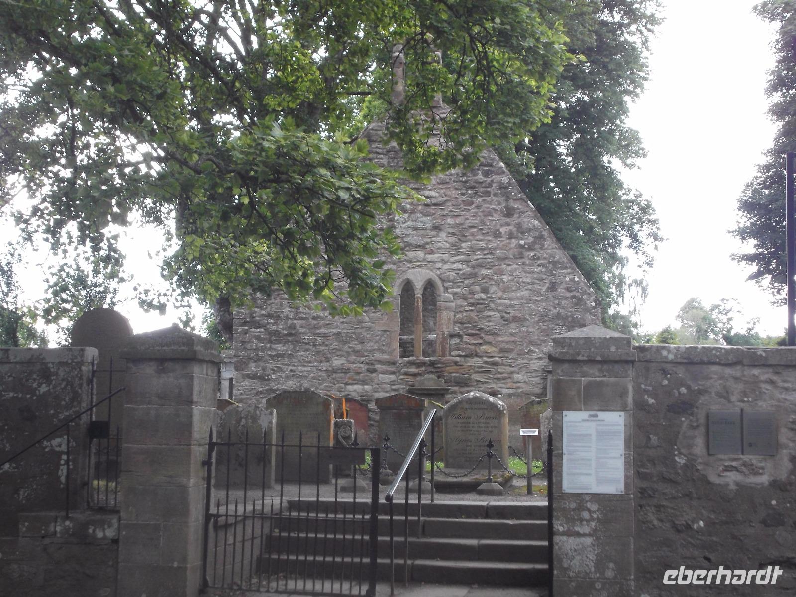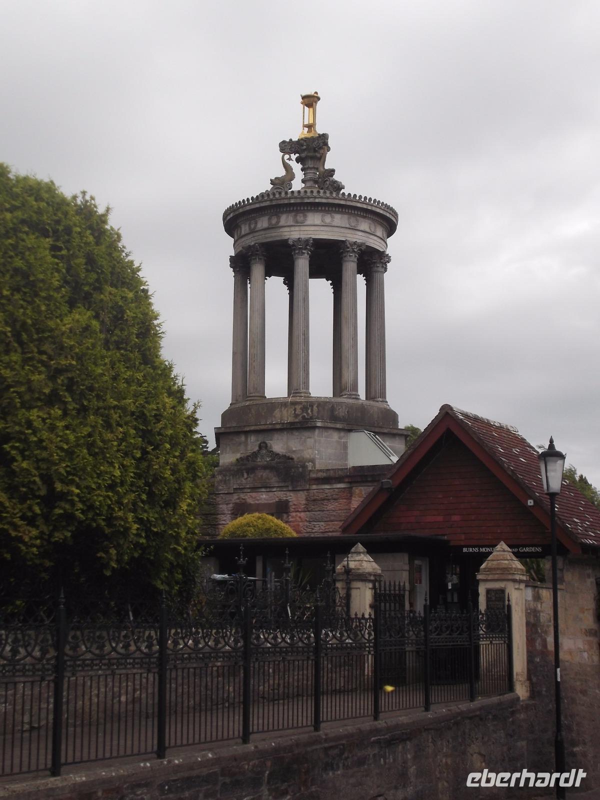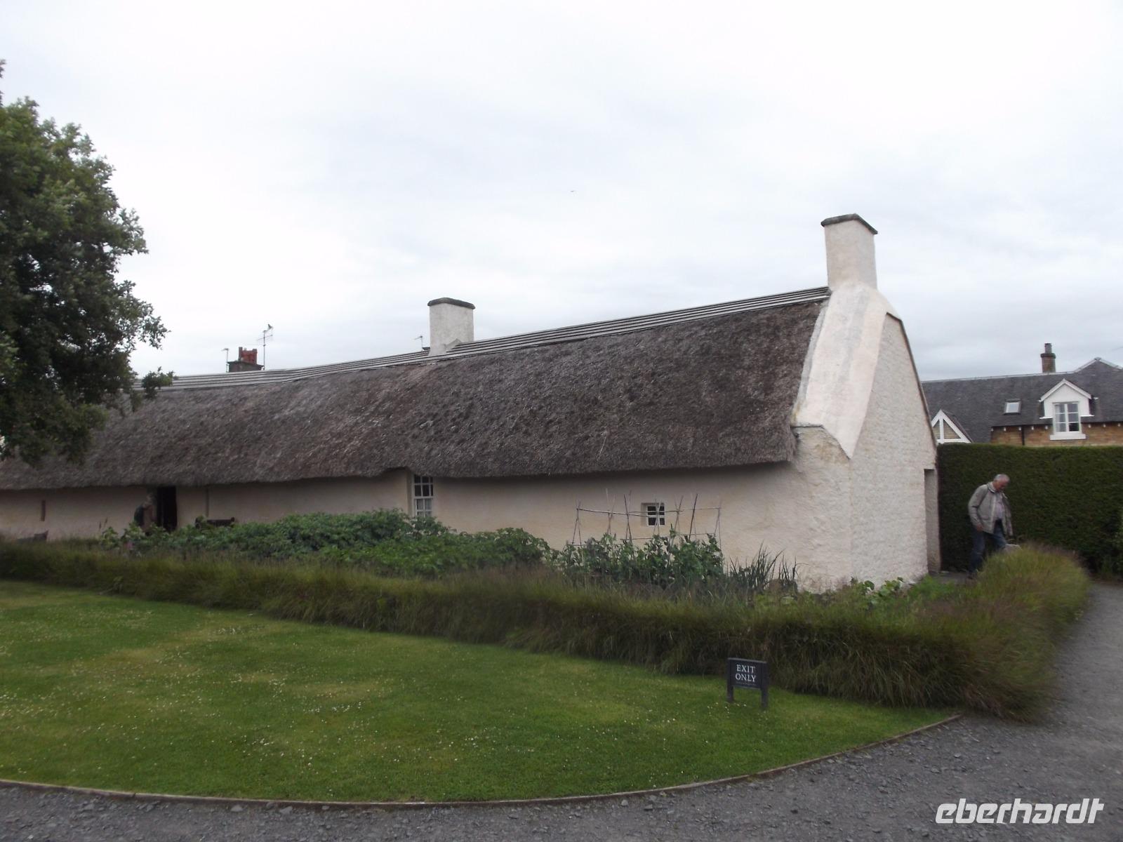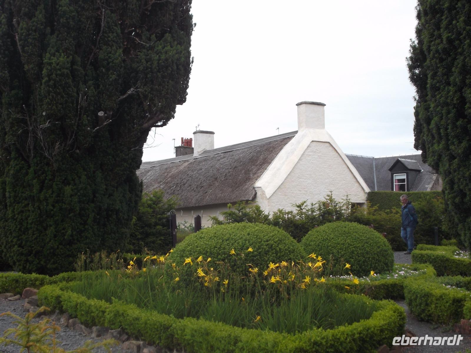 Später erreichten wir Alloway, den Geburtsort des schottischen Nationaldichters Robert Burns. Sein Geburtshaus, ein typisches weißgetünchtes Cottage mit Strohdach, ist eine Art Gedenkstätte mit zehntausenden Besuchern jährlich, von denen die meisten die Werke kennen, die Burns zumeist im typischen Dialekt der Gegend schrieb.