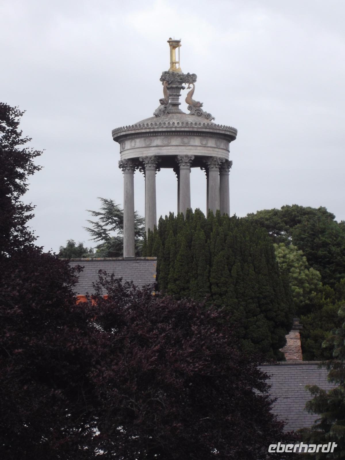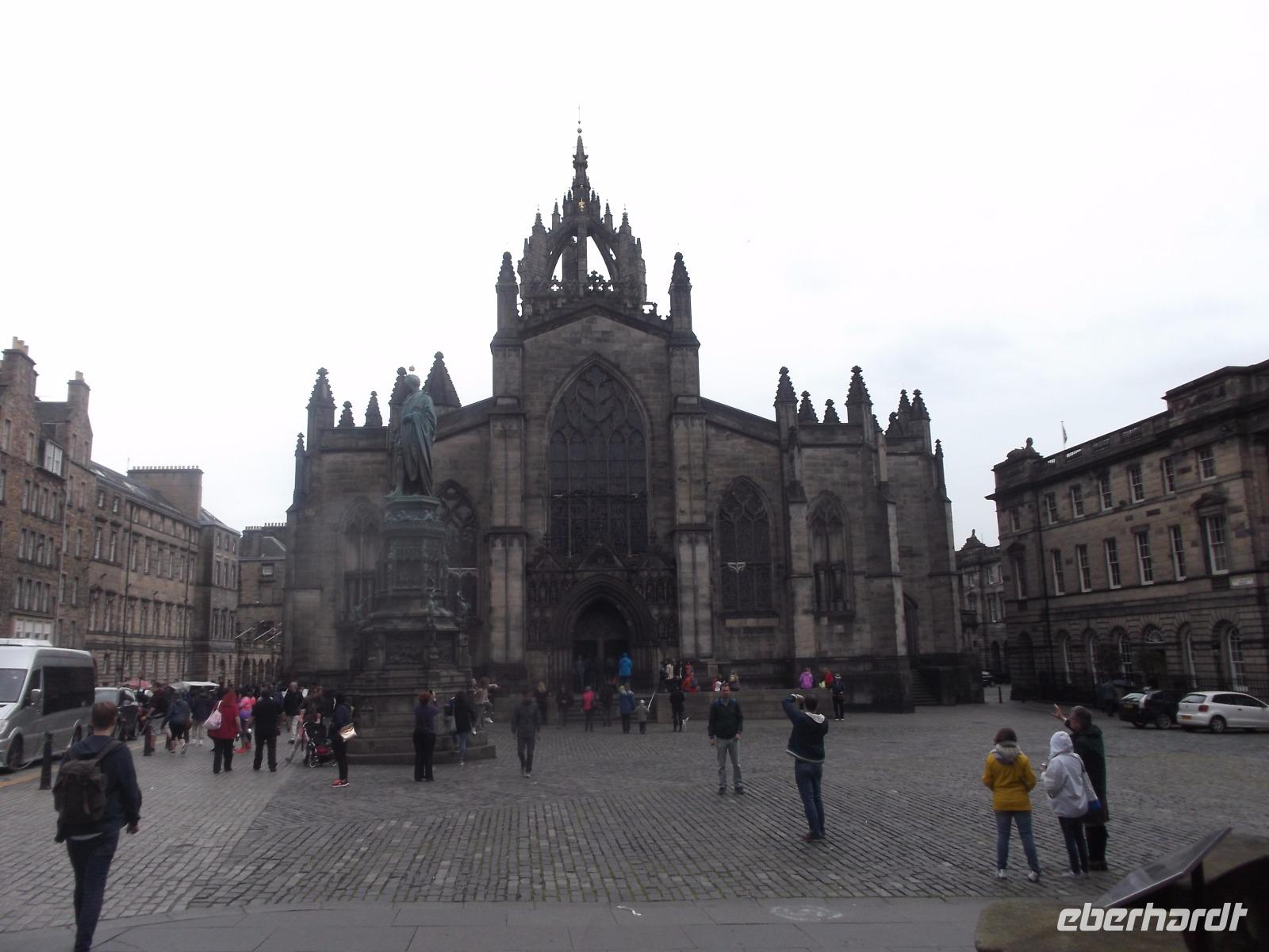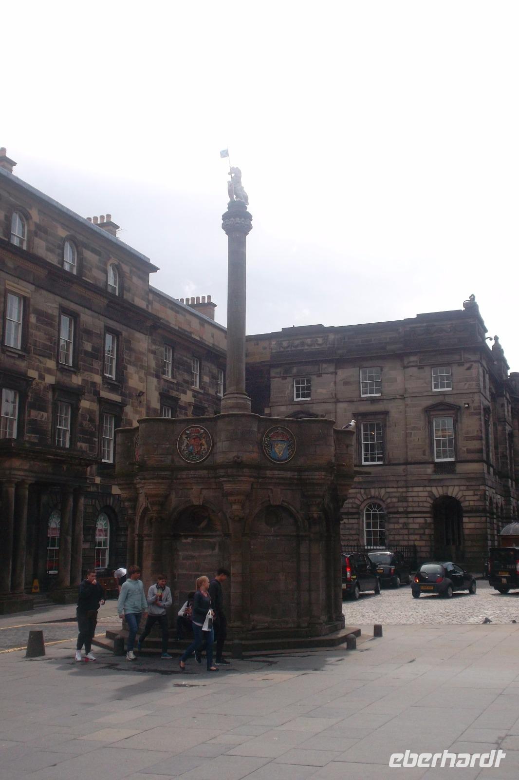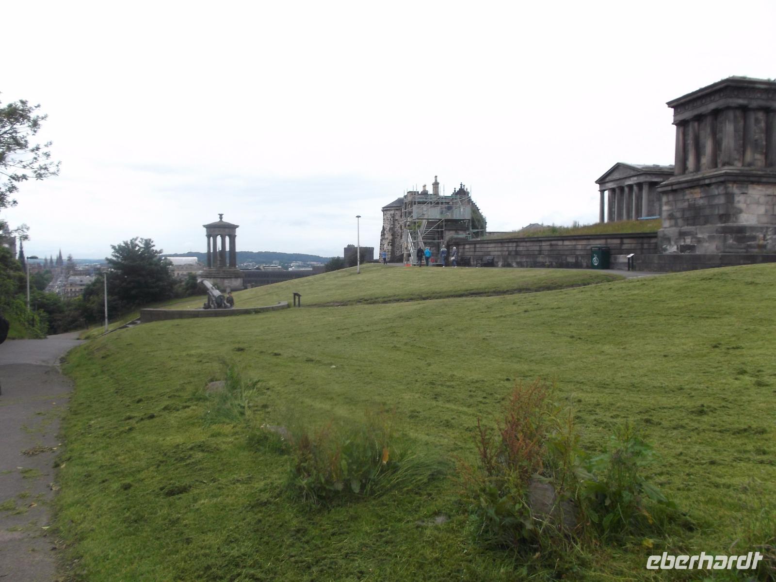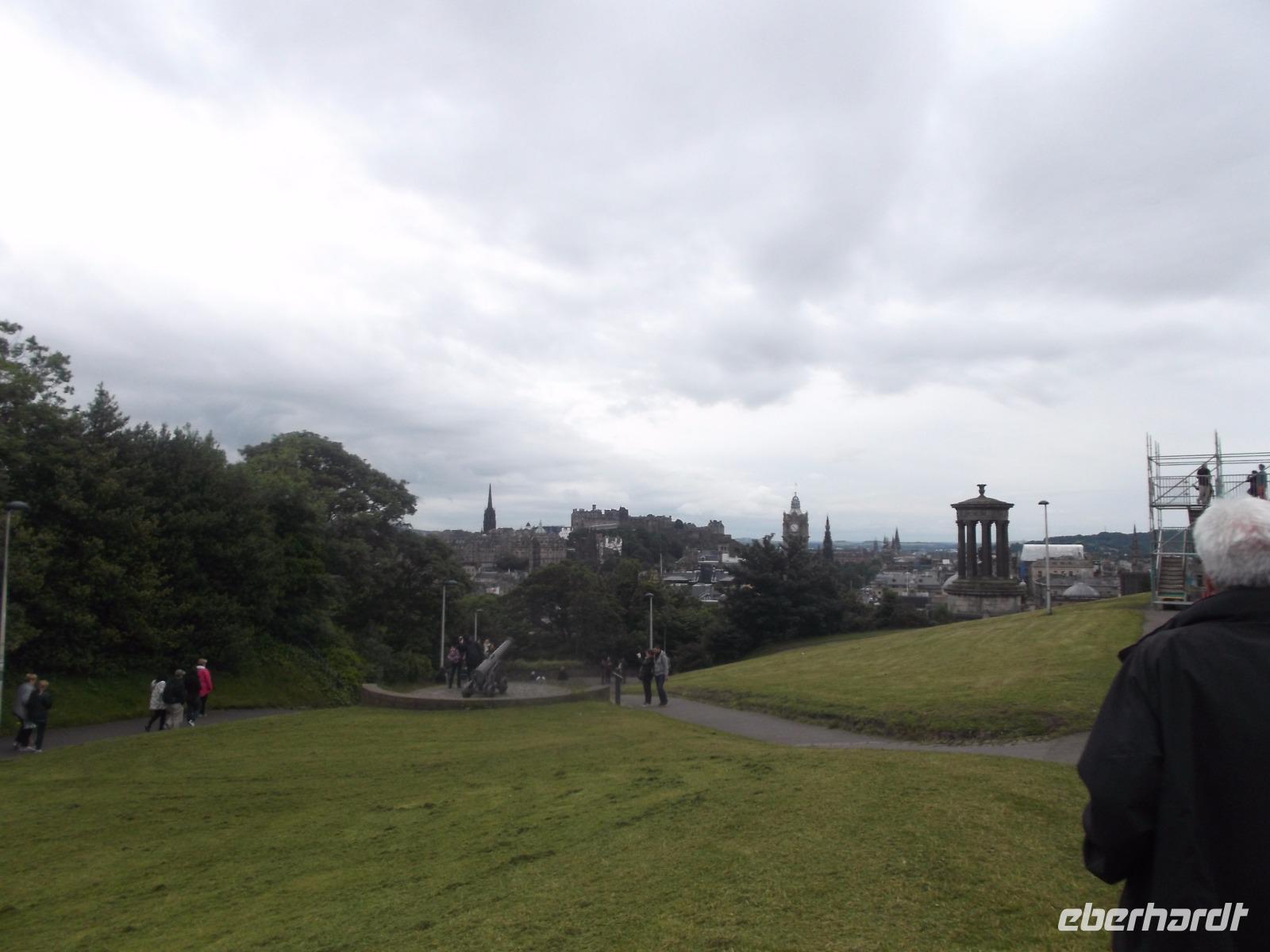 Dann ging es weiter und wir bestiegen den Calton Hill, die mit 170 m Höhe markanteste Erhebung mitten in der Stadt. Eine Replik des Athener Parthenon-Tempels, die niemals fertig wurde und das Nelson-Monument sind die auffallendsten Gebäude auf dem Hügel. Letzteres ist ein 32 m hoher Turm, errichtet Nach dem Sieg der englischen Flotte über die napoleonische bei Trafalgar zur Erinnerung an den dabei umgekommenen englischen Admiral Lord Nelson. Später hat man oben auf dem Turm, der von allen Teilen Edinburghs und auch vom Hafen aus sichtbar ist, ein Gestell mit Windrose und einem sogenannten „Zeitball" errichtet, der täglich um 13.00 Uhr sichtbar herabfällt und so den Beobachtern die genaue Zeit anzeigt. Vom Calton Hill aus hatten wir einen hervorragenden Blick auf alle Teile Edinburghs und konnten durch die Erklärungen der Stadtführerin die schottische Hauptstadt sozusagen beinahe aus der „Vogelperspektive" kennenlernen. Die weitere Rundfahrt wurde dann ein wenig durch verschiedene Sperrungen bestimmt, denn die britische Königin weilte gerade in Edinburgh, musste geschützt werden und so durften wir beispielsweise dieses Mal nicht am Palast von Holyroodhouse halten, sondern konnten ihn nur kurz per Bus umrunden. Neben Windsor und dem Schloss Balmoral in den Grampian Mountains ist dieser Palast eine der offiziellen königlichen Residenzen und die Queen muss sich hier eine bestimmte Zeit im Jahr aufhalten. Auf der Weiterfahrt sahen wir das neue schottische Parlamentsgebäude und erreichten dann die „Royal Mile", die sich längs durch Edinburghs Altstadt zieht und dabei Holyroodhouse-Palace mit dem Edinburgh Castle verbindet. Auf unserem Weg zu diesem - der auf einem Vulkanfelsen errichteten gewaltigen Stadtburg der schottischen Metropole - passierten wir einige der bekanntesten Sehenswürdigkeiten, z.B. die Hunde-Statue von „Greyfriars Bobby" oder den historischen „Grasmarket" mit seinen berühmten Pubs, um die sich viele Legenden ranken, denn der Grasmarket war Londons einstige Hinrichtungsstätte. Schließlich erreichten wir Johnston Terrace, die Straße, die zur Burg und seitlich zur Altstadt hinauf führt und wo unser Bus parken konnte. Inmitten von unglaublichem Gedränge betraten wir die Burg und Stadtführerin Nadine gab noch einige Erklärungen bei einer kurzen Führung, vorbei an der „Mittagskanone", den verschiedenen Kasernen auf der Burg sowie dem ältesten Teil mit der Margarethen-Kapelle bis wir auf dem Platz vor dem Haus der Kronjuwelen endeten. Es blieb - trotz einsetzendem Regen - noch etwas Freizeit für eventuelle Besichtigungen auf der Burg und für einen Bummel in der Edinburgher Altstadt.