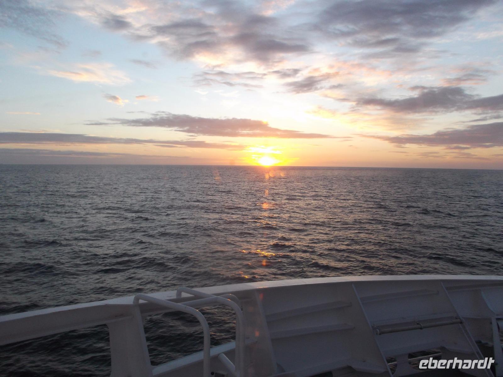 Danach kamen wir pünktlich zum Fähranleger in Ijmuiden und nach problemlosem Check in betraten wir noch lange vor seiner Abfahrt unser Fährschiff „Princess Seaways". Es gehört zum dänischen Unternehmen DFDS und bietet in typisch skandinavischer Gastlichkeit ein leckeres Schlemmerbuffet zum Abendessen an. Untergebracht in zwar kleinen, aber recht komfortablen Kabinen, in die wir nach dem Check in mit unserem leichten „Fährgepäck" eingezogen waren konnten wir sodann auf „große Fahrt" über die Nordsee gehen.