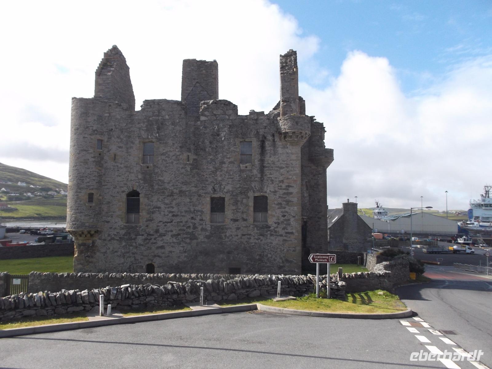 Wir setzten unsere Erkundungen fort in der ehemaligen Hauptstadt der Shetlands. Die Ruine der alten Burg von Scalloway ist von außen frei zugänglich und durchaus fotogen. Als neben dem Fort in Lerwick am wohl besten erhaltener Wehrbau der Inselgruppe ist Scalloway Castle mit der unrühmlichen Geschichte von Earl Patrick Stuart verbunden, der als grausamer Bösewicht 1615 von der schottischen Justiz hingerichtet wurde, obwohl er mit dem König verwandt war.
