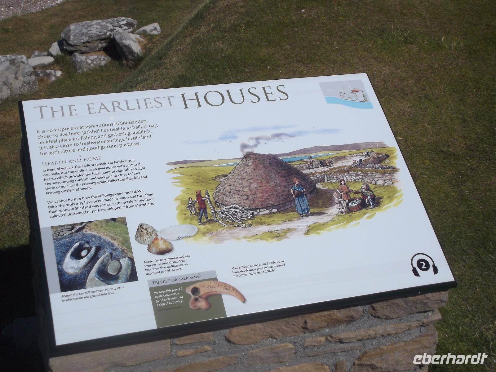 Nach dem Frühstück auf dem Fährschiff machten wir uns auf, das südliche Mainland der Shetlands zu erkunden. Die Hauptinsel ist über 100 km lang und macht mit ihrer Fläche von 970 km² - das ist etwa so groß wie die Insel Rügen - ungefähr zwei Drittel der Landfläche des Shetland-Archipels aus. Zudem leben fast vier Fünftel aller Einwohner von den 19 bewohnten der insgesamt fast 100 Shetland-Inseln hier auf Mainland. Gelegen bereits im Eismeer kurz vor Island gehören die Inseln zu den nördlichsten Gebieten in Europa. Das südliche Mainland ist Moor- und Ackerland und es war - erstaunlicherweise für die exponiert nördliche Lage - bereits kurz nach der Eiszeit besiedelt.