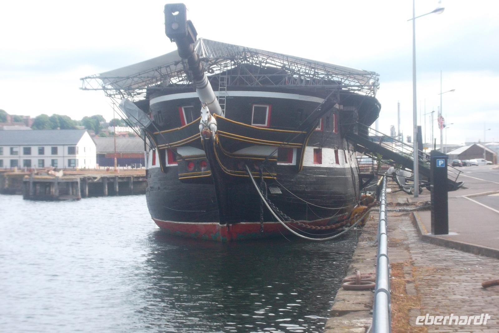 Nach dem Besuch der „Discovery" hatten wir noch Freizeit für das Stadtzentrum und das Hafenviertel von Dundee, wo in den Victoria Docks die Fregatte „Unicorn" vor Anker liegt, ein sehenswertes Kriegsschiff aus dem 19. Jahrhundert, das offiziell immer noch im aktiven Dienst der „Royal Navy" steht.