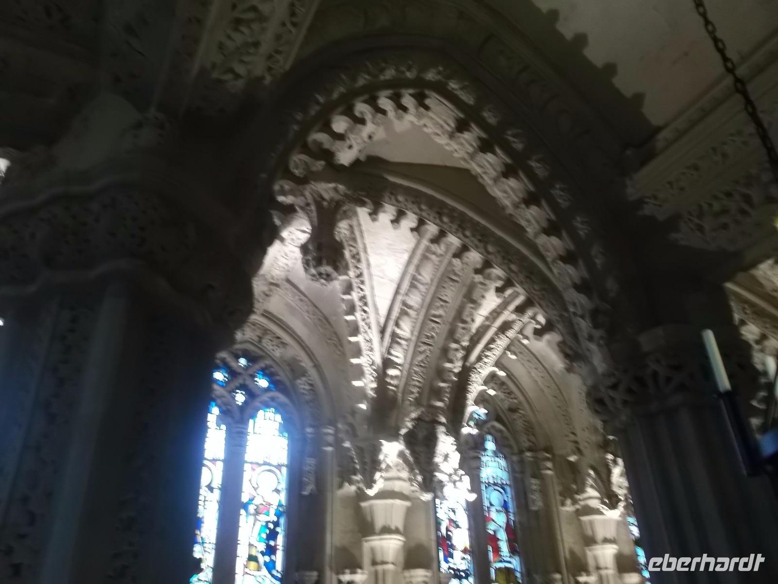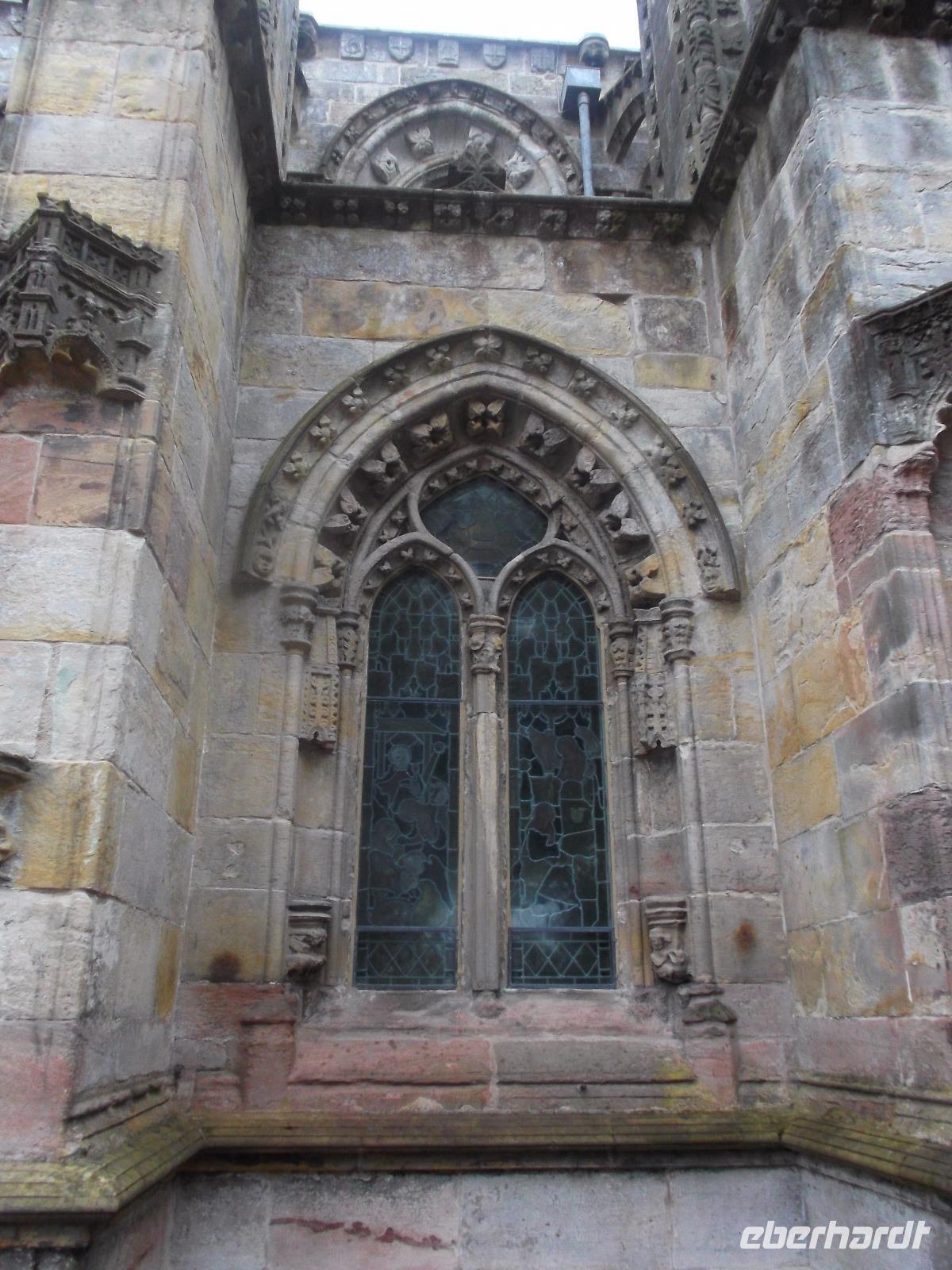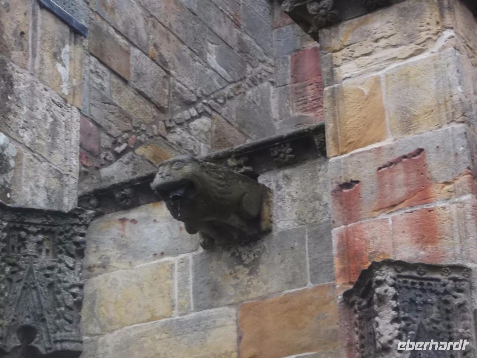 Ein weiterer Höhepunkt unserer Reise war die Besichtigung der mit herrlichen Steinmetzarbeiten verzierten und durch den Thriller-Autor Dan Brown und die Verfilmung seines Bestsellers „Der da Vinci-Code" weltweit bekannt gewordene Roslyn Chapel. Wir konnten nicht klären, ob sie tatsächlich der Aufbewahrungsort für den Heiligen Gral ist, aber die ungeheuer reich dekorierte aus dem 15. Jahrhundert stammende Kapelle ist auf jeden Fall etwas ganz Besonderes. Ob die Glasmalereien der Fenster, die filigranen Steinmetzarbeiten der Fensterrahmungen oder die herrlich verzierten Säulen - geheimnisumwobene Symbolik, die durchaus an die legendären Tempelritter erinnert, findet sich hier überall.