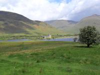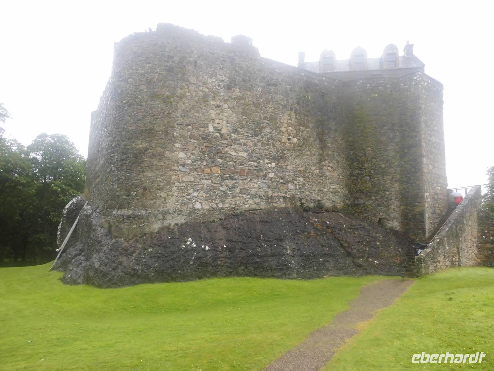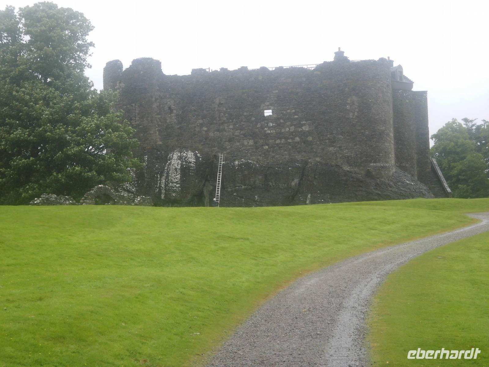 Nach der Brennerei hatten wir noch eine knappe Stunde Zeit für einen Bummel durch das hübsche Hafenstädtchen Oban - auch wenn es ein nasser Spaziergang wurde, denn es regnete. Dieser Zustand hielt auch an, als wir Dunstaffnage Castle besuchten, jene uralte Burg, von der es heißt, man habe hier den „Schicksalsstein" - den schottischen Krönungsstein - VOR seiner Verbringung nach Scone aufbewahrt. Das ist historisch nicht erwiesen, dennoch ist die kleine kompakte Burg Dunstaffnage recht interessant - ebenso wie die winzige Ruine der danebenliegenden Kapelle, die zu den ältesten christlichen Bauwerken in Schottland gehört.
