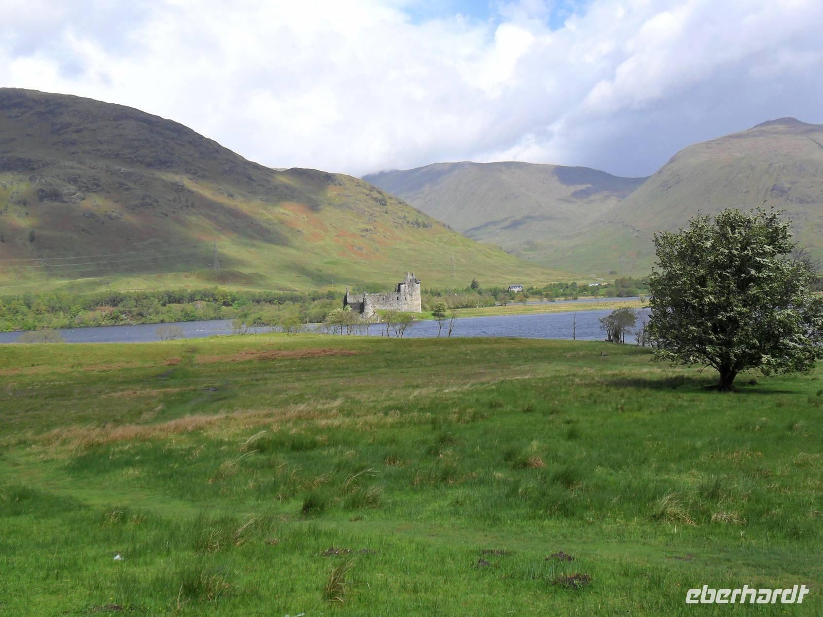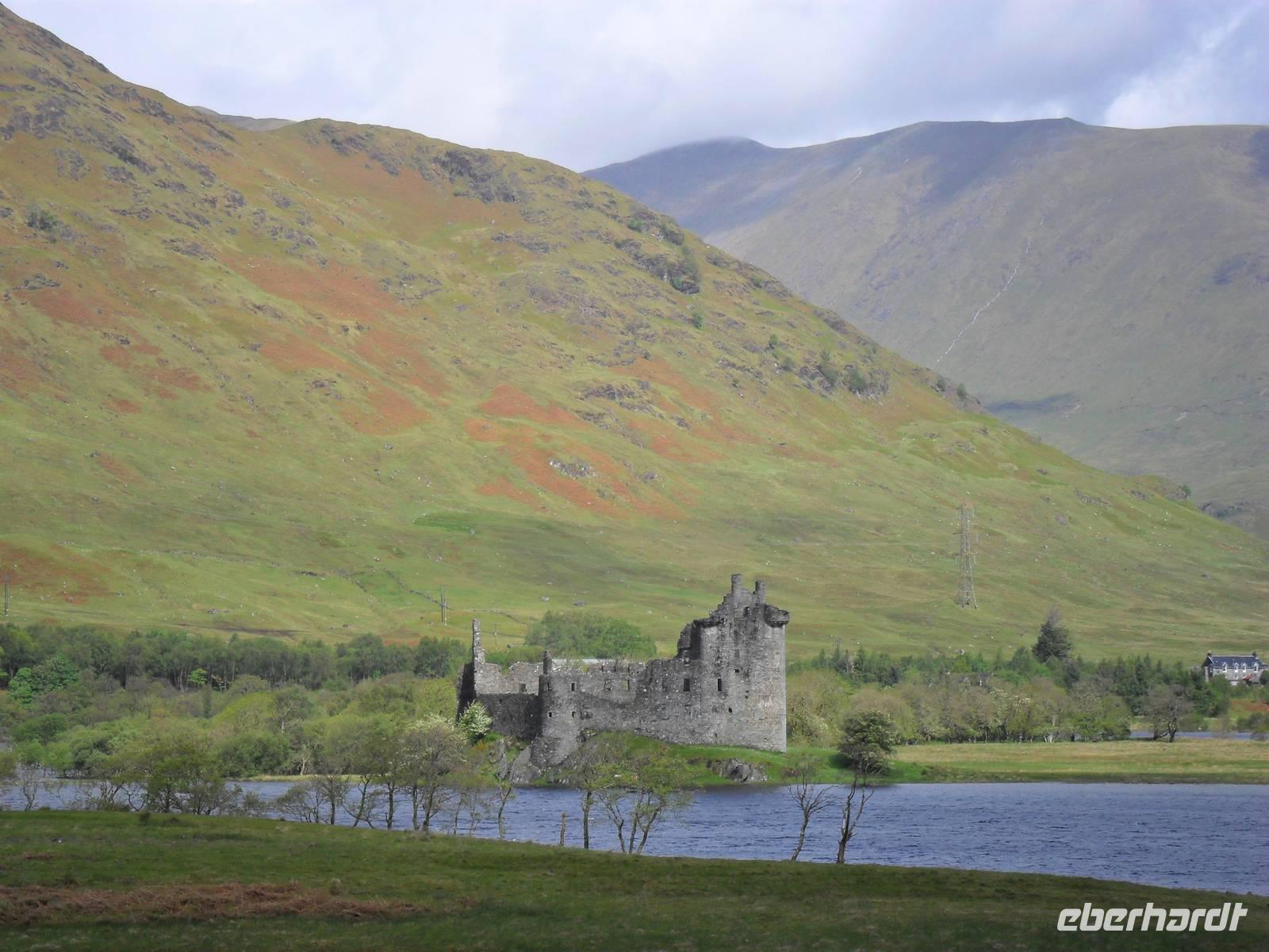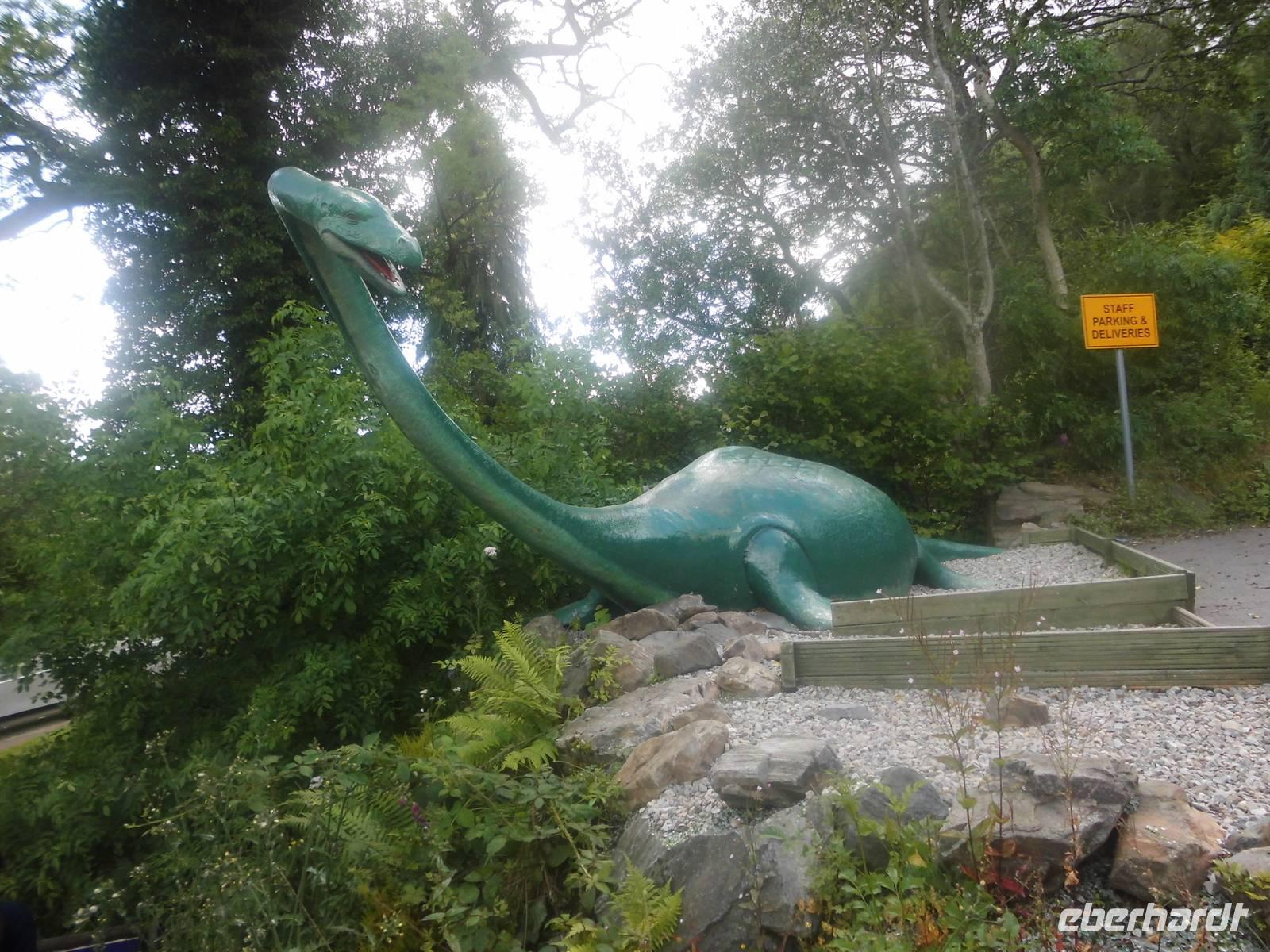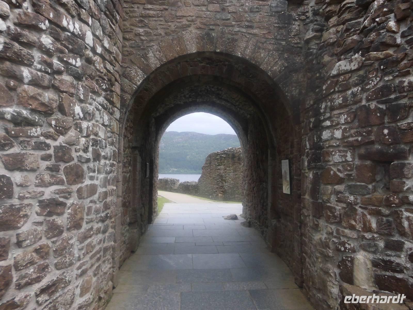Seeoberfläche wirkt abweisend und geheimnisvoll - der Stoff, aus dem Legenden sind! Unsere Hoffnungen, das Original-Monster mal kurz zu sehen wurden aber enttäuscht, bis auf die Wellen im See sahen wir nichts. Ein kleines Nessie-Foto im Hafen war aber möglich, denn die Nachbildung eines Plesio-Sauriers steht hier als Modell, da die meisten Menschen sich das Ungeheuer von Loch Ness als Saurier vorstellen. Unseren Ausstieg nach der halbstündigen Bootsfahrt hatten wir an der Burgruine Urquardt Castle, die zu den malerischsten und meistbesuchten Burgruinen Schottlands gehört. Einst wichtiger Stützpunkt der schottischen Könige, war sie einige Zeit auch Verwaltungssitz des „norwegischen" Teils von Schottland. Die aus dem 13. Jahrhundert stammende Burg war lange Zeit wichtig, wurde aber nach Verlust dieser Bedeutung Ende des 17. Jahrhunderts endgültig verlassen.