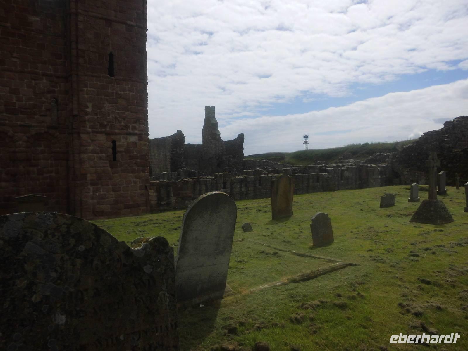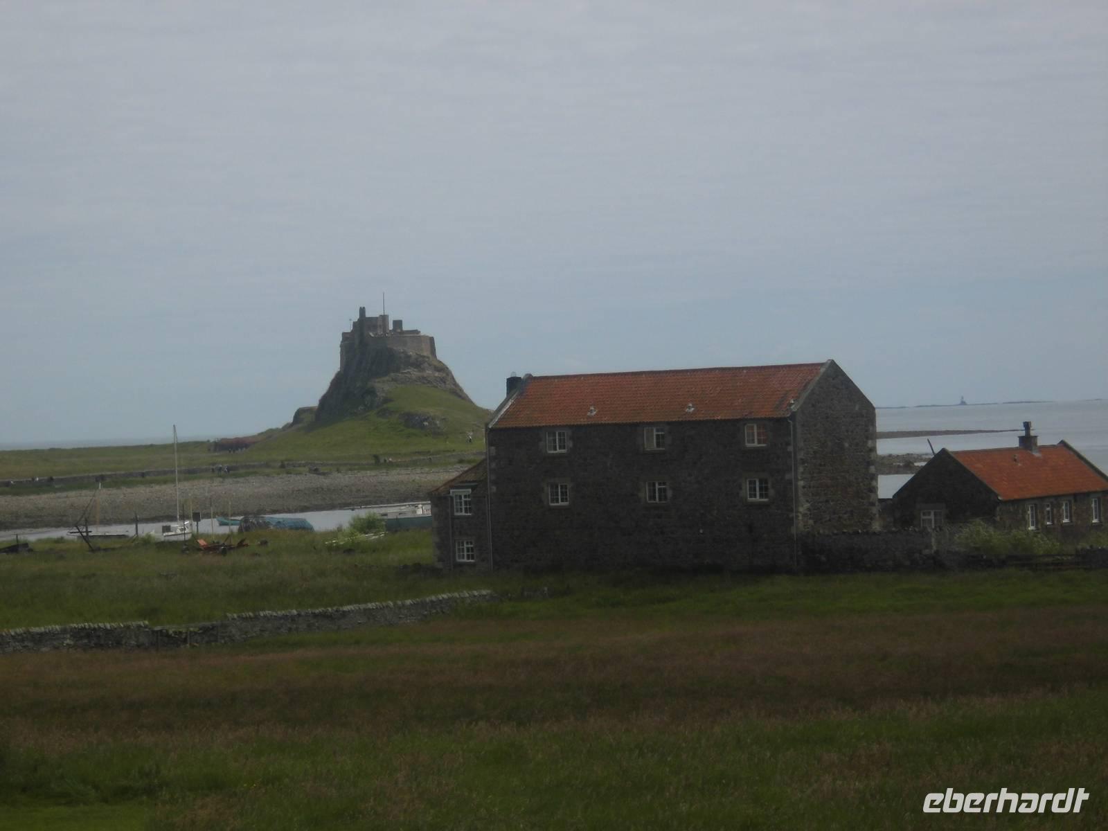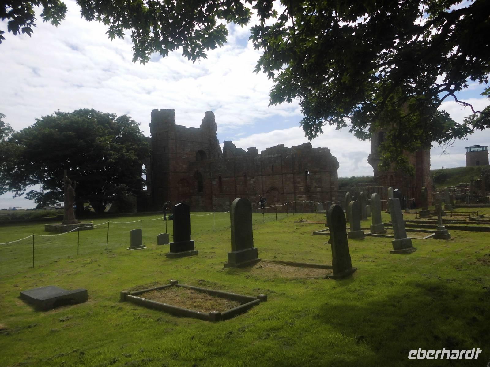 Mit leichter Verspätung legte die „Princess Seaways" in Newcastle an, dennoch waren wir schon gegen 10.00 Uhr Ortszeit alle vom Schiff, durch die britische Grenzkontrolle und saßen erwartungsvoll im Bus. Wir begaben uns in Richtung Norden, herum um Newcastle-upon-Tyne, Englands nördlichste Großstadt, um unser erstes Etappenziel anzuvisieren. Auf dem Weg dorthin hatte ich als Überraschung im Sinne des „Richtig Reisen!" Mottos von Eberhardt TRAVEL einen Leckerbissen eingeplant Durch ein Telefonat mit dem Touristenbüro in Berwick-upon-Tweed über die aktuellen Zeiten von Ebbe und Flut aufgeklärt, wusste ich, dass es möglich war, die im Wattenmeer im Überflutungsgebiet der Nordsee Insel „Holy Island", die per Bus nur bei Ebbe zu erreichen ist, während unseres Weges nach Norden aufzusuchen. Hier stehen unter anderem die Ruinen der im 7. Jahrhundert errichteten Abtei Lindisfarne des heiliggesprochenen irischen Mönches St. Aidan. Dieses große Kloster wurde zum Ausgangspunkt der Christianisierung Englands und wurde 793 urkundlich nachweisbar von den Wikingern überfallen, was von Historikern als „Beginn der Wikingerzeit" angesehen wird. Zudem heißt es, dass die Mönche nach dem Verlassen der Insel aus Furch vor den Wikingern mit ihren Reliquien eine neue Abtei in Nordengland gründeten, aus der Durham mit seiner berühmten Kathedrale entstand.