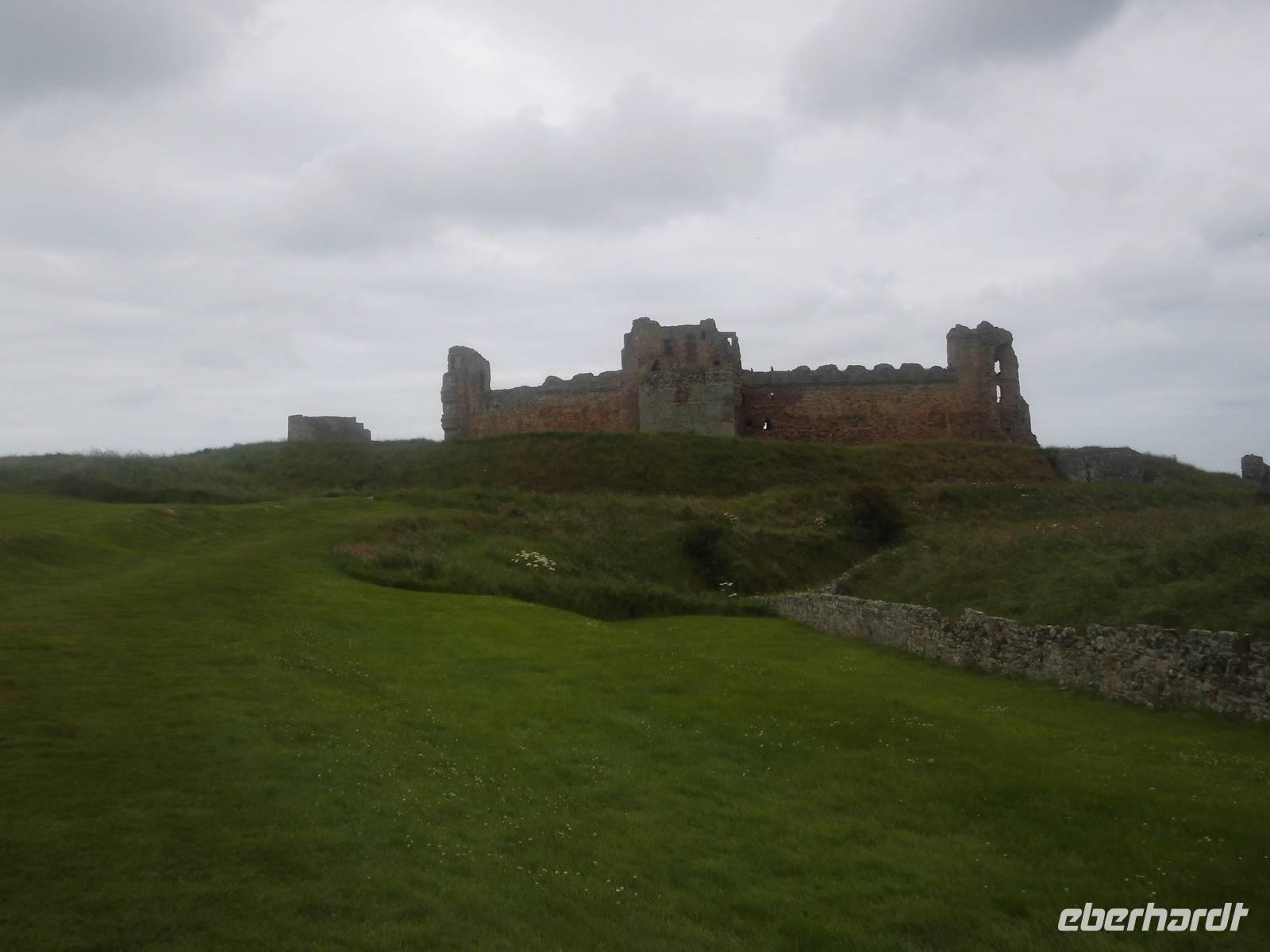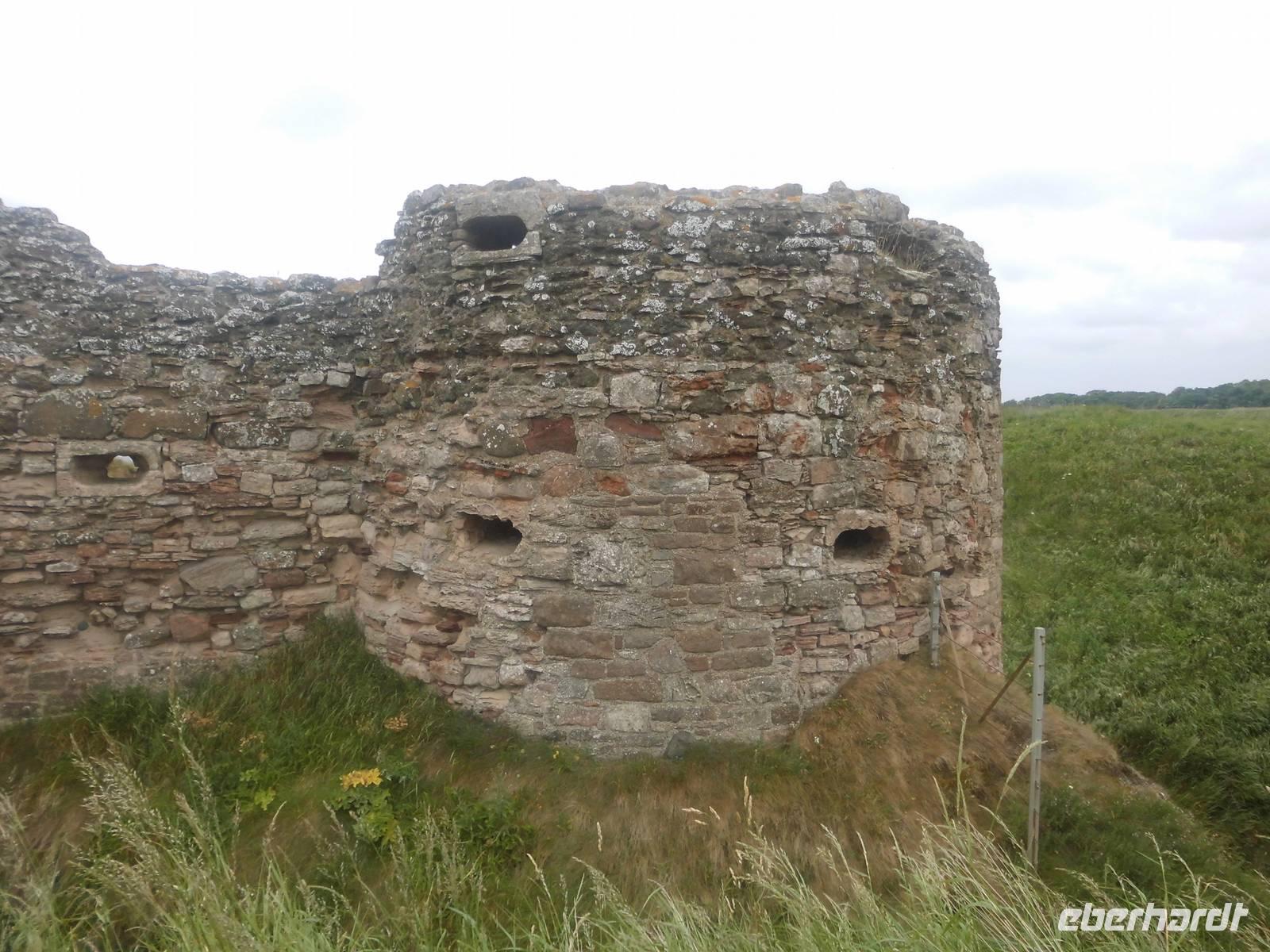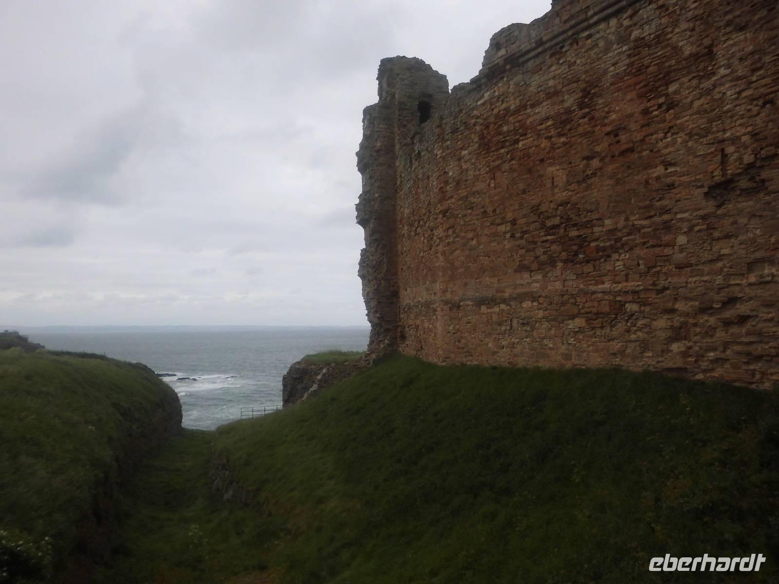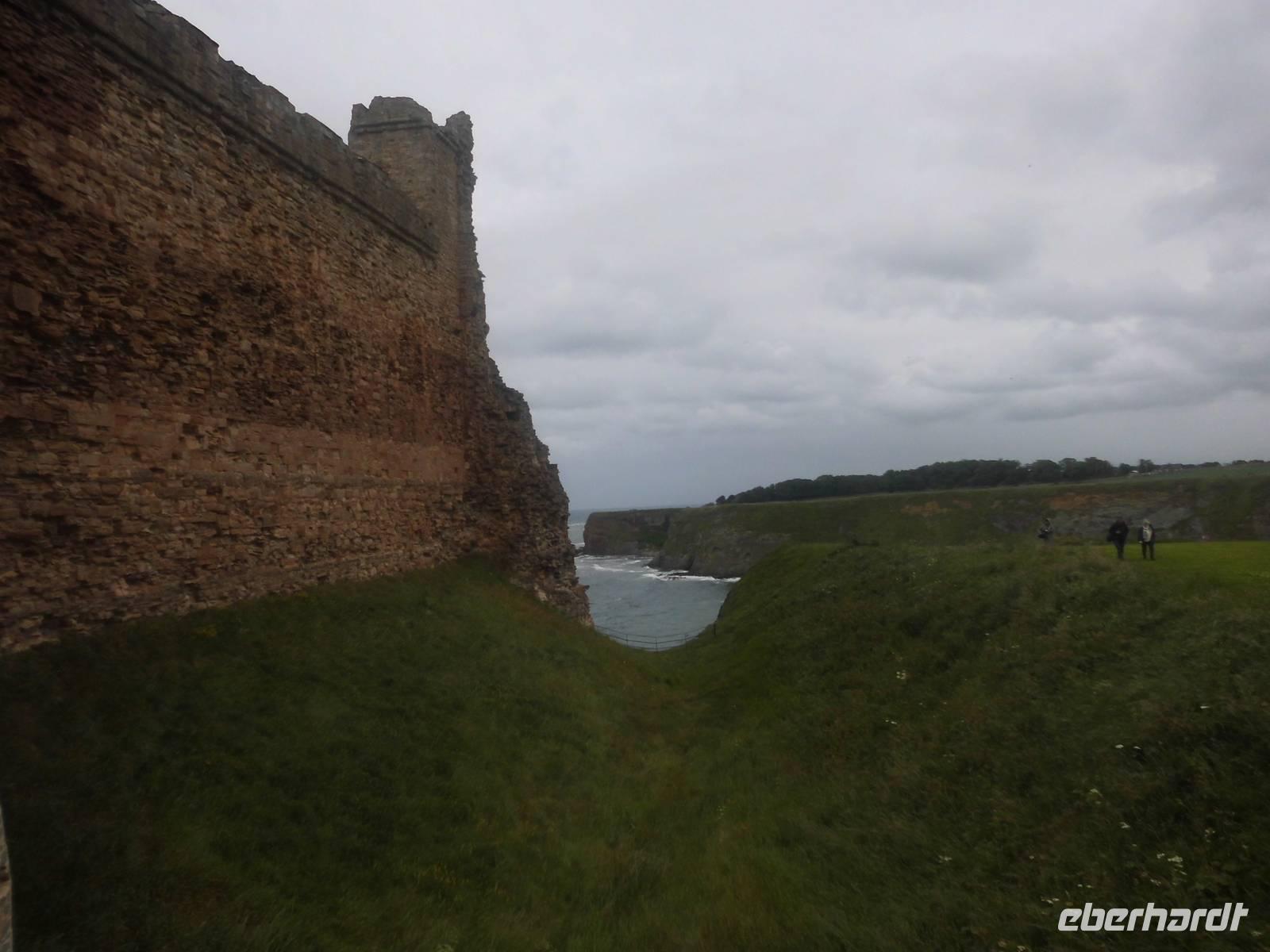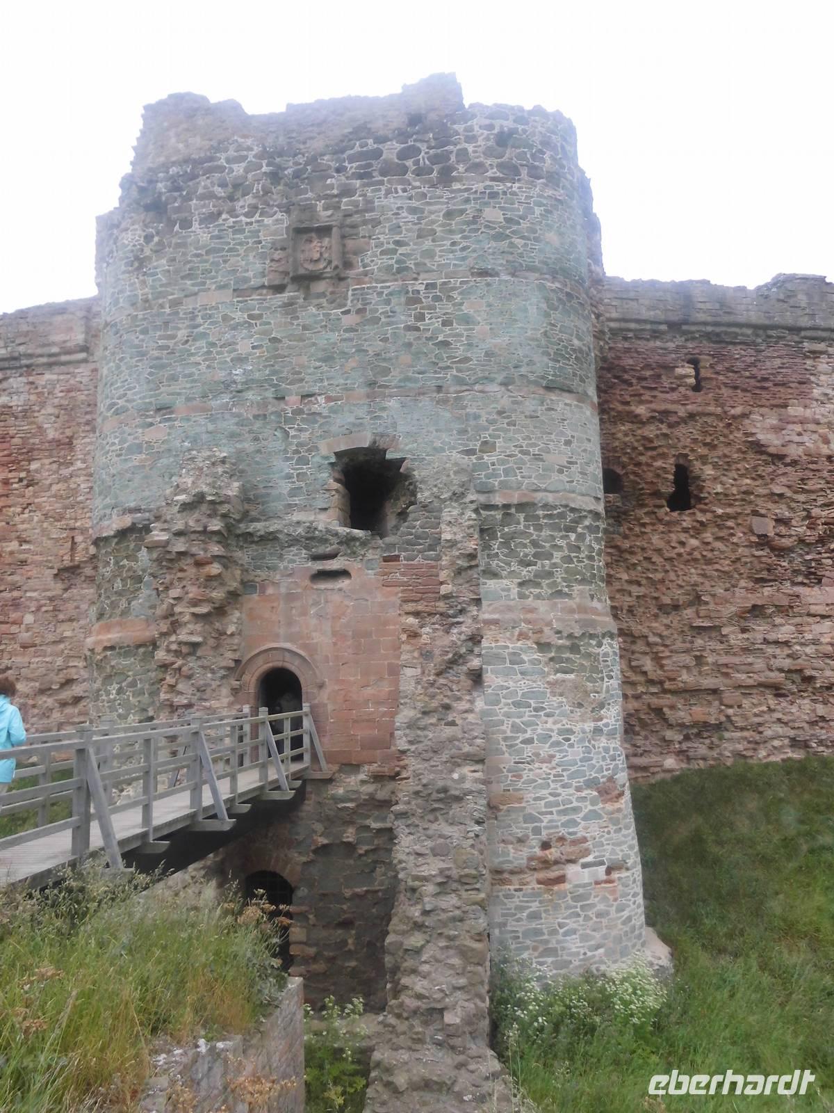 Nach Überschreiten der Grenze zu Schottland erreichten wir schon bald die erste schottische Burg. Hoch auf einer Klippe am Eingang des Firth of Forth wurde im 14. Jahrhundert vom Douglas Clan Tantallon Castle erbaut. Von drei Seiten natürlich durch die Steilküste und die rauhe See geschützt, vermittelt die Burg heute noch den Eindruck einstiger Wehrhaftigkeit. Schon im englischen Bürgerkrieg unter Cromwell im 17. Jahrhundert zerstört und mit Artillerie zur Ruine geschossen, kann man dennoch heute noch den wuchtigen Mittelturm mit Tor, die Palastanlagfe und die Außenwerke gut erkennen - sogar den gewaltigen einstigen Burggraben, der den Landzugang - die vierte Seite - schützte.
