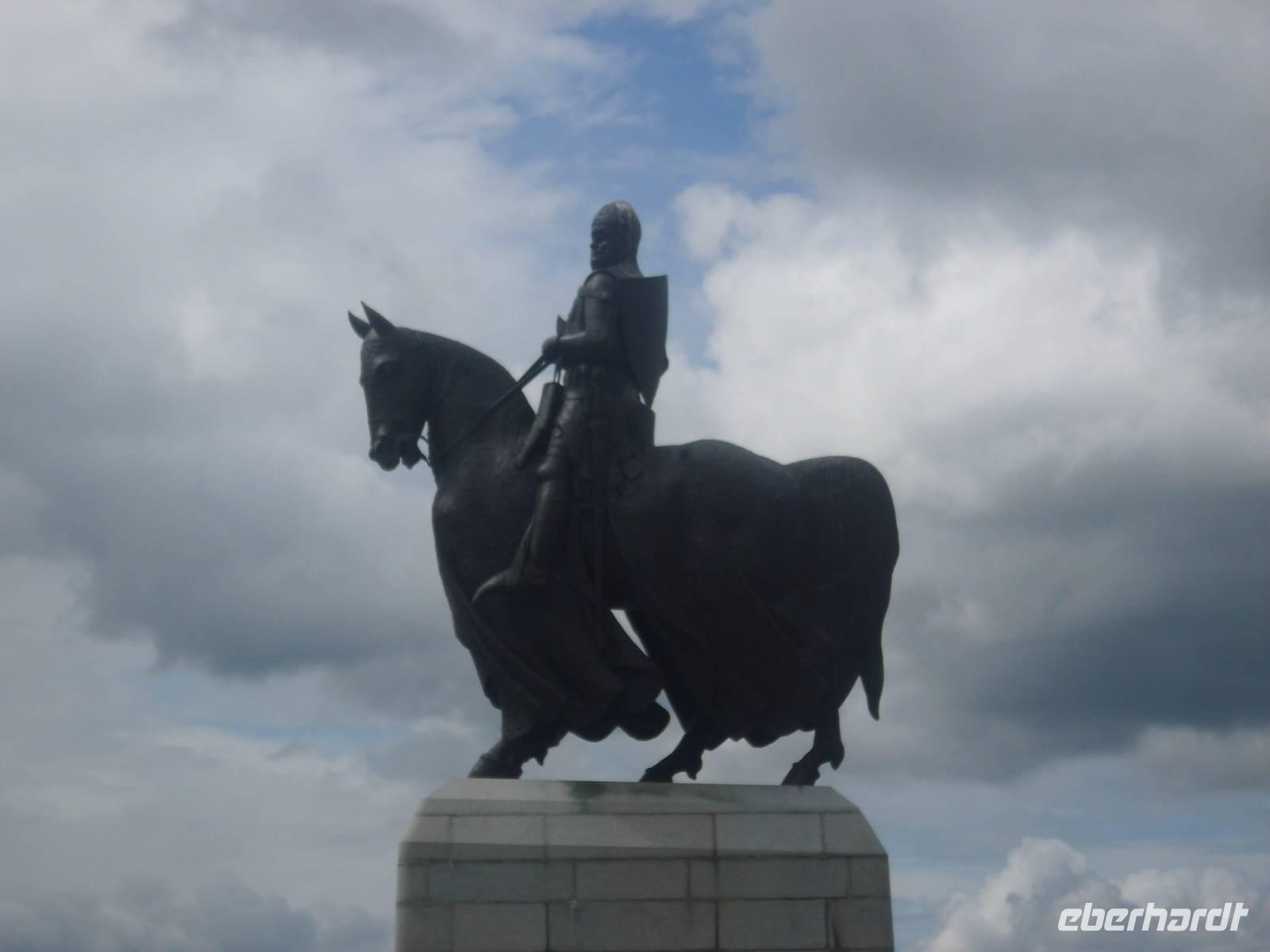 Unser erste Ziel heute war das Wallace-Monument bei Stirling, der einstigen schottischen Hauptstadt. Hier brachte der Freiheitsheld William Wallace im Jahre 1297 den Truppen des englischen Königs Edwards I. Longshanks, der Schottland okkupiert hatte, in der Schlacht von Stirling Bridge eine vernichtende Nieder-lage bei. Dafür zum Regenten („Guardian of Scotland") ernannt, unterlag er Edward I. zwar in der Schlacht von Falkirk, hielt aber englische Truppen aus Schottland fern. Nachdem er durch Verrat von England gefangengenommen und grausam hingerichtet worden war, wurde er zur Legende des schottischen Unabhängigkeitskampfes. Viele haben den Film „Braveheart" von und mit Mel Gibson gesehen, in dem sein Leben geschildert wird. Wir such-ten heute als erstes das für ihn 1869 errichtete Denkmal auf - einen prächtigen, weithin sichtbaren 67 m hohen Turm mit Wallace-Museum. Neben einer atemberaubenden Sicht auf die Stadt und die Burg Stirling kann man hier eine gut inszenierte Museums-Show zum schottischen Nationalhelden sehen, als deren Höhepunkt das Schwert gezeigt wird, mit dem Wallace angeblich nacheinander 50 Soldaten der schweren englischen Reiterei erschlagen haben soll.