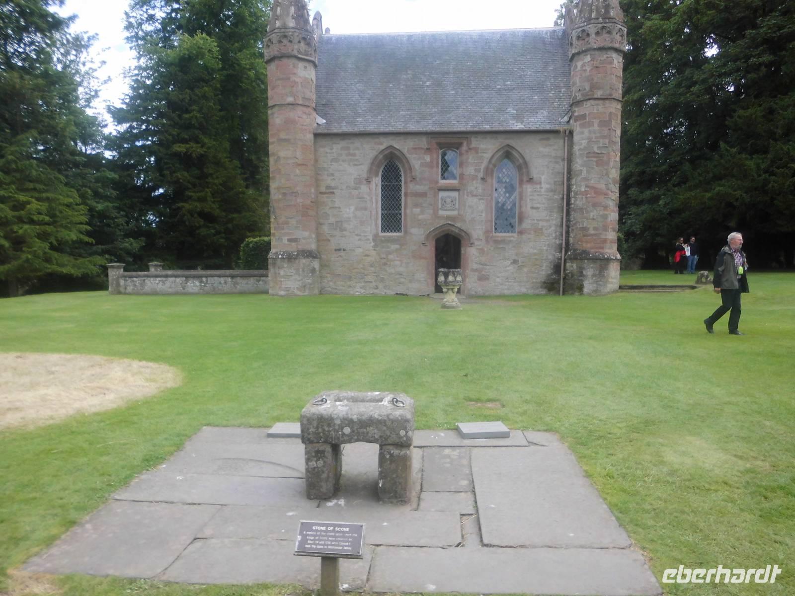 Der heutige Tag begann mit dem Besuch bei einer Legende: Scone Palace ist der Ort, auf dessen Gelände der sagenhafte Krönungsstein der schottischen Könige aufbewahrt wurde. Der beeindruckende neogotische Palast selbst wurde auf den Ruinen einer alten Abtei zu Be-ginn des 19. Jahrhunderts unter Leitung des Architekten William Atkinson für die Grafen von Mansfield erbaut, einen Titel, der zum Fraser-Clan gehört.
