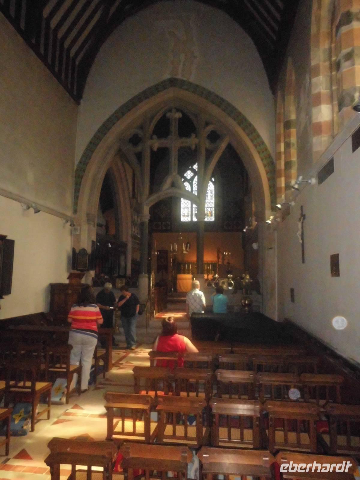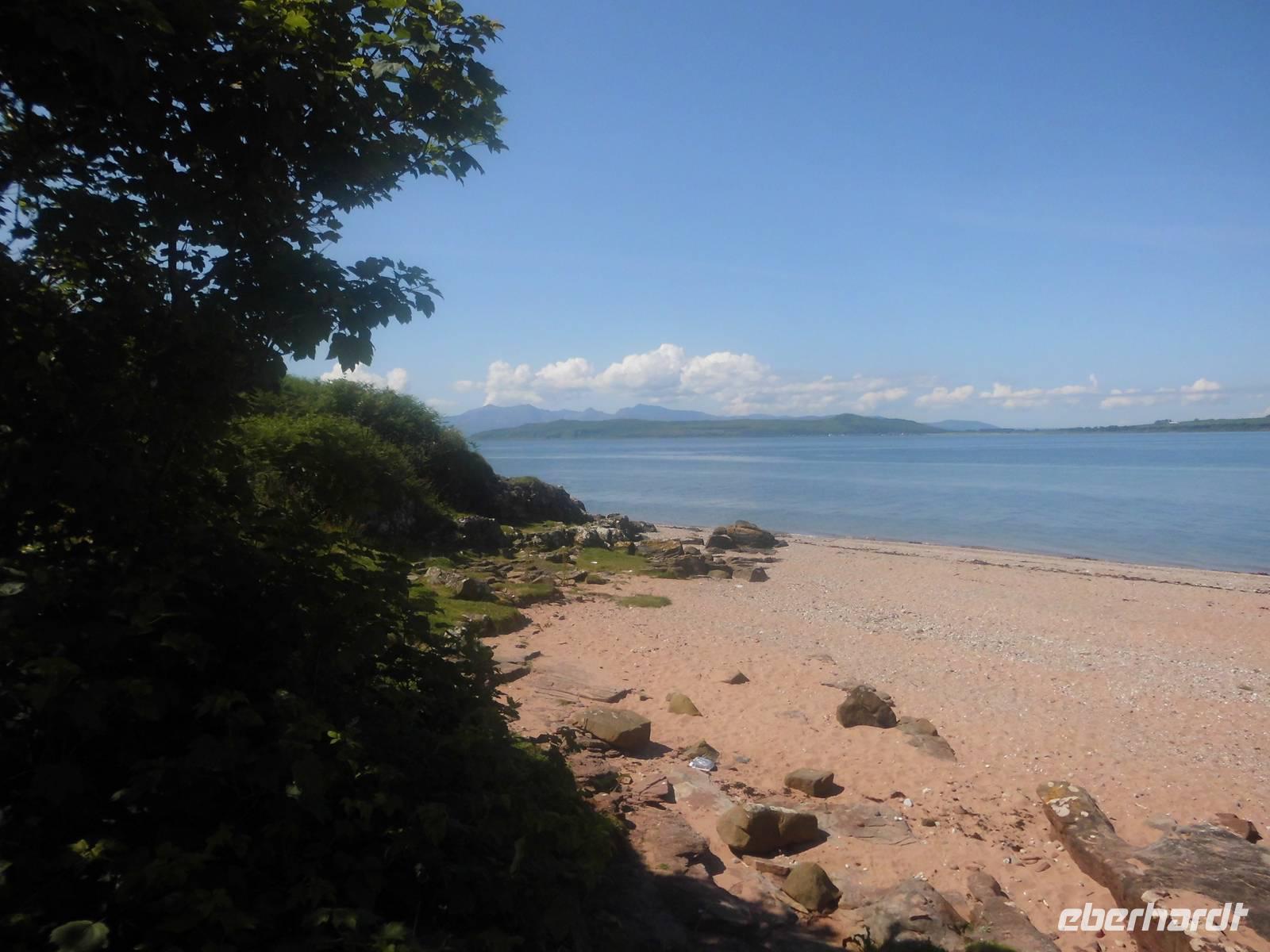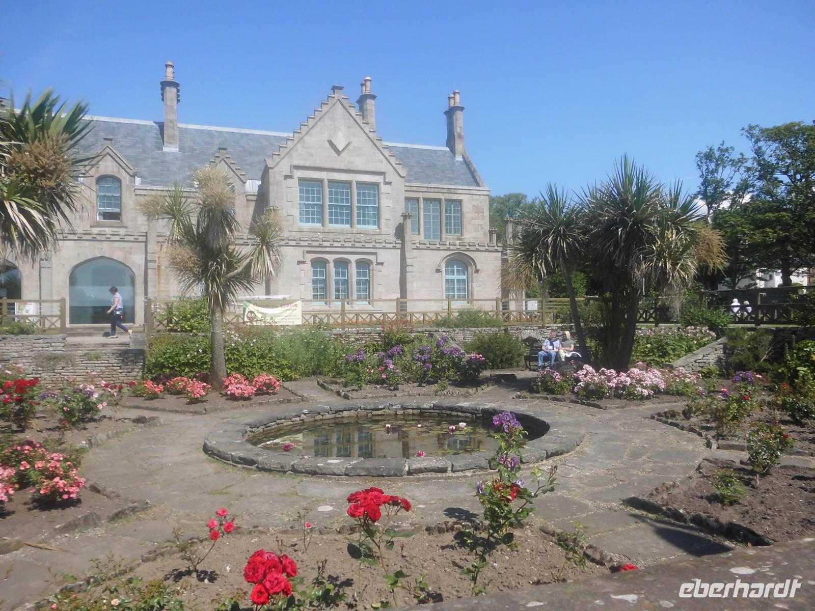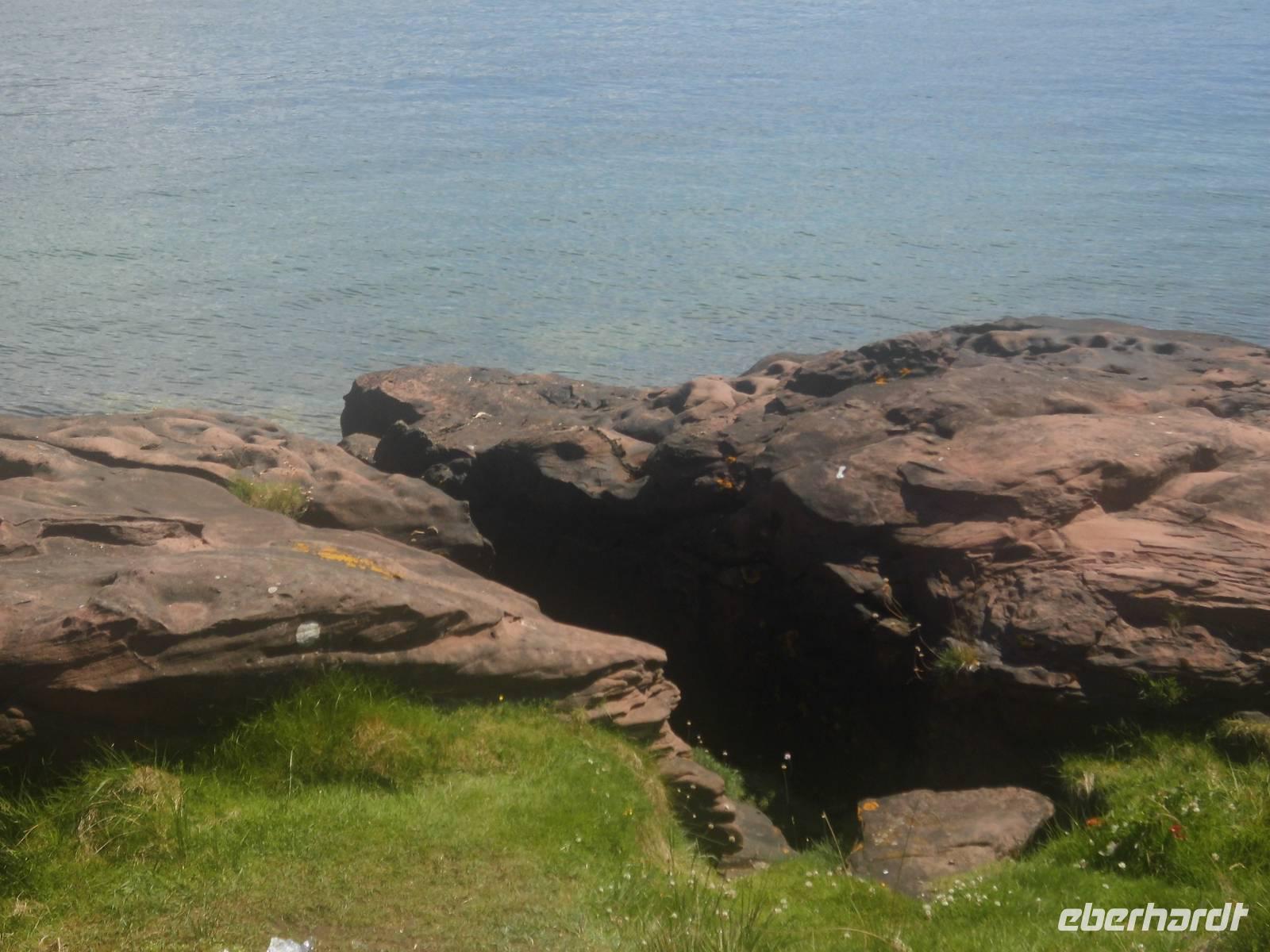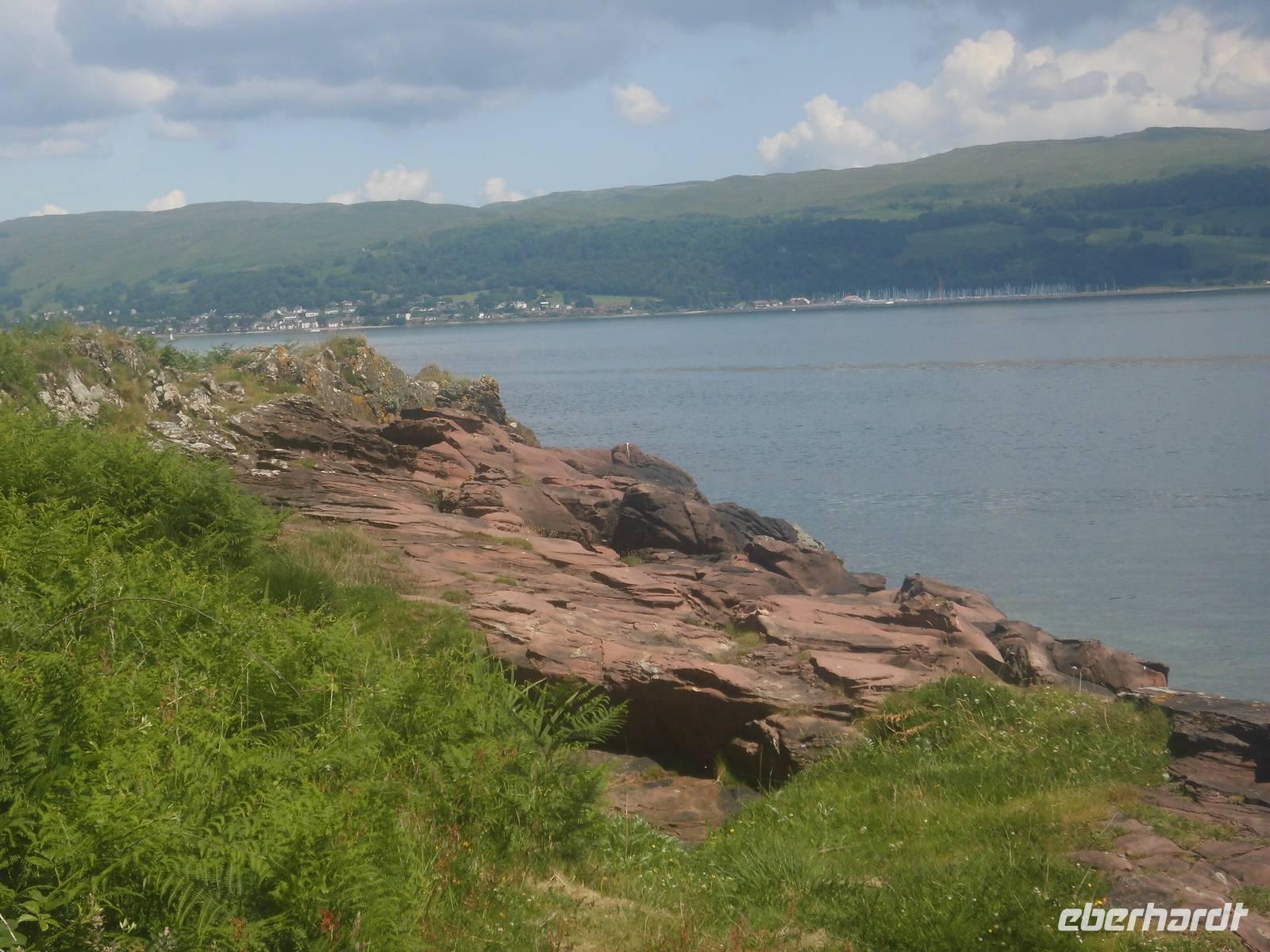 Nach diesem Intermezzo widmeten wir uns einer kleinen Insel, die sonst nicht im Interesse ausländischen Tourismus' oder in den Programmen nichtschottischer Veranstalter steht: Great Cumbrae Island liegt ein paar hundert Meter vor der Küste von Largs und ist ungemein malerisch. Zwar ist die die Insel umrundende Ringstraße insgesamt nur etwa 15 km lang, aber es gibt von hier grandiose Ausblicke auf das Meer, die Nachbarinsel Bute und schließlich auf Little Cumbrae und die Küste bei Largs. Interessante Felsformationen vervollständigten die Idylle, die wir bei traumhaftem Wetter genießen konnten. Aufenthalt und Mittagspause hatten wir schließlich im Hauptort Millport, in dem etwa vier Fünftel der etwa 2000 Inselbewohner leben. Hauptattraktionen sind hier ein viktorianisches Haus sowie die 1851 erbaute kleinste Kathedrale Europas, die „Cathedral oft the Isles".