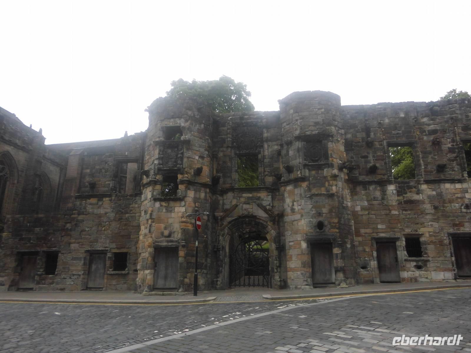 Leider war ein Teil der Altstadt - rings um den Palast von Holyroodhouse, einer der offiziellen königlichen Residenzen - wegen Besuchs der Königin gesperrt, die hier ihren berühmten Empfang zum Tee geben wollte. Damit konnten wir auch nur einen Teil der Royal Mile, der Innenstadtstraße, die sich längs durch Edinburghs Altstadt zieht, befahren. Auf 1600 m ver-bindet sie Holyroodhouse Palace, die frühere „kanonische Stadt" und Edinburgher mit der Burg Edinburgh Castle miteinander - genau eine englische Meile lang.