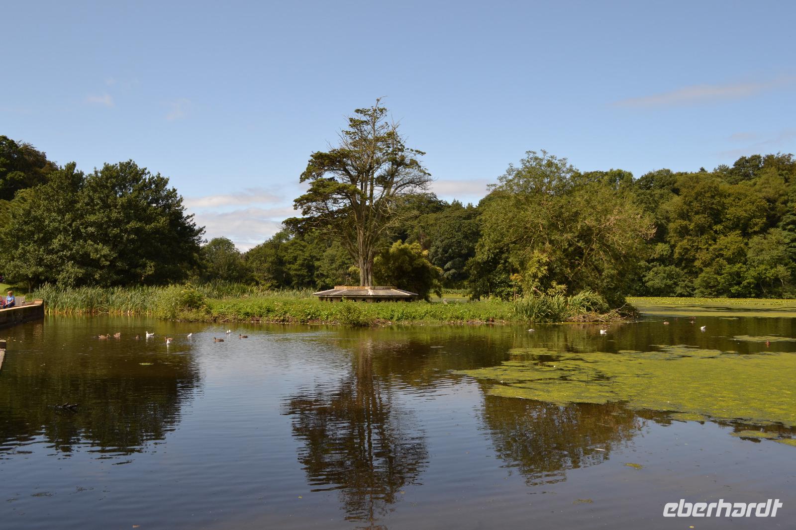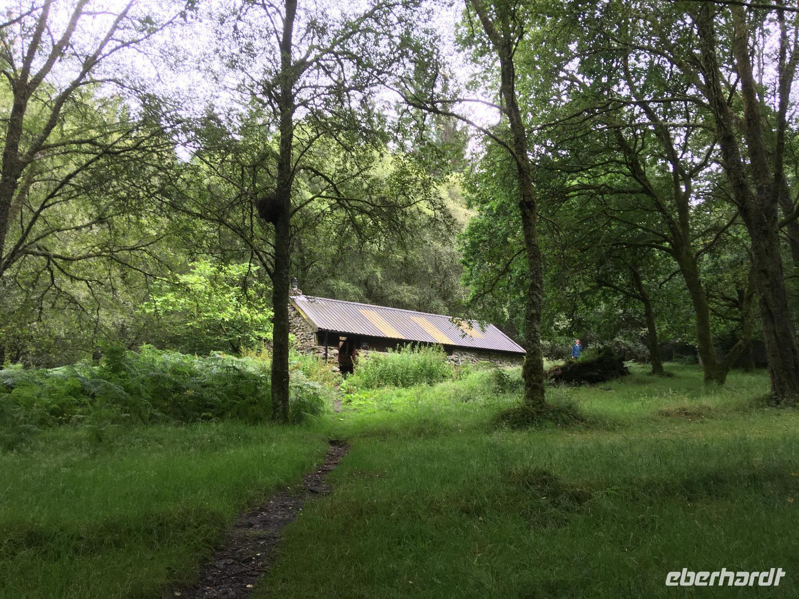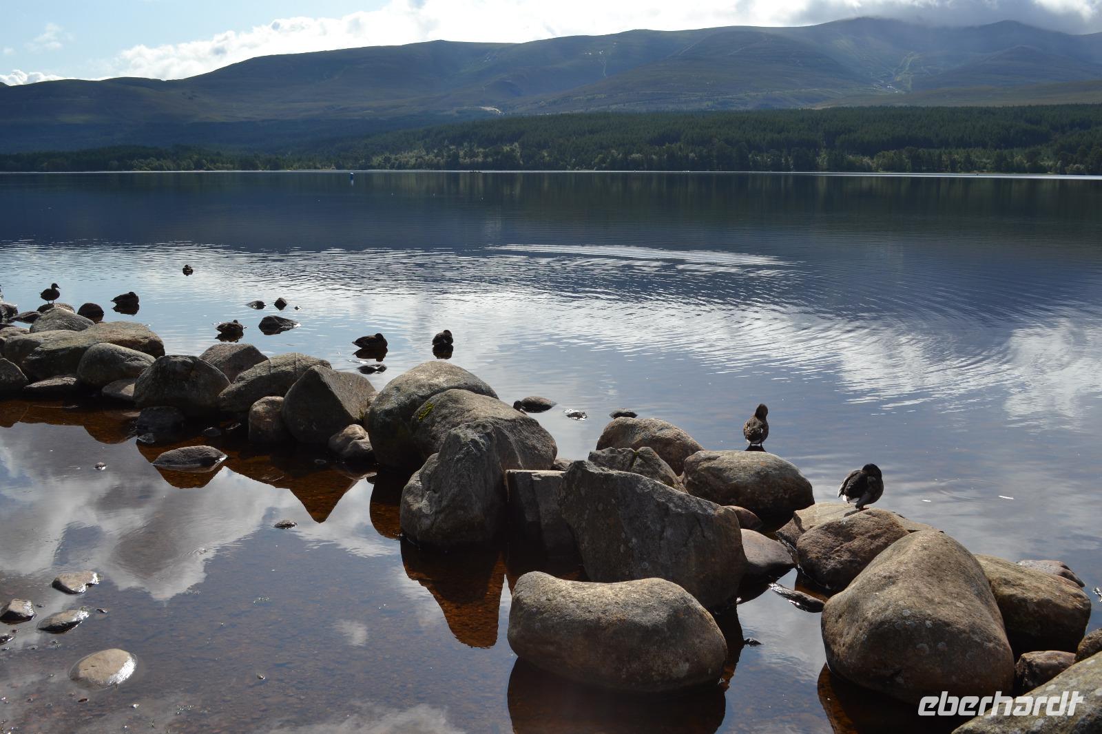 Vielleicht dämmert es meinen Gästen heute, dass sie sich auf eine echte Abenteuerreise eingelassen haben. Zumindest wird ihre Konstitution einem ersten Belastungstest unterzogen, denn die 12 Kilometer lange Wanderung auf dem West Highland Way, dem beliebtesten Fernwanderweg Schottlands, ist durchaus anspruchsvoll. Zeit haben wir aber genug für die Strecke, nachdem uns die Fähre am Inversnaid Hotel am Ostufer des Loch Lomond abgesetzt hat. Doch wir müssen auch vorsichtig sein, denn wir befinden uns in den Landen des Clans MacGregor, dessen berühmtester Vertreter, Rob Roy, ein berüchtigter Viehdieb und Gesetzloser war. Räuber lassen sich aber nicht blicken, während wir auf dem Weg in südlicher Richtung laufen, nur andere Wanderer, die freundlich grüßen und sich fast ausschließlich ebenfalls als Germanen entpuppen. In einer verlassenen Schutzhütte legen wir unsere Mittagspause ein und blättern neugierig im Gästebuch. Zwischendurch werden wir immer mal wieder von einem leichten Regen heimgesucht, aber nie wirklich nass. Die meiste Zeit über verläuft der Weg parallel zum Seeufer, streift mehrere kleine Wasserfälle, entführt uns gelegentlich in den Wald, nur um uns dann wieder neue Perspektiven auf den Loch Lomond und die umliegenden Hügel und Berge zu eröffnen. Wir liegen gut in der Zeit, als wir am Nachmittag die Jugendherberge in Rowardennan erreichen, von der wir später mit der Fähre wieder abgeholt werden. So können wir uns einen Abstecher in den örtlichen Pub gönnen, wo wir uns mit einem Kaffee, Bier oder Eis belohnen, und vor dem nun doch heftiger werdenen Regen in Sicherheit sind. Bei einer Tasse Kakao tuckern wir dann gemütlich über den flächenmäßig größten Süßwassersee Schottlands, der besonders im Süden mit vielen kleinen malerischen Inseln gesprenkelt ist. In Tarbet erwartet uns unser Fahrer Jim mit seinem blitzblank geputzten silbergrauen Bus und fährt uns sicher zurück nach Glasgow.