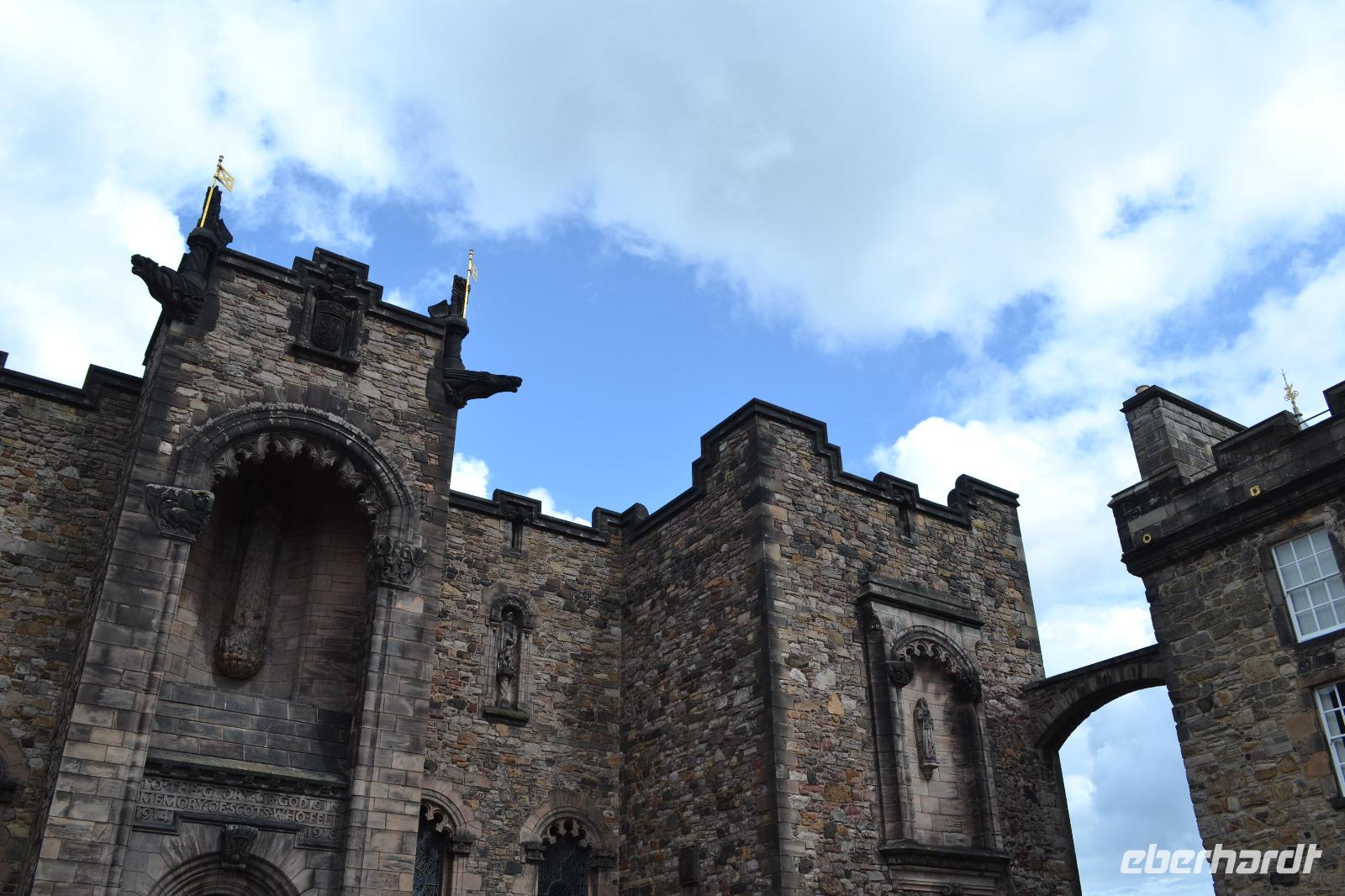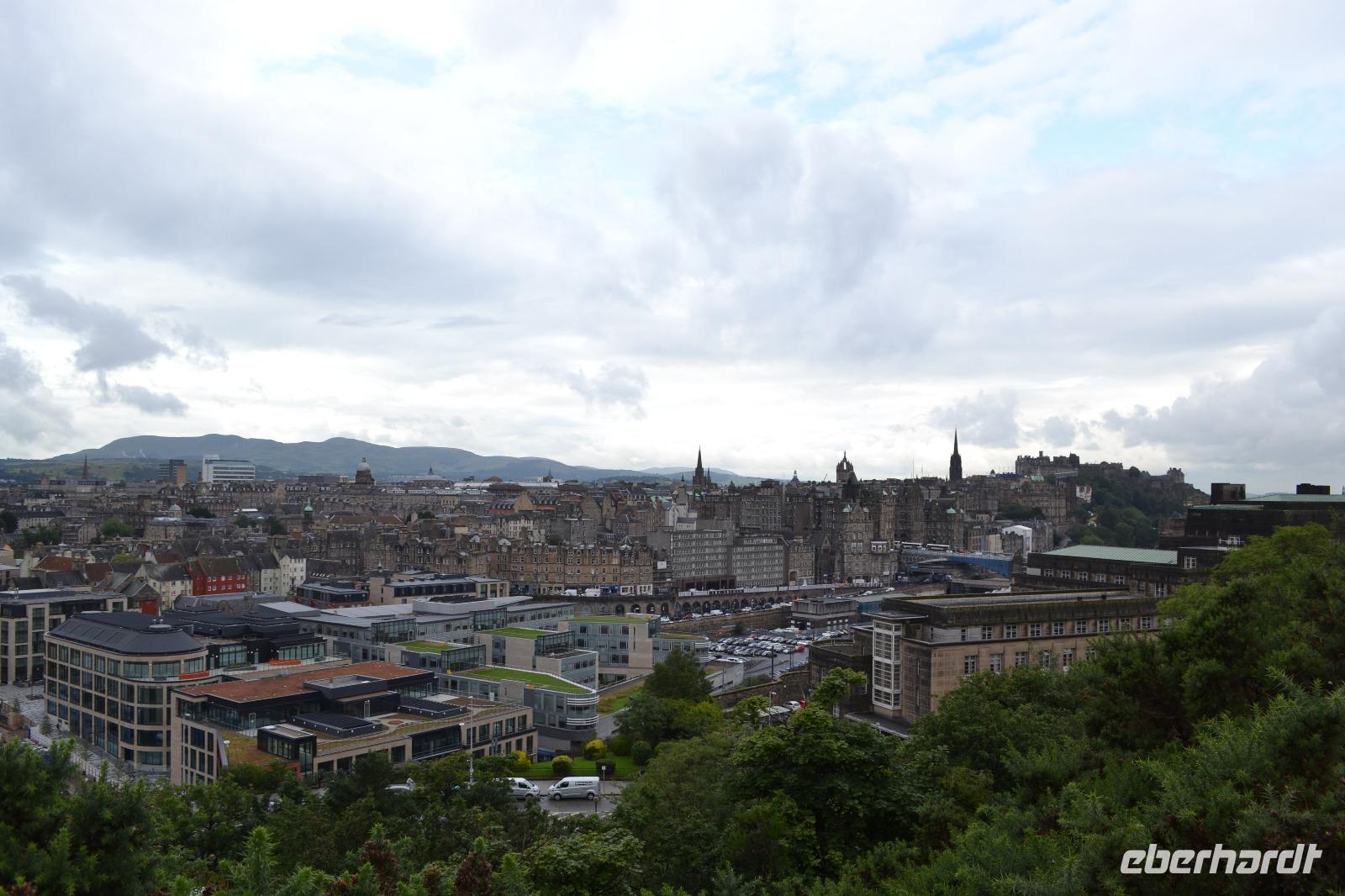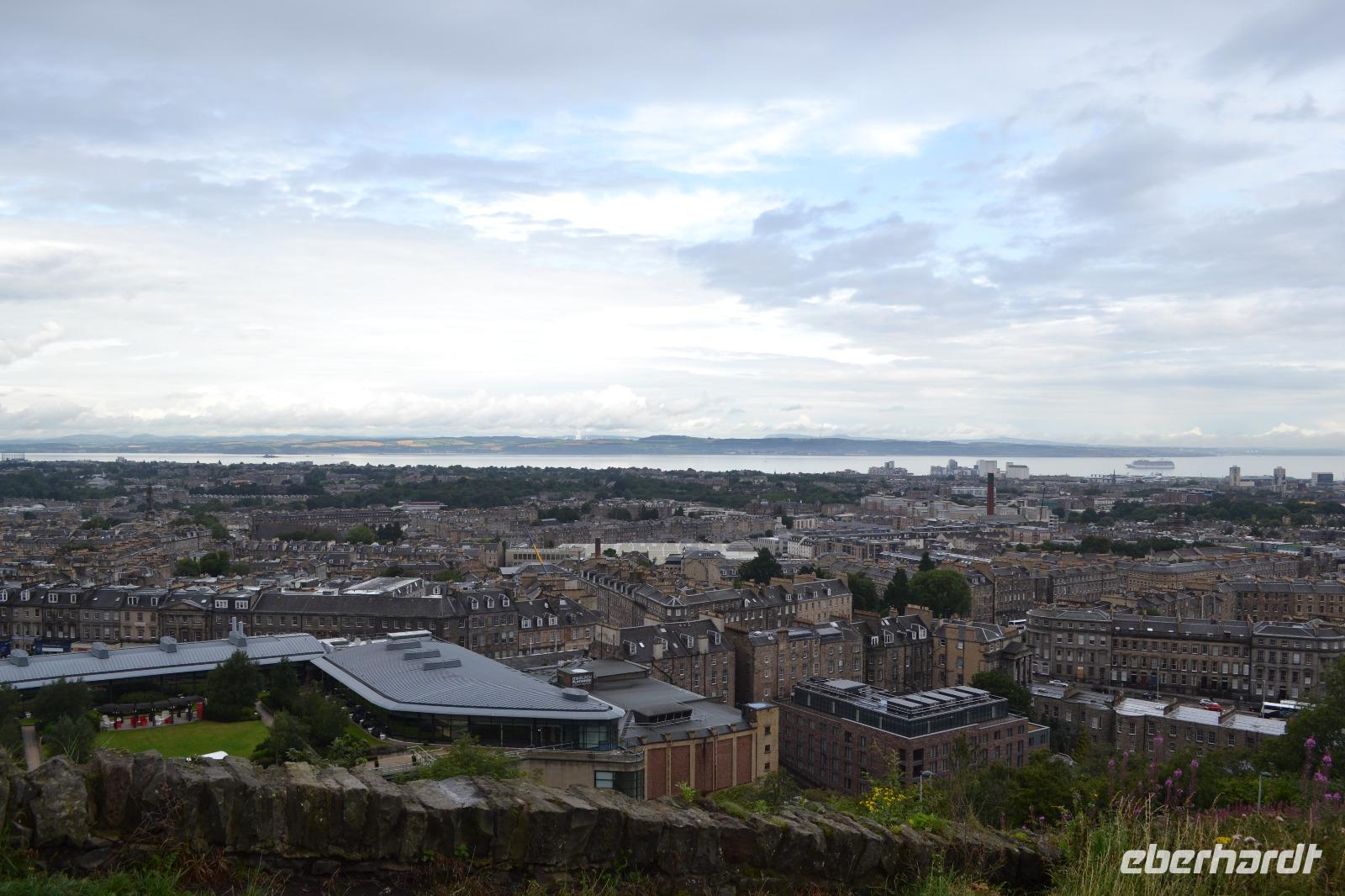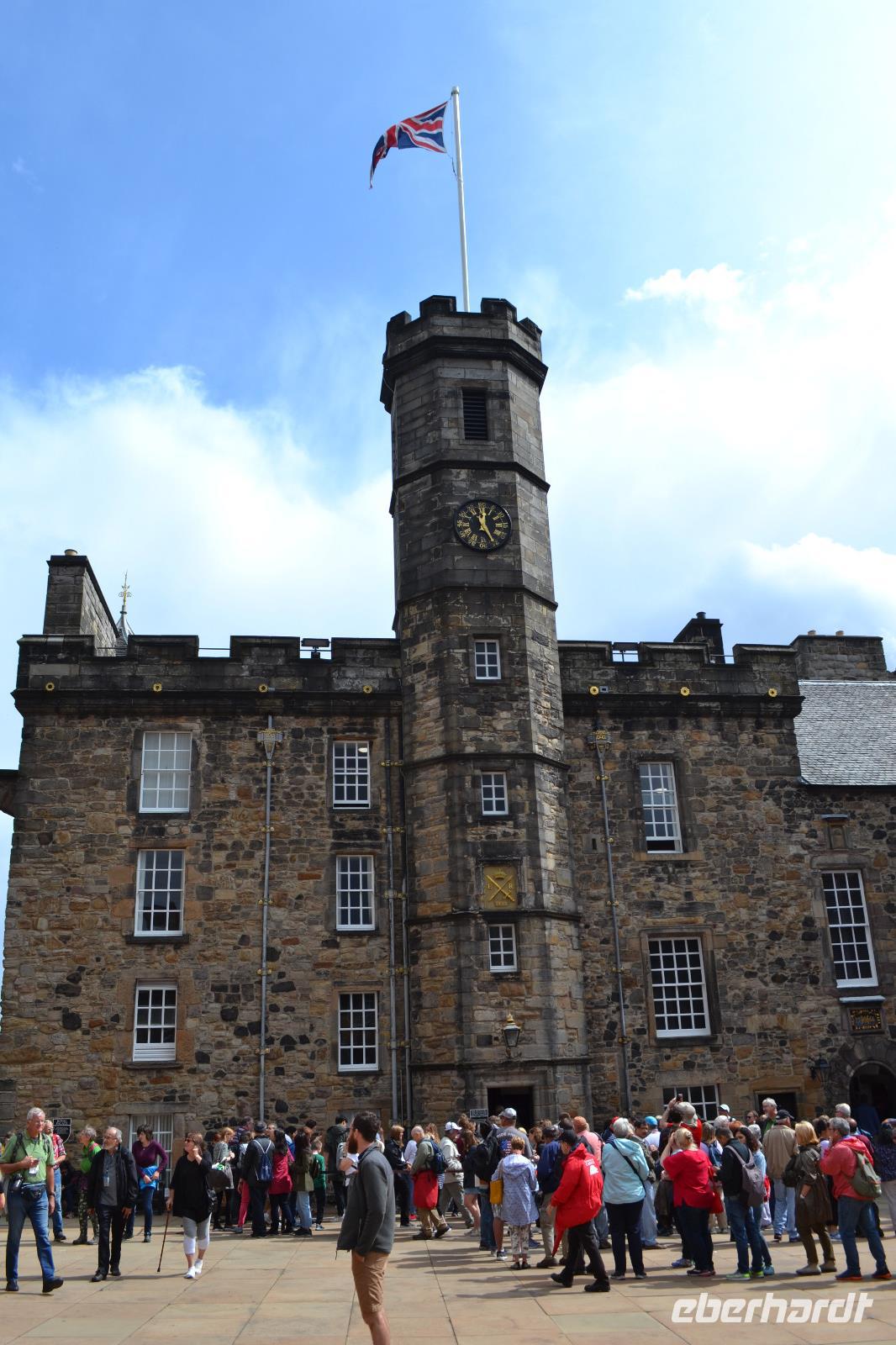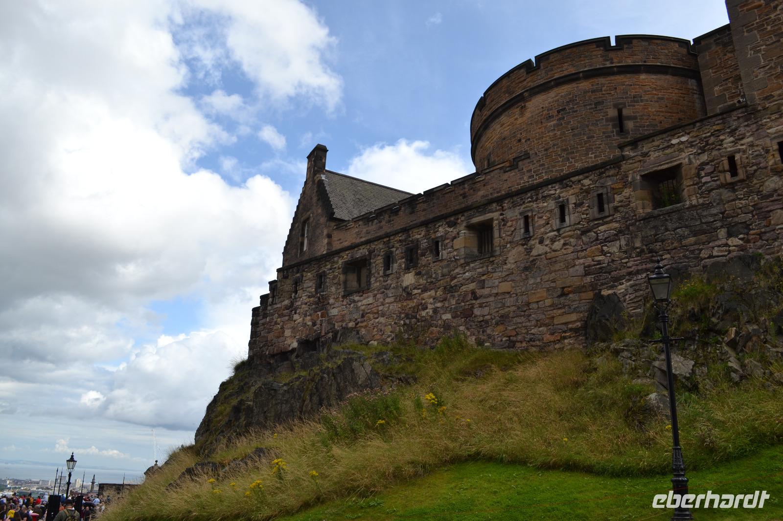 Nach dem gestrigen Abend können wir heute etwas länger schlafen. Erst um 09:30 Uhr wartet unsere Stadtführerin Marion auf uns. Sie möchte uns ihre Wahlheimat bestmöglich vorstellen, weshalb sie uns nach einer Fahrt durch die Neustadt auch auf den Calton Hill entführt, von dem aus wir einen fantastischen Blick auf die Altstadt mit dem Castle, die Neustadt, den Firth of Forth, den Holyrood Palace und den Arthur's Seat haben. So bekommen wir einen guten Eindruck vom Aufbau der Stadt. Anschließend fahren wir an der Residenz der Königin vorbei, schlängeln uns durch den Holyrood Park und biegen dann am Parlamentsgebäude vorbei auf die Royal Mile ab, bis wir die Stadtrundfahrt schließlich unterhalb des Edinburgh Castle beenden. Marion besorgt uns die Eintrittskarten und führt uns dann auf den Burgberg, wo sie uns nach einer Kurzfassung der Geschichte noch die wichtigsten Gebäude und Sehenswürdigkeiten erklärt, bevor sie sich planmäßig gegen Mittag von uns verabschiedet. Meine Gäste dürfen nun alleine losziehen und sich in Castle, Altstadt und Neustadt austoben. Schwer wiegt meine Enttäuschung, als sich nach und nach alle von der für den Nachmittag geplanten Wanderung auf den Arthur's Seat ausklinken. Ein bisschen kann ich aber verstehen, dass sie die Zeit nutzen und lieber weiter Edinburgh erkunden wollen, denn es gibt viel zu sehen und zur Hauptsaison (neben dem Military Tattoo findet parallel im August das Edinburgh Festival statt) ist jede Menge los. Wir treffen uns daher erst am Abend vor dem Hotel wieder, um gemeinsam zu dem hübschen kleinen Pub zu spazieren, in dem wir unser Abendessen einnehmen.