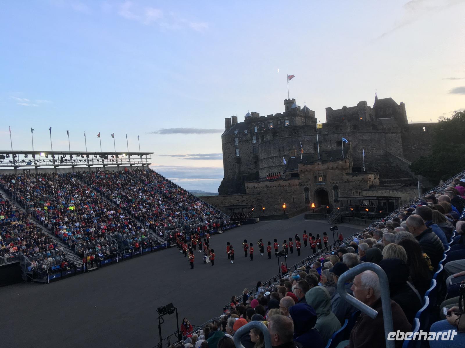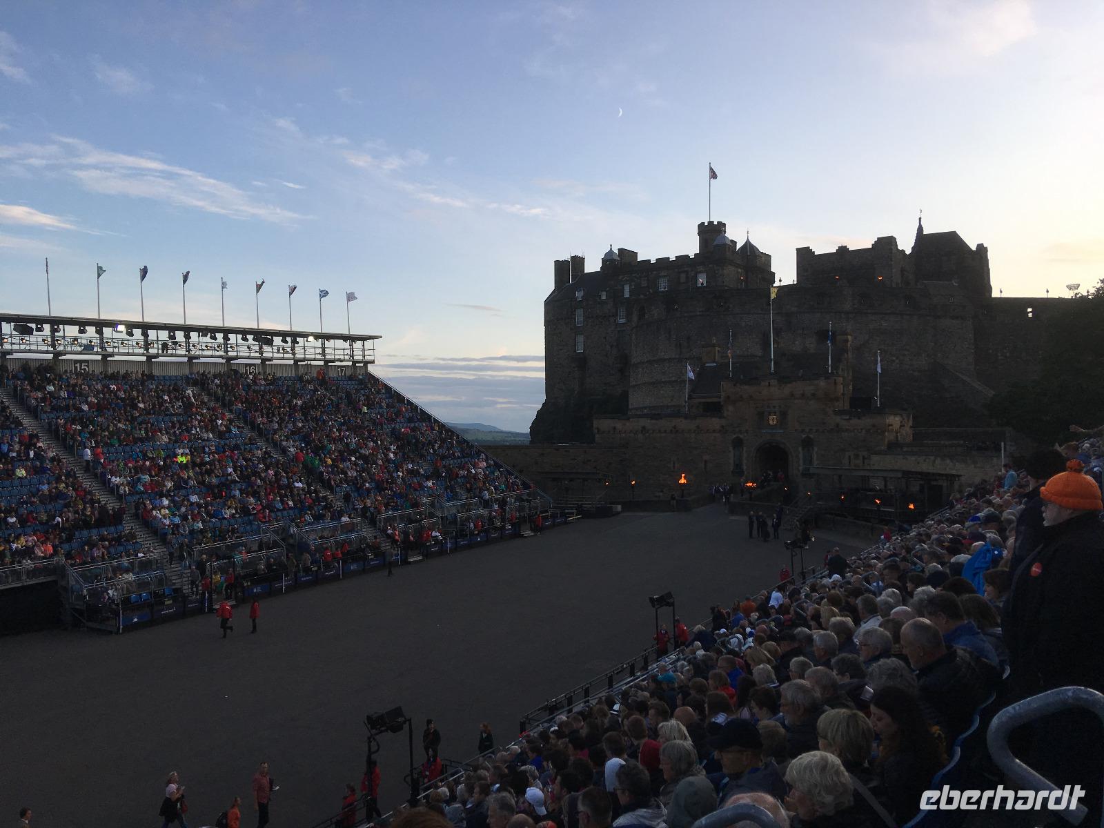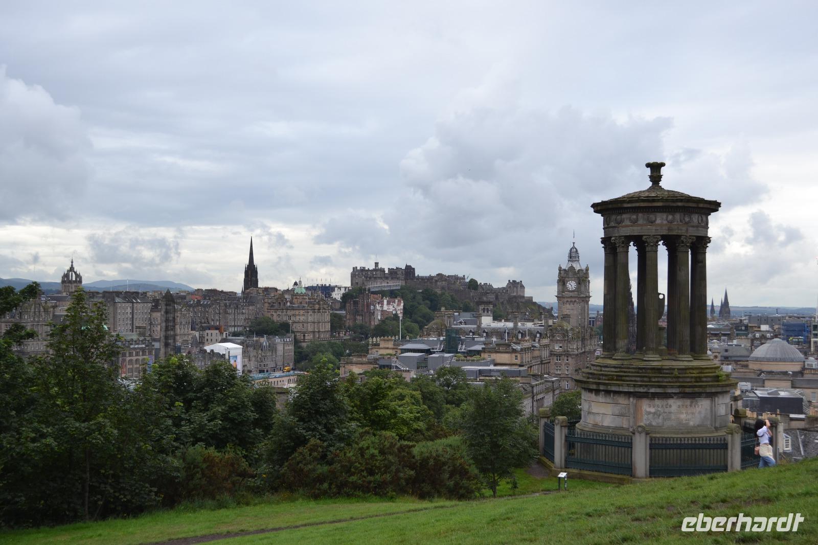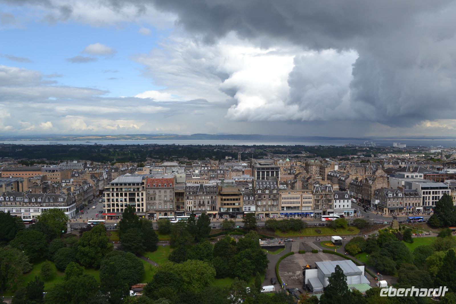 Nach dem gestrigen Abend können wir heute etwas länger schlafen. Erst um 09:30 Uhr wartet unsere Stadtführerin Marion auf uns. Sie möchte uns ihre Wahlheimat bestmöglich vorstellen, weshalb sie uns nach einer Fahrt durch die Neustadt auch auf den Calton Hill entführt, von dem aus wir einen fantastischen Blick auf die Altstadt mit dem Castle, die Neustadt, den Firth of Forth, den Holyrood Palace und den Arthur's Seat haben. So bekommen wir einen guten Eindruck vom Aufbau der Stadt. Anschließend fahren wir an der Residenz der Königin vorbei, schlängeln uns durch den Holyrood Park und biegen dann am Parlamentsgebäude vorbei auf die Royal Mile ab, bis wir die Stadtrundfahrt schließlich unterhalb des Edinburgh Castle beenden. Marion besorgt uns die Eintrittskarten und führt uns dann auf den Burgberg, wo sie uns nach einer Kurzfassung der Geschichte noch die wichtigsten Gebäude und Sehenswürdigkeiten erklärt, bevor sie sich planmäßig gegen Mittag von uns verabschiedet. Meine Gäste dürfen nun alleine losziehen und sich in Castle, Altstadt und Neustadt austoben. Schwer wiegt meine Enttäuschung, als sich nach und nach alle von der für den Nachmittag geplanten Wanderung auf den Arthur's Seat ausklinken. Ein bisschen kann ich aber verstehen, dass sie die Zeit nutzen und lieber weiter Edinburgh erkunden wollen, denn es gibt viel zu sehen und zur Hauptsaison (neben dem Military Tattoo findet parallel im August das Edinburgh Festival statt) ist jede Menge los. Wir treffen uns daher erst am Abend vor dem Hotel wieder, um gemeinsam zu dem hübschen kleinen Pub zu spazieren, in dem wir unser Abendessen einnehmen.
