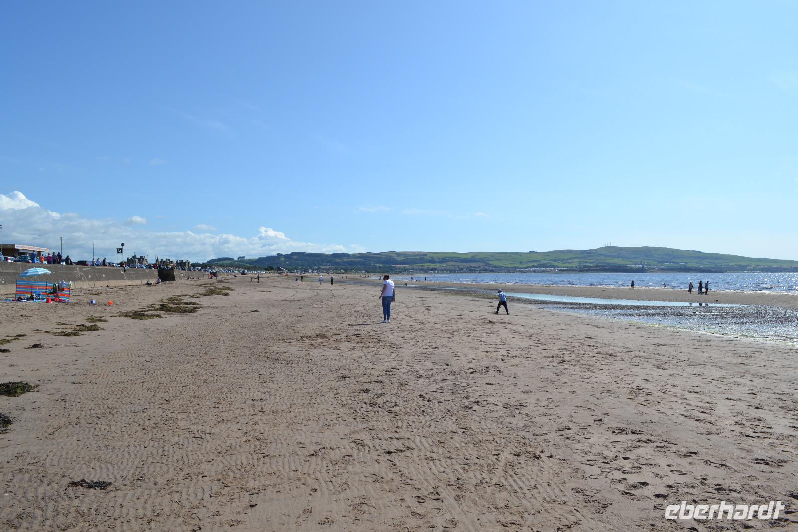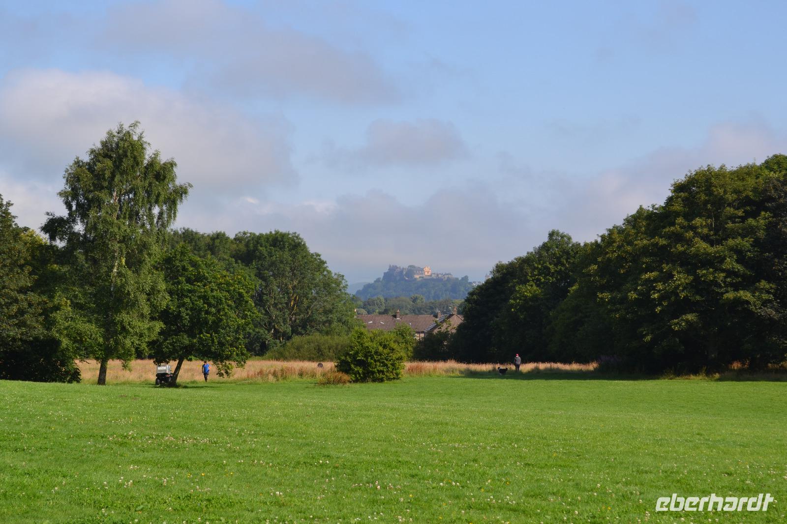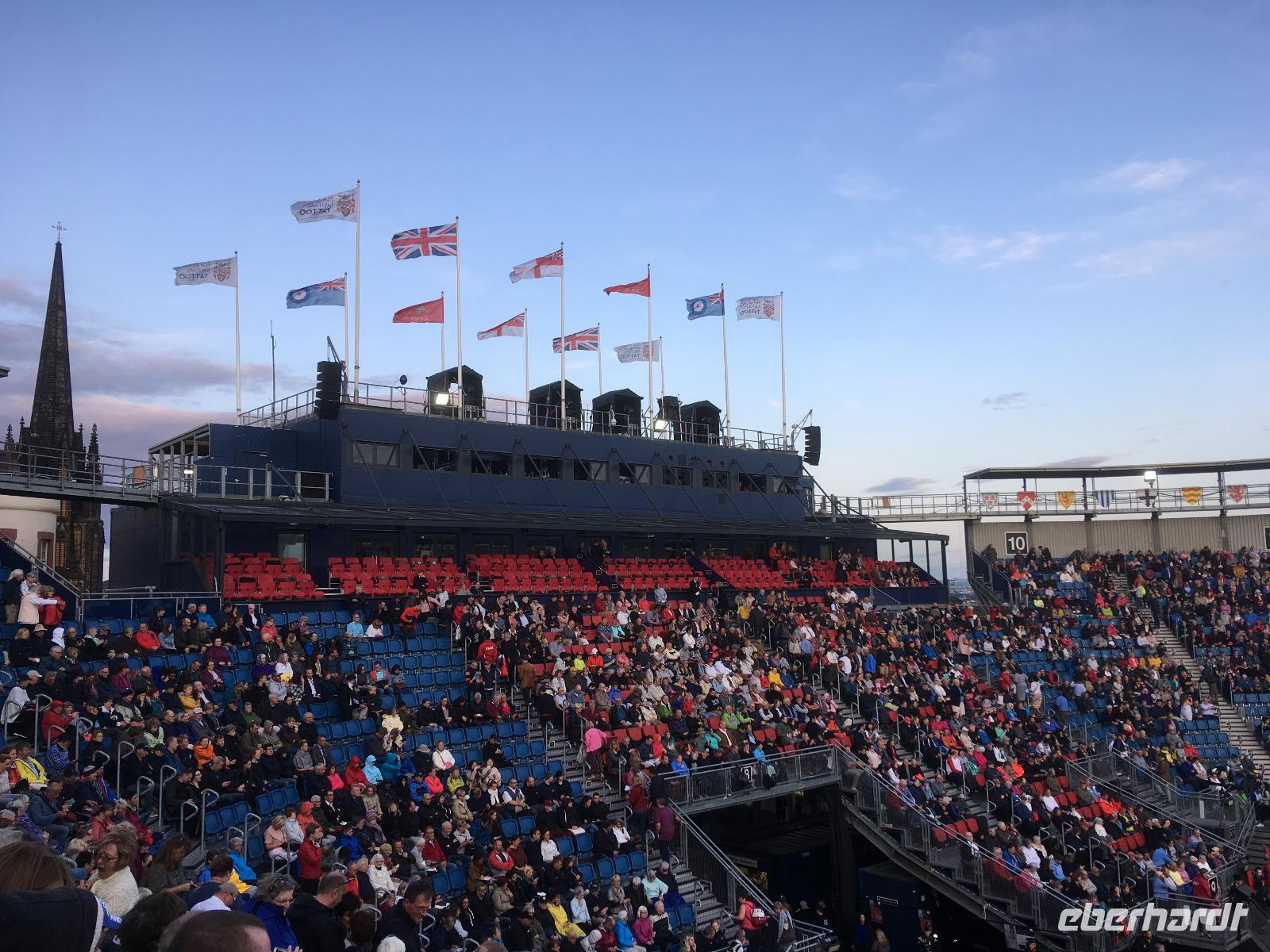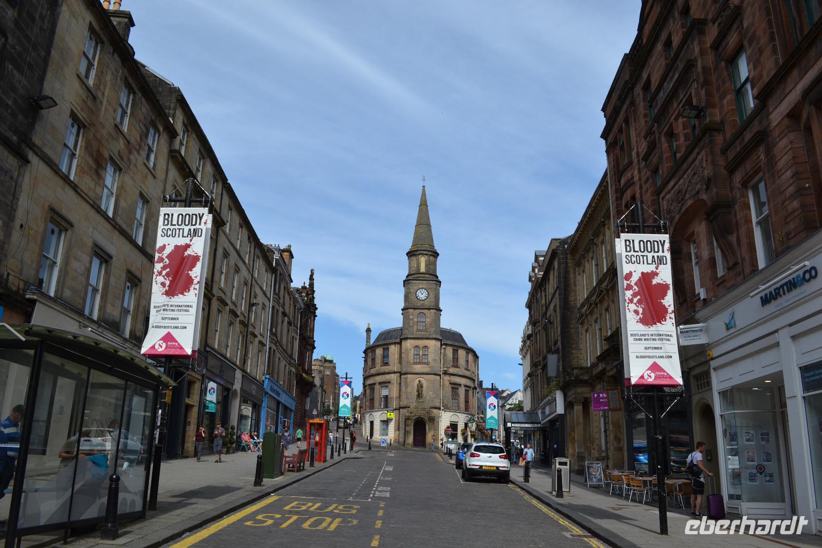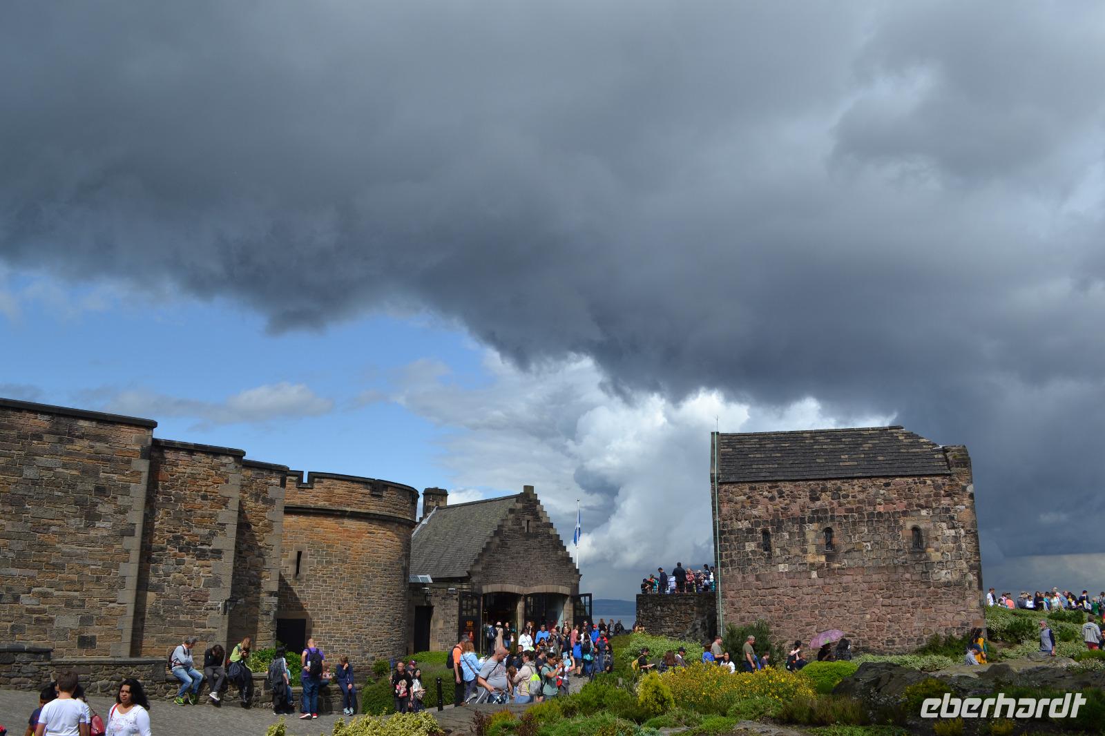 Nach dem gestrigen Abend können wir heute etwas länger schlafen. Erst um 09:30 Uhr wartet unsere Stadtführerin Marion auf uns. Sie möchte uns ihre Wahlheimat bestmöglich vorstellen, weshalb sie uns nach einer Fahrt durch die Neustadt auch auf den Calton Hill entführt, von dem aus wir einen fantastischen Blick auf die Altstadt mit dem Castle, die Neustadt, den Firth of Forth, den Holyrood Palace und den Arthur's Seat haben. So bekommen wir einen guten Eindruck vom Aufbau der Stadt. Anschließend fahren wir an der Residenz der Königin vorbei, schlängeln uns durch den Holyrood Park und biegen dann am Parlamentsgebäude vorbei auf die Royal Mile ab, bis wir die Stadtrundfahrt schließlich unterhalb des Edinburgh Castle beenden. Marion besorgt uns die Eintrittskarten und führt uns dann auf den Burgberg, wo sie uns nach einer Kurzfassung der Geschichte noch die wichtigsten Gebäude und Sehenswürdigkeiten erklärt, bevor sie sich planmäßig gegen Mittag von uns verabschiedet. Meine Gäste dürfen nun alleine losziehen und sich in Castle, Altstadt und Neustadt austoben. Schwer wiegt meine Enttäuschung, als sich nach und nach alle von der für den Nachmittag geplanten Wanderung auf den Arthur's Seat ausklinken. Ein bisschen kann ich aber verstehen, dass sie die Zeit nutzen und lieber weiter Edinburgh erkunden wollen, denn es gibt viel zu sehen und zur Hauptsaison (neben dem Military Tattoo findet parallel im August das Edinburgh Festival statt) ist jede Menge los. Wir treffen uns daher erst am Abend vor dem Hotel wieder, um gemeinsam zu dem hübschen kleinen Pub zu spazieren, in dem wir unser Abendessen einnehmen.