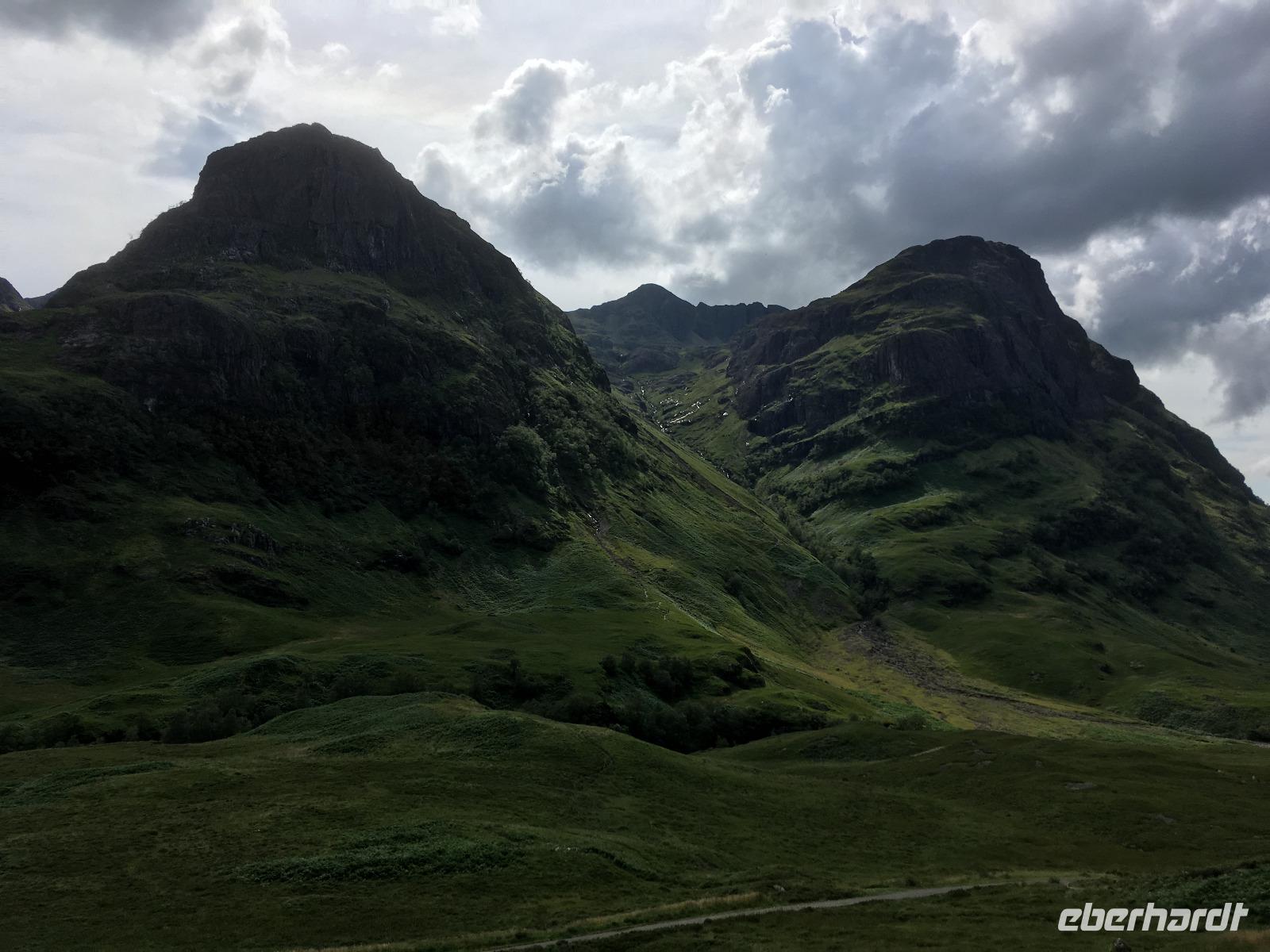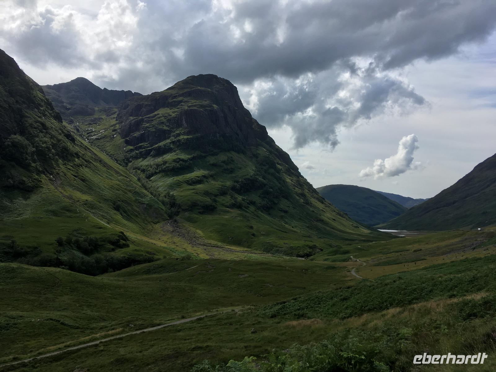 Am heutigen dritten Tag verlassen wir Glasgow und nehmen Kurs auf das heimliche Herz Schottlands, die Region um Stirling. Hier wurden zwei wichtige Schlachten um die Zukunft und Unabhängigkeit Schottlands geschlagen, hier lehrten zwei schottische Nationalhelden die Engländer das Fürchten: William Wallace und Robert the Bruce. Während ersterer in der Battle of Stirling Bridge einen Überraschungserfolg landete, später jedoch vernichtend geschlagen, verraten und grausam hingerichtet wurde, gelang es Robert the Bruce einige Jahre später in der Battle of Bannockburn die Vorherrschaft der Engländer in Schottland endgültig zu brechen und die Weichen für ein unabhängiges Königreich zu stellen. Bei unserer Ankunft beginnt sich der Nebel auf dem ehemaligen Schlachtfeld zu lichten und gibt den Blick auf das Reiterdenkmal zu Ehren des schottischen Königs frei. In der Ferne wird das Stirling Castle auf seinem Vulkansockel thronend von der Morgensonne angestrahlt. Wir lassen uns zurückversetzen in eine Zeit voller Verrat, Intrigen und wechselnder Allianzen, in der den Adligen das eigene Wohl, der eigene Aufstieg stets mehr galt als das Wohl des Volkes. Vom Parkplatz vor dem Stirling Castle aus erkunden wir dann zur Mittagszeit die geschichtsträchtigen Gassen der Altstadt und decken uns mit ein bisschen Proviant ein. Am Nachmittag erreichen wir über das geheimnisvolle Glen Coe, Schauplatz eines der blutigsten Massaker auf den Britischen Inseln, die Highlands. Schroffe schwarze Felsen türmen sich um uns herum auf und glitzern im Licht der Sonne zwischen den gras- und moosbewachsenen grünen Hängen. Unterhalb des höchsten Berges in Schottland, dem Ben Nevis, unternehmen wir zum Abschluss des Tagesprogramms bei schönstem Wetter eine kleine Wanderung, während der wir auch einen Blick auf den ausnahmsweise nicht von Wolken umhüllten Gipfel werfen können. In unserem neuen Hotel etwas südlich von Fort William genießen wir zudem ein sehr leckeres Abendessen.