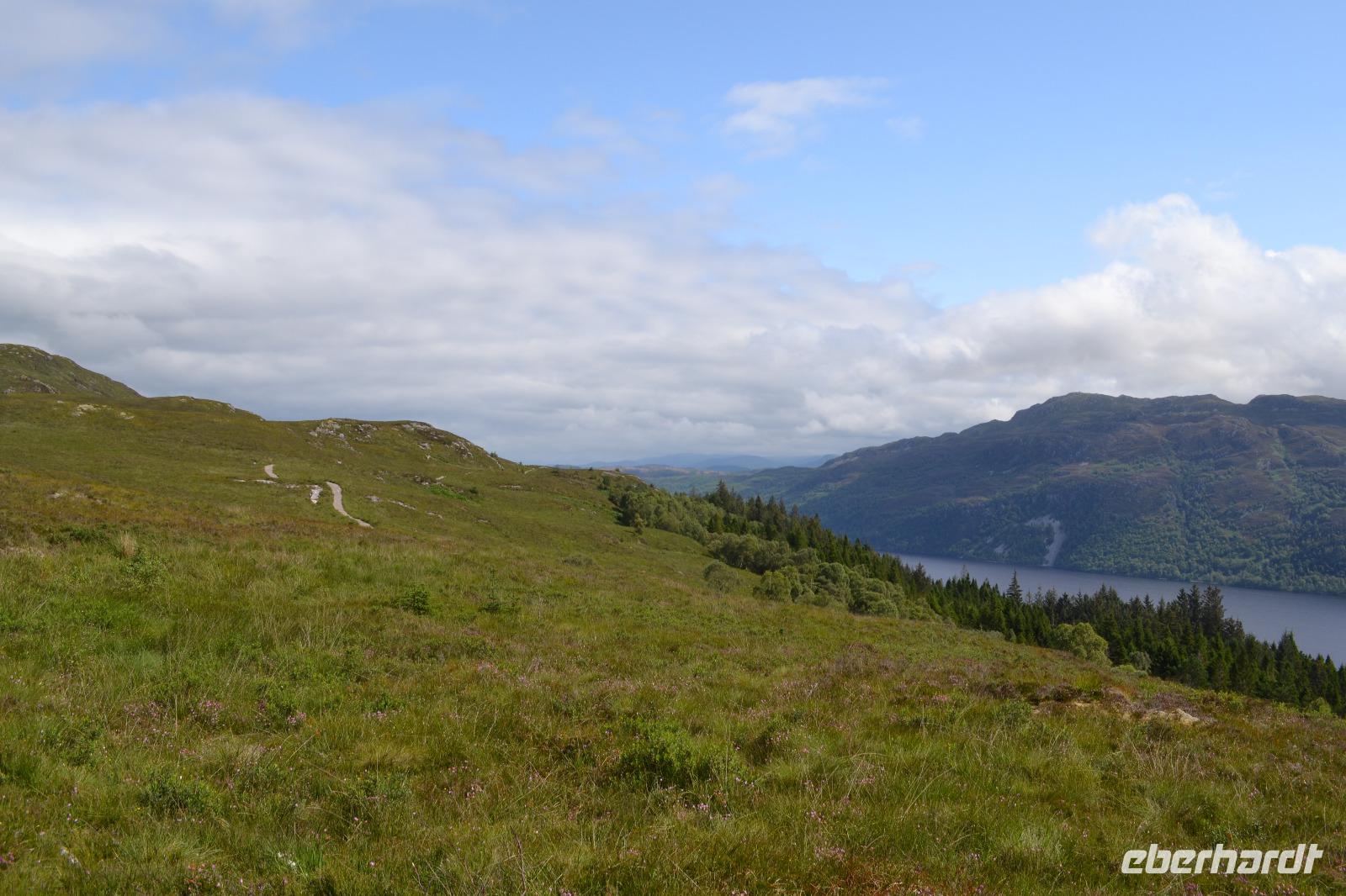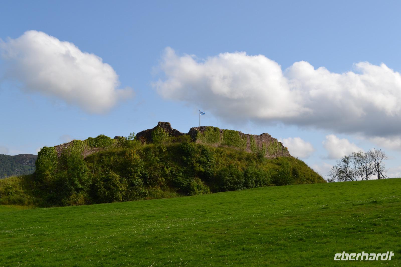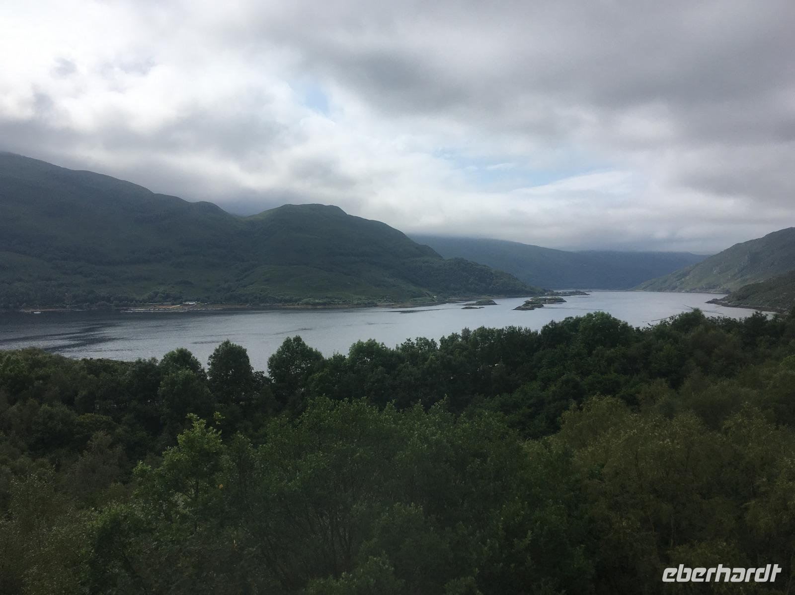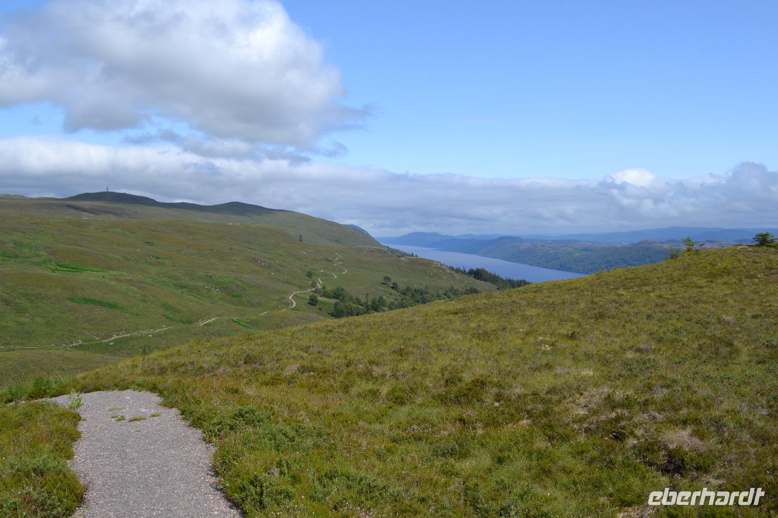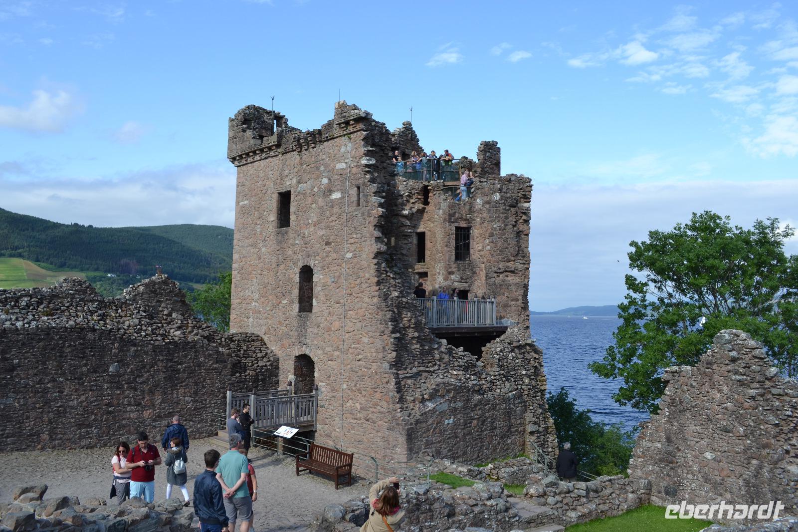 Auf unserer Reise nähern wir uns heute immer mehr der Hauptstadt der Highlands, Inverness. Theoretisch könnten wir auch das Boot nehmen, um den Great Glen zu durchqueren, denn Fort William und Inverness sind seit 1822 durch den Caledonian Canal verbunden. Den Beginn des Kanals markiert die Schleusentreppe Neptune's Staircase mit acht Schleusen. Bei einem Fotostopp beobachten wir, wie eine Familie mit Kind und Hund ihr kleines Segelboot nach und nach durch die einzelnen Kammern schleust. Der ganze Prozess dauert 90 Minuten. So viel Zeit haben wir dann aber doch nicht eingeplant, denn wir wollen lieber wieder wandern und die tolle Landschaft genießen! Die Gelegenheit dafür bietet sich uns auf der Wanderung von Fort Augustus bis nach Invermoriston auf einem Teilabschnitt des Great Glen Way. Nachdem wir uns im hübschen kleinen Örtchen am Westende des Loch Ness, in dessen Mitte sich ebenfalls eine Schleusentreppe befindet, etwas umgesehen und die nötigen Besorgungen erledigt haben, brechen wir auf und entscheiden uns dann am Abzweig nach einer kurzen Beratung für den oberen Weg, der zwar dank des Aufstiegs etwas beschwerlicher ist, uns aber dafür mit einer traumhaften Aussicht über Fort Augustus, den Great Glen und den gesamten Loch Ness entschädigt. Das Wetter spielt auch mit; sogar die Sonnencreme muss heute zum Einsatz kommen! Paul und Bus warten in Invermoriston auf uns und ganz geschwind geht es dann weiter zum Urquhart Castle. Nachdem sich der Vorhang nach der einleitenden Videopräsentation geöffnet hat, dürfen wir die Ruine der einst stolzen Burg erkunden und am Ufer des Loch Ness nach Nessie Ausschau halten. Doch das scheue Monster lässt sich leider nicht blicken. Wäre ja auch zu schön gewesen. Bis nach Inverness sind es nun nur noch 40 Minuten mit dem Bus. Nach dem Abendessen im Royal Highland Hotel (dessen majestätische Lobby sehr beeindruckend ist) biete ich meinen Gästen noch einen Abendspaziergang zum Inverness Castle und entlang des River Ness an. Auf dem Rückweg stolpern wir sogar über eine Veranstaltung mit Livemusik und Tanz vor dem Theater, bei der wir eine Weile zuschauen, bevor wir dann doch erschöpft aber glücklich in unsere Hotelbetten fallen.