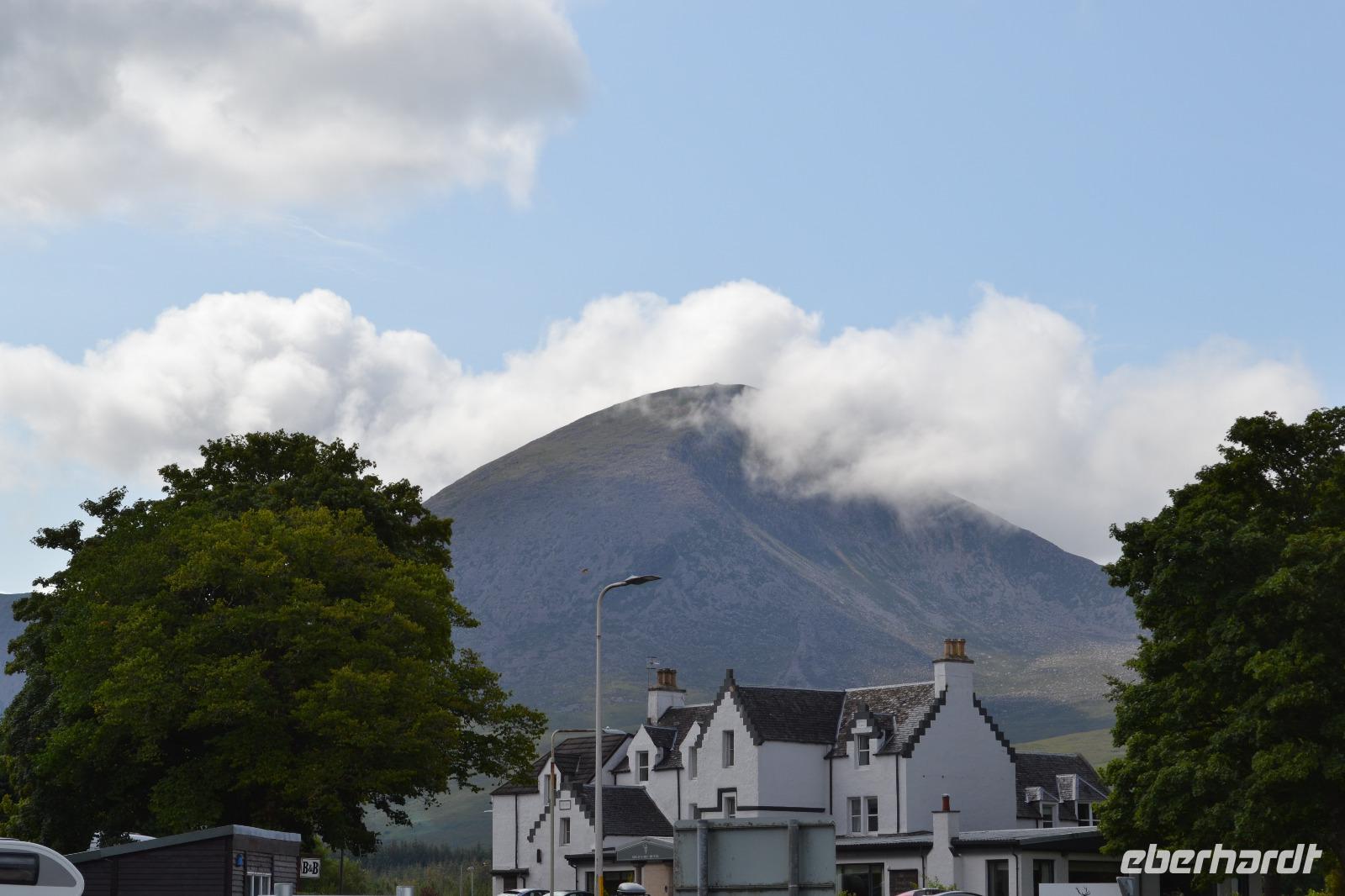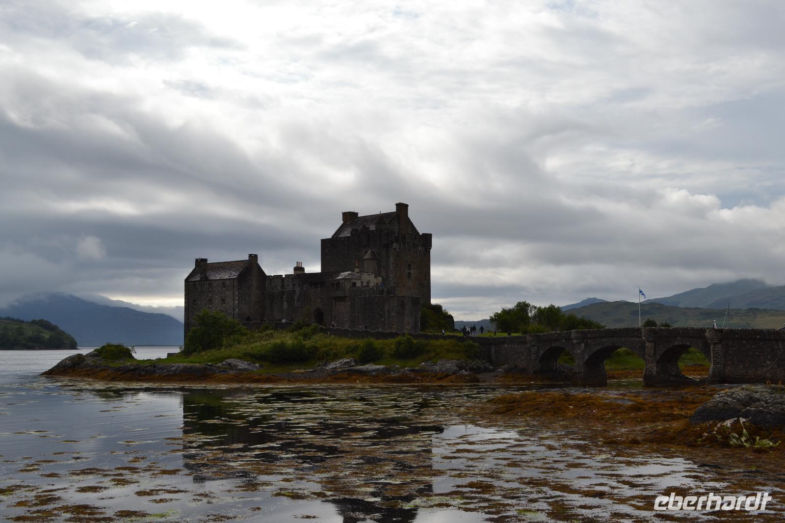 Alle Harry-Potter-Fans kommen am Vormittag voll auf ihre Kosten, denn wir fahren mit dem Jacobite Steam Train von Fort William nach Mallaig. Der Zug ist Filmenthusiasten wohl besser bekannt als Hogwarts Express. Unterwegs fahren wir entlang der Küste, durch einige Tunnel, vorbei an malerisch gelegenen Lochs und auch über das berühmte Glenfinnan Viaduct. In Mallaig erwarten uns dann sowohl unser neuer Busfahrer Paul mit dem Bus als auch die Fähre auf die Isle of Skye. Die Insel gilt unter Wanderern und Kletterern als landschaftlich besonders reizvoll. Im Örtchen Armadale auf der größten Insel der Inneren Hebriden residierten aber auch die Herrscher des Clans MacDonald, die Lords of the Isles, die die anderen Highland Clans lange Zeit terrorisierten. Auch der Clan Macrae kann davon ein Liedchen singen, denn sein Stammsitz ist das Eilean Donan Castle, das sich - heute über eine Brücke erreichbar - zwar auf dem schottischen "Festland", aber nicht weit von der Isle of Skye entfernt befindet. Noch heute rühmt sich der Clan damit, die MacDonalds bei einem Überfall mit nur drei Verteidigern erfolgreich in die Flucht geschlagen zu haben. Die in den 1920er Jahren originalgetreu rekonstruierte Burg ist eines der bekanntesten Wahrzeichen Schottlands und diente in vielen Filmen als Kulisse. Hatten wir bis jetzt großes Glück mit dem Wetter, so holt uns nun doch der angekündigte Regen ein. Wie gut, dass wir uns mit Audio Guides bewaffnet in das Castle flüchten können. Der Wohnturm beeindruckt uns mit seinen dicken Mauern, der großen Halle, verborgenen Geheimgängen und einer großen Küche, in denen mit sehr authentisch wirkenden Puppen das geschäftige Treiben der Vergangenheit nachgestellt ist. Als Besucher sollen wir drei kleine Mäuse finden, die in der Küche und in der Vorratskammer versteckt sind. Auf der Rückfahrt zum Hotel genießen wir die Aussicht auf die wunderschönen Highlands und freuen uns auf das Abendessen.