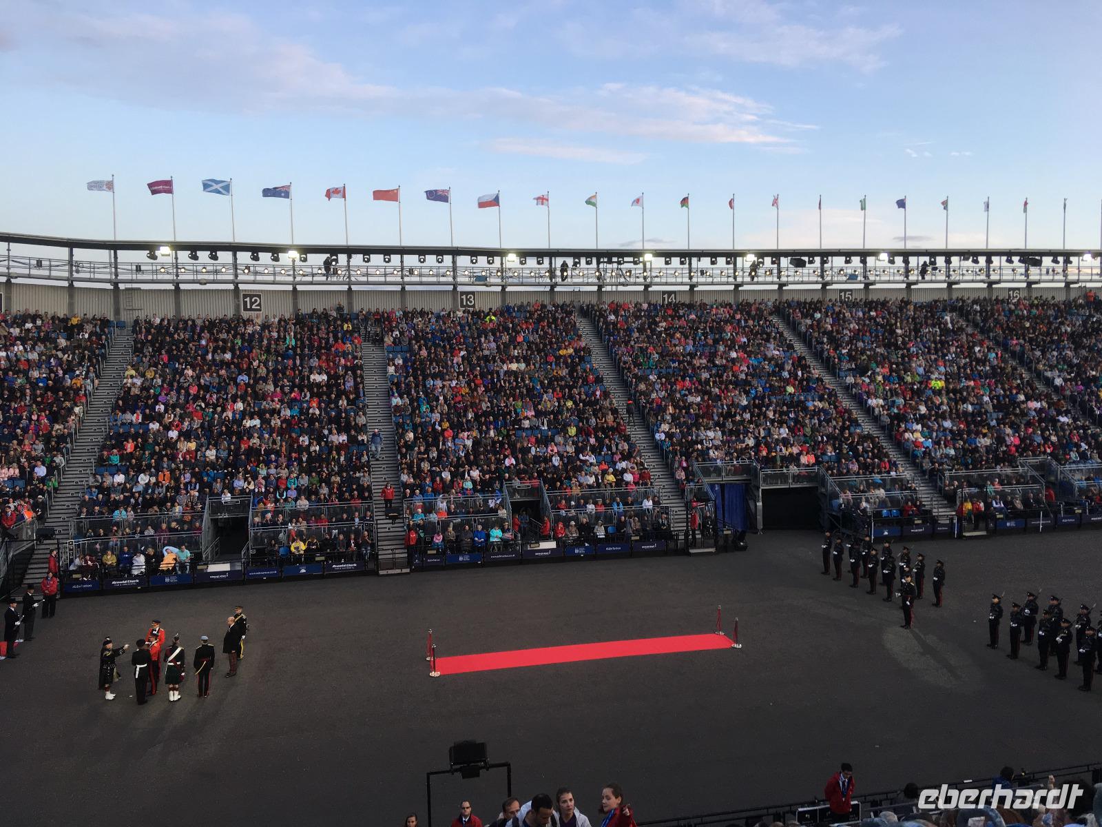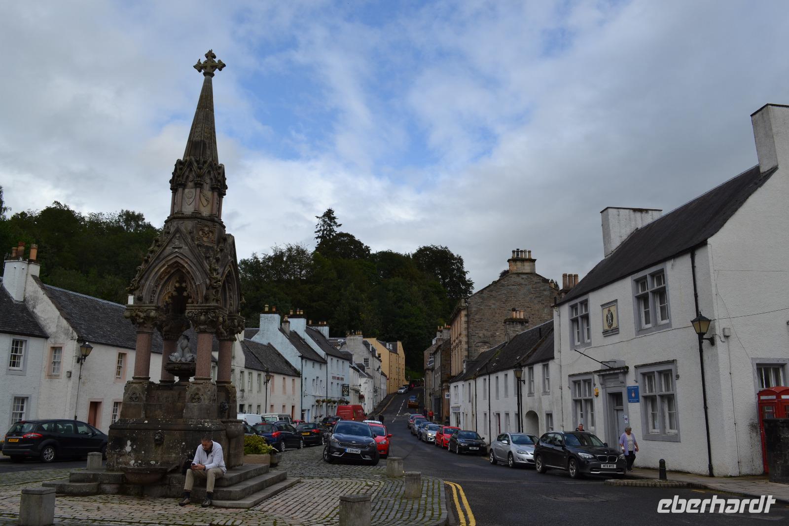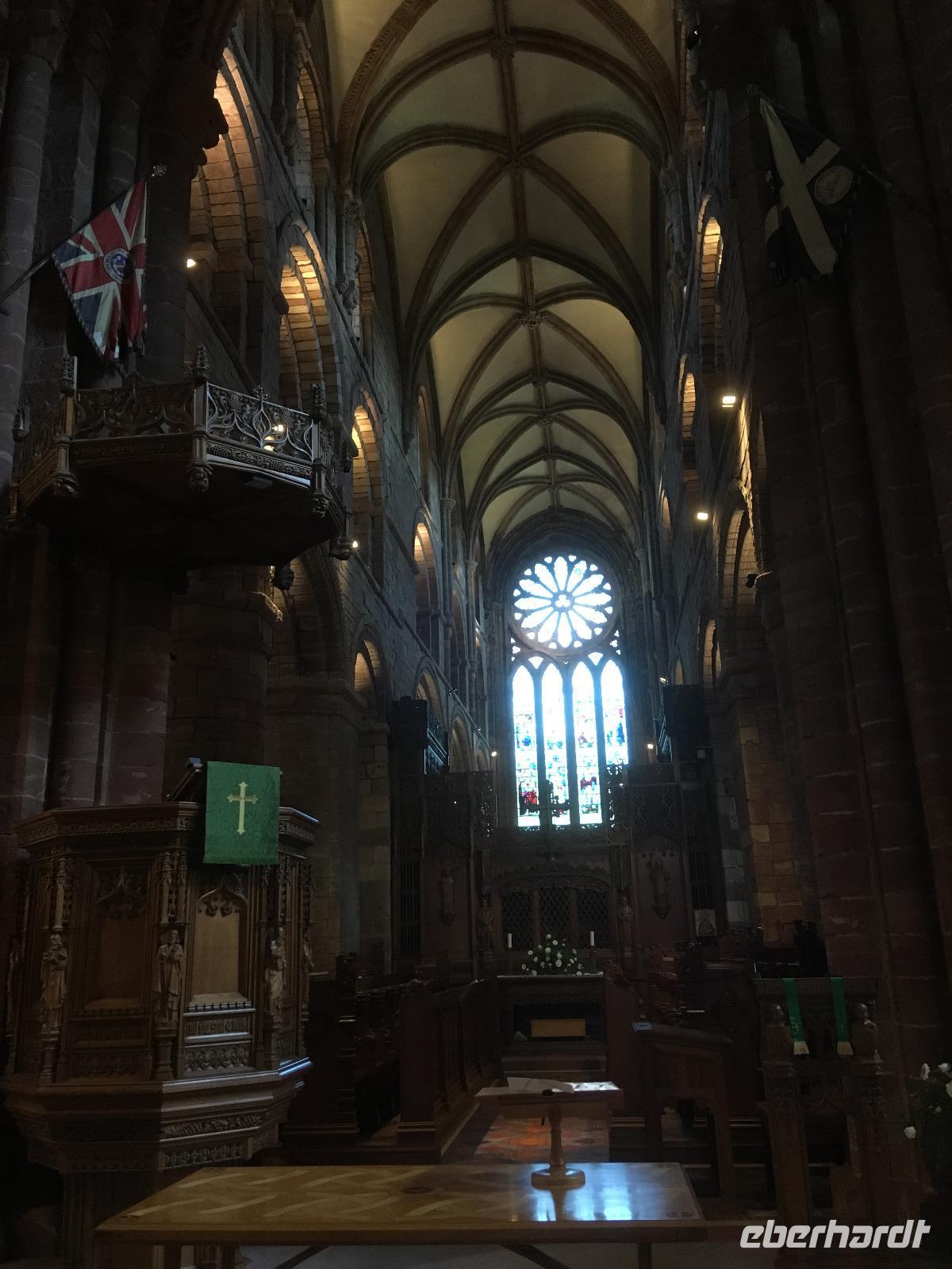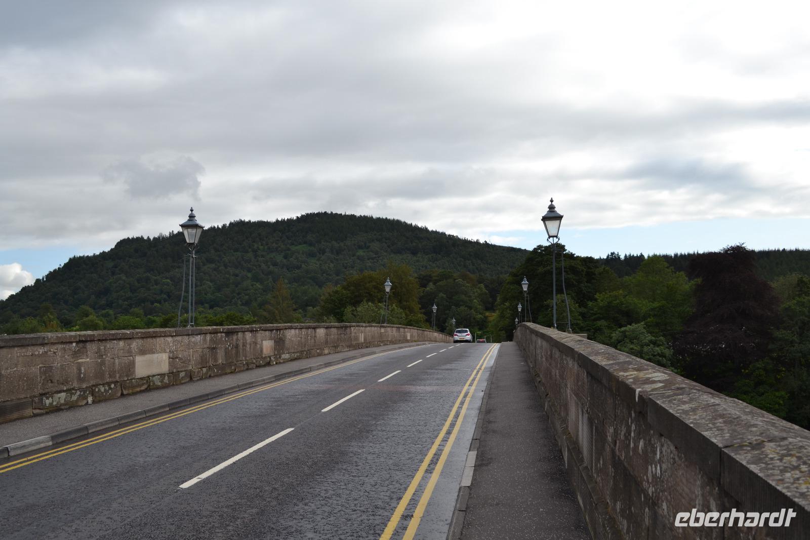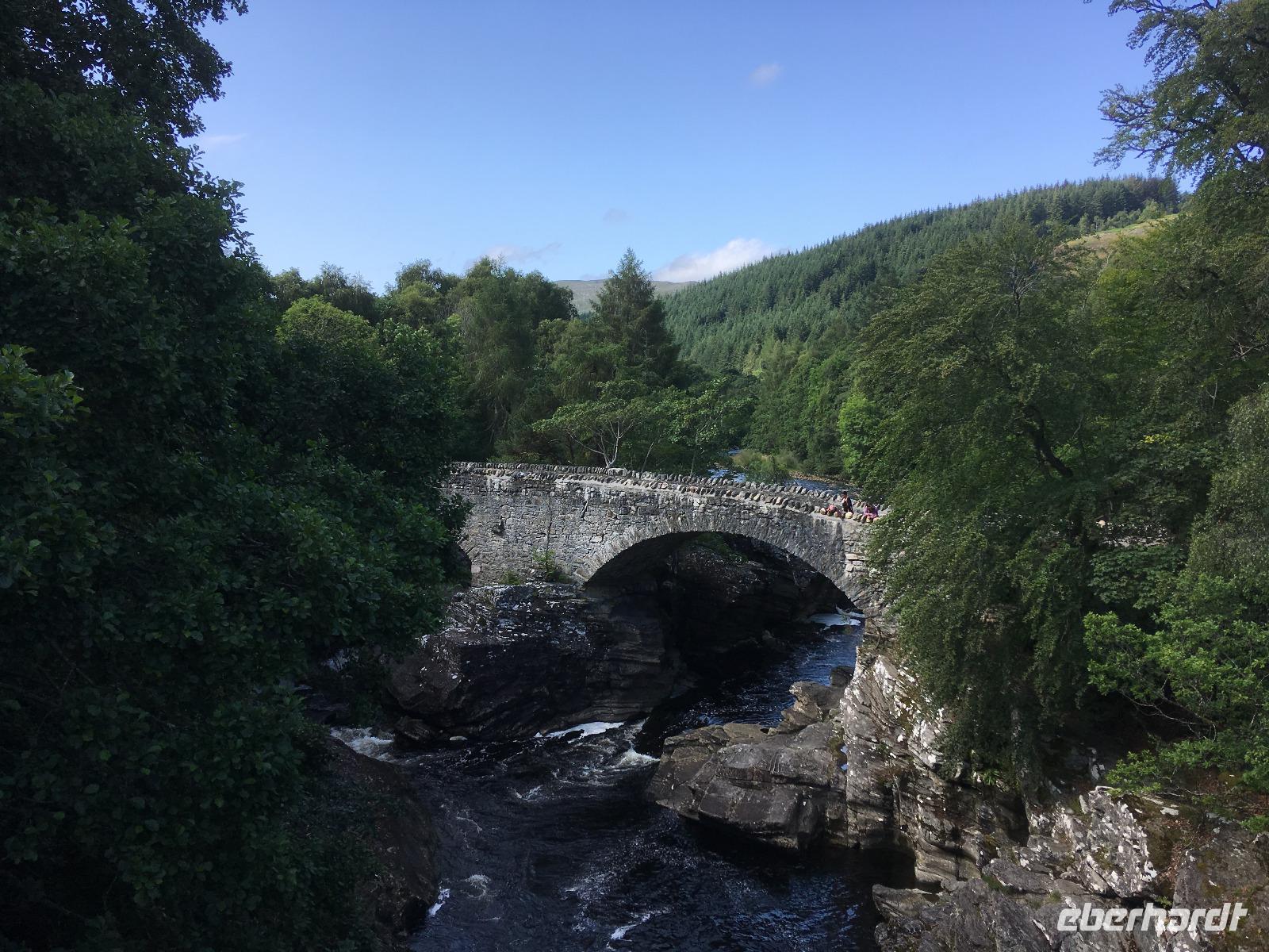 Zwischen Inverness und Edinburgh liegt der Cairngorms National Park, der zweite Nationalpark Schottlands. Auch ihm statten wir einen Besuch ab und absolvieren eine Wanderung. Sie führt uns um den malerisch gelegenen Loch Morlich herum und eröffnet uns verschiedene Perspektiven auf die umliegenden Hügel und Berge. Nicht weit von hier liegt eines der beliebtesten Skigebiete und die gesamte Gegend ist sehr beliebt bei Familien, Sportbegeisterten und Outdoorfans. Am Nachmittag folgt gleich die zweite Wanderung - zu den von Robert Burns besungenen Birks of Aberfeldy. Die berühmten Birken befinden sich in einer tiefen Schlucht, und wir müssen auf der einen Seite hinauf und auf der anderen Seite, nach der Überquerung eines Wasserfalls, wieder herunter. Nachdem wir uns gleich zu Beginn der Wanderung noch über eine schottische Familie amüsiert haben, die im eiskalten Wasser des Baches badeten, und neben einer Statue des Dichters höchstselbst sitzend den Anblick genossen haben, werden wir auf dem Rückweg zur Strafe selbst von einem plötzlich einsetzenden Wolkenbruch bis auf die Haut durchnässt. Da müssen wir uns in Aberfeldy erstmal bei einem Kaffee, Tee oder Bier im Pub aufwärmen bzw. notdürftig die Klamotten trocknen, bevor wir zurück in den Bus steigen. Im hübschen Städtchen Dunkeld am River Tay statten wir nun der Kathedrale einen Besuch ab, in der ab dem 9. Jahrhundert die sterblichen Überreste des Missionars Columban von Iona aufbewahrt wurden. Der erste schottische König Kenneth MacAlpin machte Dunkeld damit zum religiösen Zentrum seines Reiches. Auf dem Weg nach Edinburgh müssen wir nun aufgrund eines schweren Verkehrsunfalls auf der A9 eine Umleitung fahren und kommen dadurch vielleicht 30 Minuten später im Hotel an als geplant. Kurz vor Erreichen der schottischen Hauptstadt überqueren wir den Firth of Forth auf einer von drei beeindruckend großen Brücken. Rechts von uns sehen wir auch die berühmte Forth Bridge, die erste vollständig aus Stahl gefertigte Brücke der Welt. Vor dem Hotel angekommen müssen wir uns von unserem Fahrer Paul verabschieden, der sein Pensum an Tagen erreicht hat, uns aber trotz einiger dialektbedingter Verständigungsschwierigkeiten dank seiner freundlichen Art sehr ans Herz gewachsen ist. Nach dem Abendessen gehen dann fast alle Gäste mit mir zum Royal Edinburgh Military Tattoo. Wir erleben eine faszinierende Darbietung von Militärmusikkapellen aus aller Welt, die in einem großen Finale mündet, bei dem hunderte Dudelsackspieler, weitere Musiker und Tänzerinnen gleichzeitig auftreten. Was für ein toller Höhepunkt des heutigen Tages und der bisherigen Reise!