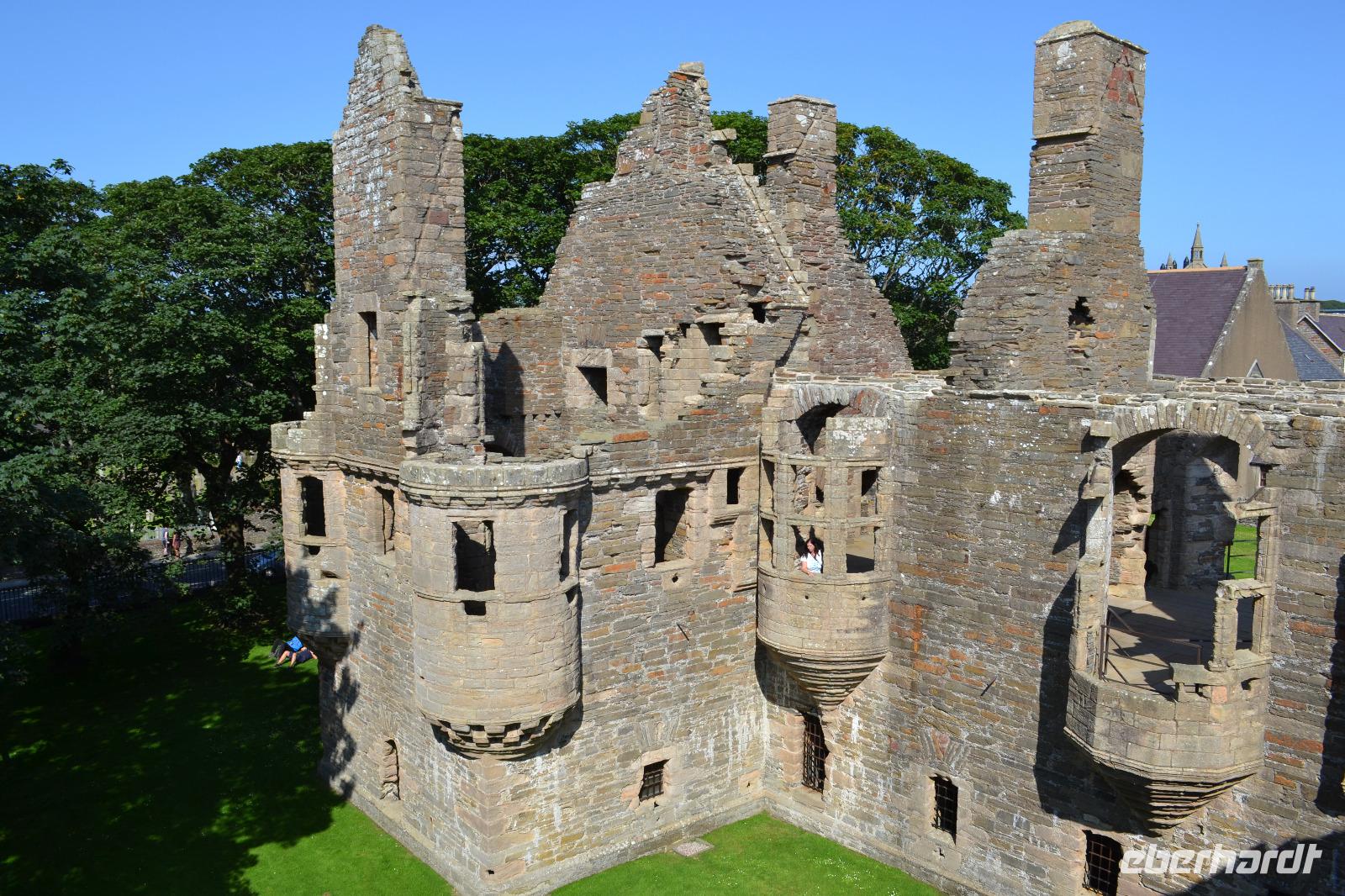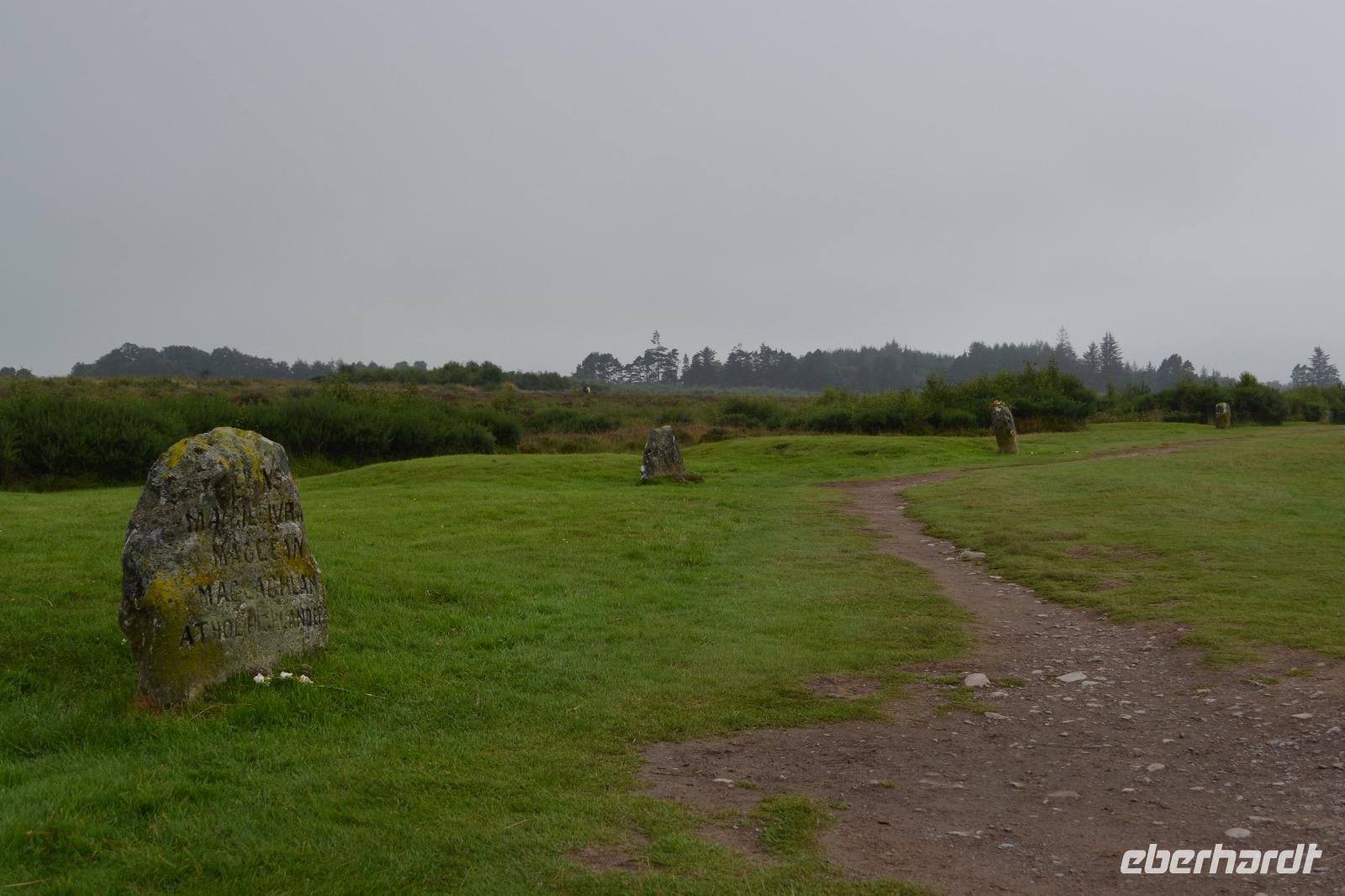 Wir müssen heute etwas zeitiger aufstehen, denn am Vormittag wollen bzw. müssen wir die Orkney-Inseln wieder verlassen und mit der Fähre zurück nach Scrabster fahren. Die Überfahrt verläuft ähnlich ruhig und die Klippen von Hoy haben einfach etwas Magisches an sich. Nach 1,5 Stunden Fahrt mit dem Bus erreichen wir dann das Dunrobin Castle, den Stammsitz des Clans Sutherland. Die Earls und späteren Dukes haben sich hier an der schottischen Ostküste nach und nach ein wahrhaft märchenhaftes kleines Schlösschen mit nur 189 Zimmerchen und einem wunderschönen Garten errichtet. Vor allem beim Blick vom Garten auf das weißgetünchte Schloss fühlt man sich fast wie in einem Disney-Film. Ein Teil der Zimmer kann besichtigt werden, und natürlich wurden auch bei der Inneneinrichtung keine Kosten und Mühen gescheut. Eine Falkenvorführung gibt es auch noch - das ist ja fast zu viel des Guten. Jetzt brauchen wir ein Kontrastprogramm, das uns wieder auf den harten, verlustreichen Boden der schottischen Realität zurückholt. Und mit der Besichtigung des Schlachtfelds von Culloden Moor steht dafür auch der perfekte Programmpunkt auf der Tagesordnung. Am 17. April 1746 endete hier der zweite - und vorerst letzte - Aufstand der Jakobiten mit einer vernichtenden Niederlage. Bonnie Prince Charlie konnte zwar durch die Highlands auf die Isle auf Skye fliehen, doch für die verarmten Highlander begannen nun schreckliche Zeiten; ihre Traditionen und ihre Kultur blieben für mehrere Jahrzehnte verboten. Das Museum vermittelt sehr anschaulich die Vorgeschichte der Schlacht und das eigentliche Schlachtgeschehen. Bei unserem anschließenden Spaziergang über das unwirtliche Schlachtfeld regnet es Tränen der Trauer. Wir fahren die vier Meilen nach Inverness und quartieren uns noch einmal für eine Nacht im Royal Highland Hotel ein.