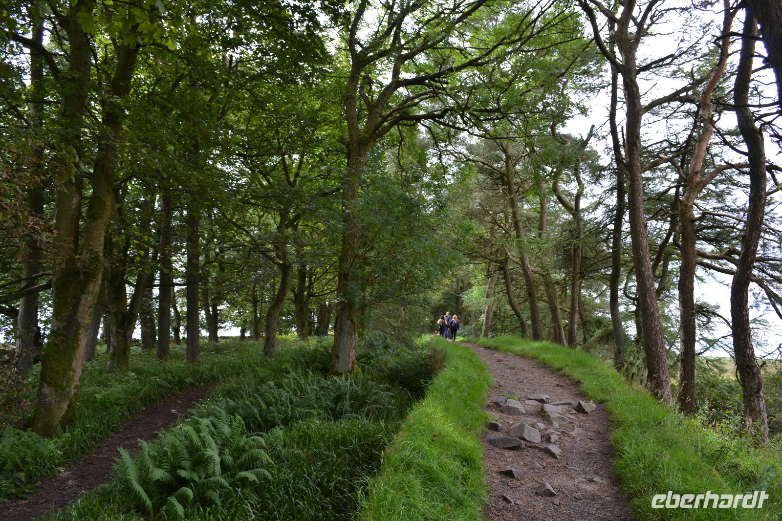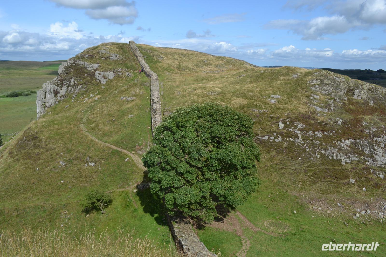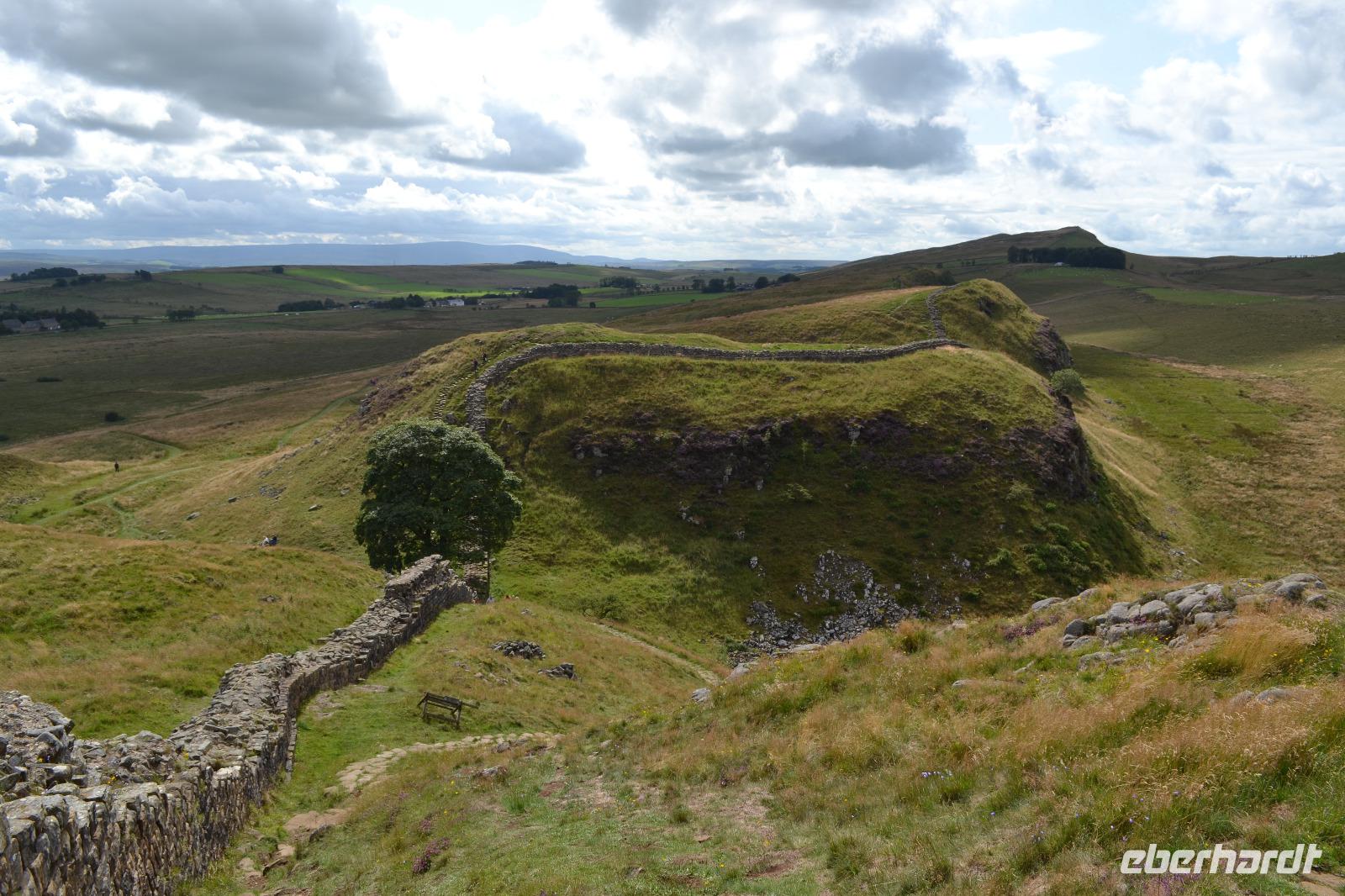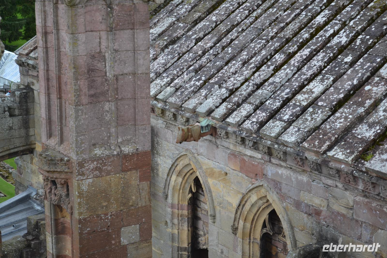 Für meine Gäste viel zu zeitig verlassen wir die schottische Hauptstadt wieder und setzen unsere Rundreise fort, die uns heute sogar zeitweilig über die Grenze nach England führen wird. Doch zunächst besichtigen wir die Melrose Abbey, eine von vier großen ehemaligen Abteien in den Scottish Borders. Von der deutschen Synchronstimme von Agent Scully aus Akte X (die leider im Februar 2019 verstorbene Franziska Pigulla) werden wir über das Gelände und durch die Geschichte der Abtei geführt. Bekannteste Sehenswürdigkeiten und Fotomotive in der Abteiruine sind ein Wasserspeier in Form eines Dudelsack spielenden Schweins und natürlich das einbalsamierte Herz von Robert the Bruce. Doch wir lernen auch viel über die Zisterzienser und die Bedeutung der Abteien für das schottische Königreich. An der schottisch-englischen Grenze machen wir natürlich einen kurzen Stopp und fotografieren die Grenzsteine und die im Wind wehenden Fahnen - musikalisch untermalt von der britischen Nationalhymne. Am frühen Nachmittag wird es dann Zeit für unseren Patrouillengang am Hadrianswall. Ohne diese römische Grenzbefestigung, mit deren Bau im Jahre 122 n. Chr. begonnen wurde, wären die Schotten wohl keine Schotten geblieben und die Menschheitsgeschichte um ein spannendes, wenn auch grausames Kapitel ärmer. Der Hadrianswall diente der Kontrolle der Waren- und Menschenströme und stellte keinesfalls den nördlichsten Außenposten des Imperiums dar. Vercovicium war das größte Kastell am Wall und sollte den mittleren Abschnitt schützen. Für Archäologen stellt es einen der wichtigsten Fundorte aus der Zeit der Römer auf den Britischen Inseln dar. Nachdem auch wir die Ruinen inspiziert haben, brechen wir ganz diszipliniert zu unserer letzten offiziellen Wanderung auf. Vom Weg entlang der alten Mauer können wir weit nach Norden und Süden ins Land blicken. Ein Ansturm der Pikten bleibt heute jedoch aus. Unterwegs passieren wir den Sycamore Tree, eine alte Platane, die im Film Robin Hood - König der Diebe in einer Schlüsselszene als Kulisse diente. In Carlisle statten wir dem Castle noch eine Stippvisite ab. Die abgesetzte schottische Königin Maria Stuart war einige Monate in der englischen Festung inhaftiert. Eine Mitarbeiterin des Museums fällt uns auf, da sie einen riesigen Schlüssel trägt. Es handelt sich tatsächlich um den Schlüssel zum Tor des Bergfrieds und wir dürfen ihn fotografieren. Beim Verlassen der Festungsanlage bemerken wir zudem ein Skelett in einem Fenster, doch wir sind uns schnell einig, dass es sich dabei höchstwahrscheinlich nicht um die Überreste Maria Stuarts handelt. Unser Hotel in Dumfries gefällt meinen Gästen sehr gut. Es liegt sehr ruhig auf einem parkähnlichen Campusgelände und außerdem gibt es ein leckeres Menü zum Abendessen.