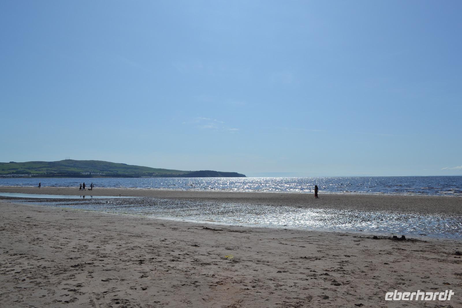 Seit gestern Abend schon befinden wir uns im Burns Country, der Region Schottlands, in der sich der Nationaldichter die meiste Zeit seines Lebens aufgehalten hat. In Dumfries ist er im Alter von nur 37 Jahren gestorben, sein letztes Kind kam am Tag seiner Beerdigung zur Welt. Seine Familie stammt jedoch ursprünglich aus Alloway. Dort befinden sich sowohl sein Geburtshaus als auch das Robert Burns Museum. Beide Gebäude besichtigen wir am Vormittag und erhalten faszinierende Einblick in sein Leben und Schaffen. Um diese Erfahrung weiter zu vertiefen, werden neben dem Geburtshaus heute von zwei sehr freundlichen Mitarbeiterinnen traditionelle Dinkelpfannkuchen gebraten, die wir probieren dürfen. Vorletzter Programmpunkt des heutigen Tages und der gesamten Reise ist der Besuch des Culzean Castle & Country Park unmittelbar an der Westküste. Das hübsche Schloss wurde im 18. Jahrhundert vom berühmten schottischen Architekten Robert Adam für den Clan Kennedy entworfen und sitzt ebenfalls auf einer Klippe. Es ist jedoch ganz anders als das Dunrobin Castle, wenn auch nicht weniger prunkvoll. Das zugehörige Gelände ist jedoch weitaus größer: es gibt eine Herde Rehe und Lamas, einen Schwanenteich, einen viktorianischen Garten, Höhlen, die nur bei Ebbe zugänglich sind, und viele Kilometer Wanderwege, die meine Gäste in gut drei Stunden und bei wieder einmal herrlichstem Wetter ablaufen können, sofern sie denn möchten. Sind wir wirklich noch in Schottland, werde ich erstaunt gefragt, als wir am Nachmittag an der Promenade in Ayr aussteigen, um ans am Sandstrand im strahlenden Sonnenschein noch ein bisschen die Beine zu vertreten oder ein Eis zu gönnen. Ja, sind wir, sogar nur ungefähr eine Stunde von Glasgow entfernt. Dort checken wir am frühen Abend wieder im uns bereits bekannten Hotel hinter dem George Square ein. Unser Abschiedsabendessen findet allerdings nicht im Hotel statt, sondern in einem sehr guten typisch schottischen Restaurant in der Merchant City, dem ehemaligen Quartier der Händler und Kaufleute, nur wenige Gehminuten entfernt. Es schmeckt allen vorzüglich, was die leicht melancholische Stimmung dämpft, die sich nun eingestellt hat, nachdem unsere schöne Reise fast vorüber ist, und wir uns von den ersten Gästen verabschieden müssen, die morgen einen späteren Flug haben und natürlich ausschlafen dürfen.