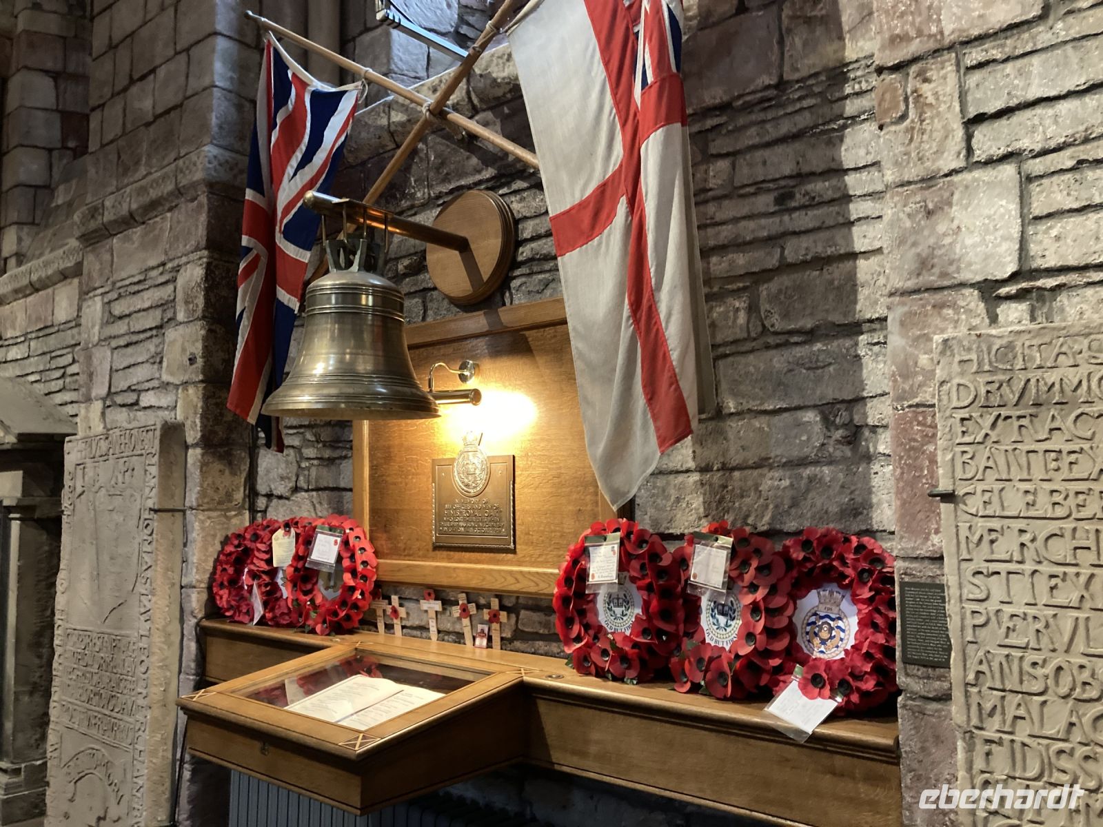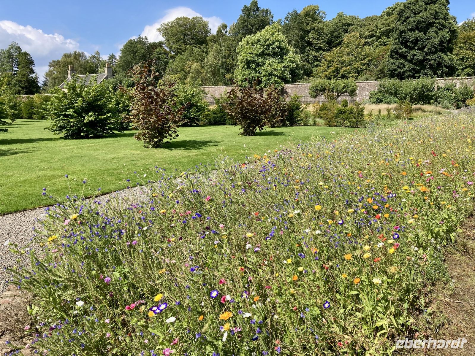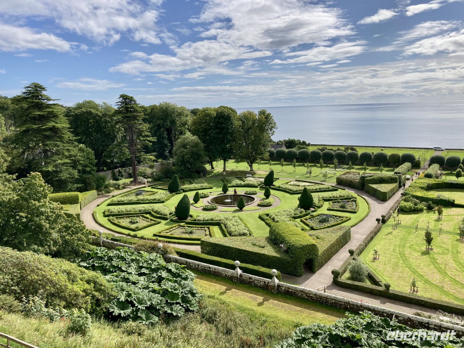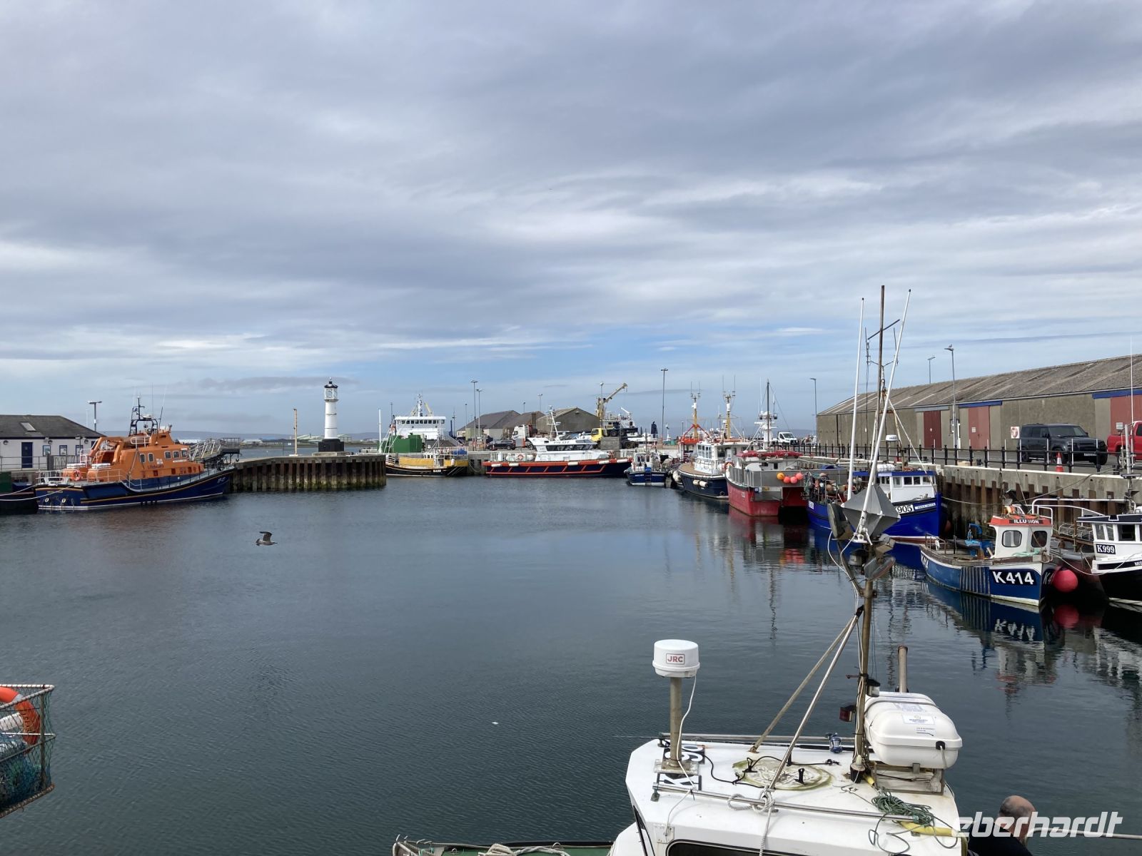 Das Rollen unserer Koffer hallt durch das nächtliche Kirkwall, dessen meiste Bewohner noch tief und fest schlafen. Reisen bedeutet manchmal leider auch ein zeitiges Aufstehen, was gar nicht am bösen Willen des Reiseleiters liegt, sondern an der Abfahrtszeit unserer Fähre zurück nach Scrapster. Und die ist heute leider schon um 06:30 Uhr ab Stromness. Dafür ist das Frühstück an Bord des Schiffes; wir können uns wieder vom Buffet bedienen und haben 1,5 Stunden dafür Zeit. Das ist doch auch mal schön entspannend! Währenddessen tuckert die Hamnavoe — begleitet von einigen Seehunden — aus dem Hafen von Stromness und wieder an den mächtigen Klippen von Hoy vorbei. Die anschließende Fahrt von Scrapster nach Golspie können wir nutzen, um etwas Schlaf nachzuholen – mit Ausnahme von Neil natürlich. Der darf dafür die Augen zumachen, während wir das majestätische Dunrobin Castle mit seinen 189 Zimmern besichtigen (wovon allerdings nur ein Teil öffentlich zugänglich ist). Während der Garten unterhalb dem Vorbild Versailles nachempfunden ist, scheint das Schloss selbst eher einem Disney-Film entsprungen zu sein. Ein bisschen Neid auf die herrliche Aussicht kommt schon auf, als wir aus dem großen Wohnzimmer oder der holzvertäfelten Bibliothek auf den Garten und das Meer blicken. Die prognostizierten hohen Heiz- und Personalkosten schrecken uns dann aber doch vom Erwerb der Immobilie ab; da soll sich der Clan Sutherland doch bitte schon selbst mit rumschlagen. Apropos schlagen: Vernichtend ge-schlagen wurden die Jakobiten unter Bonnie Prince Charlie 1746 auf dem Schlachtfeld von Culloden, trotz anfänglicher Erfolge in ihrer Kampagne. Da viele Highland-Clans Anhänger der Stuart-Monarchie waren, nimmt die Schlacht nach wie vor einen wichtigen Platz in ihrer Erinnerungskultur ein. Deshalb kann das Schlachtfeld auch heute noch besichtigt werden, einschließlich eines gut konzipierten Museums und vieler Gedenksteine der einzelnen Clans. Natürlich hat auch hier die Outlander-Saga für ein erhöhtes Besucheraufkommen gesorgt. Das Wetter wird nun etwas wechselhafter, bleibt aber trocken. So können wir tatsächlich nach dem erneuten Einchecken im Royal Highland Hotel in Inverness und unserem obligatorischen 3-Gänge-Menü den geplanten kleinen Abendspaziergang am River Ness zu den Ness Islands unternehmen und noch einmal nach Nessie (oder einem neuen Zweitwohnsitz in einem der schicken Häuschen entlang des Flusses) Ausschau halten.