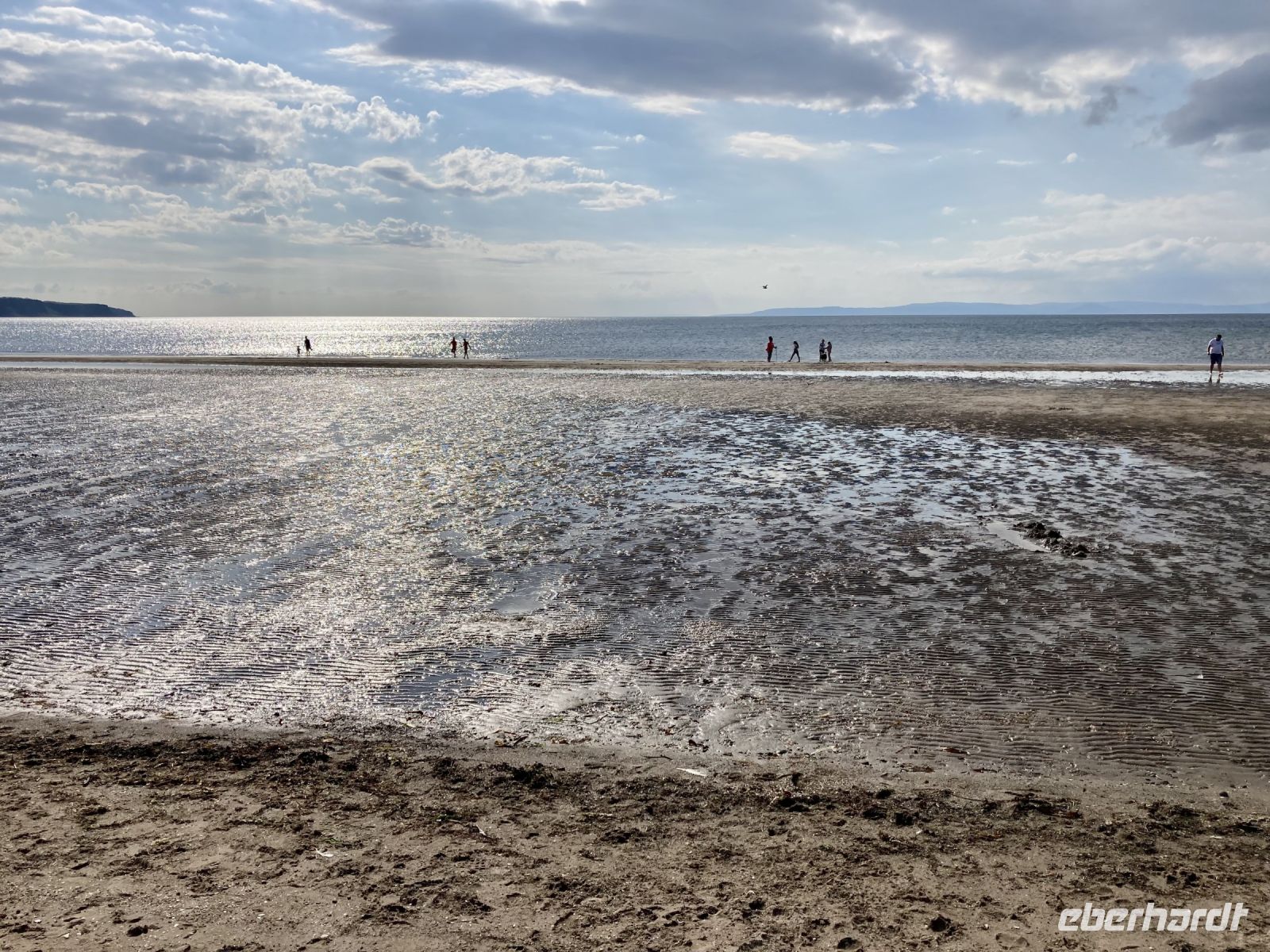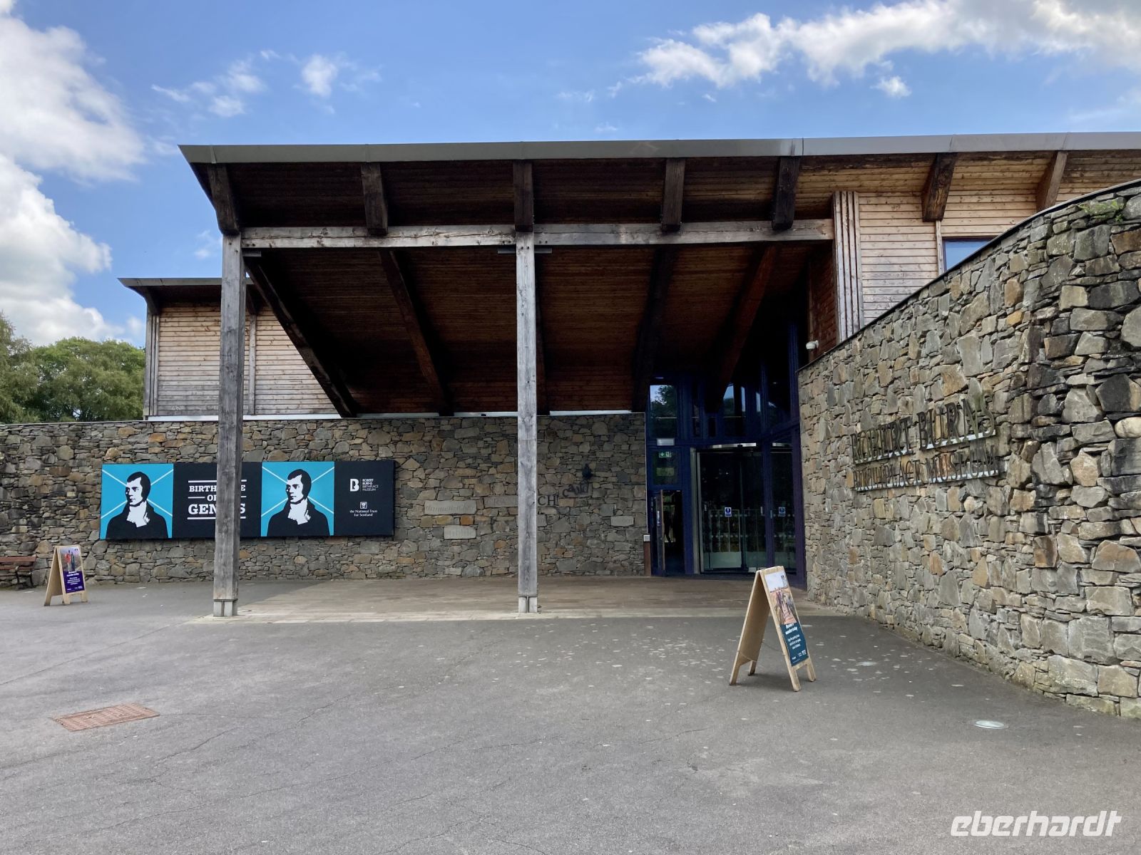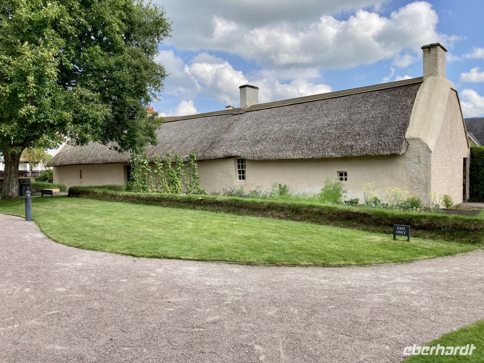 Auch gestern war das Wetter ja ganz schottlanduntypisch wieder trocken, warm und insgesamt wenig bewölkt. Heute legt der Wettergott noch eine Schippe drauf und will uns zeigen, dass auch in Schottland ein richtig herrlicher, fast schon mediterraner Sommerurlaubstag möglich ist. Die längste Fahrstrecke des Tages bringen wir gleich am Morgen/Vormittag hinter uns und erreichen pünktlich auf die Minute das Culzean Castle an der schottischen Westküste. Das vom berühmten schottischen Architekten Robert Adam entworfene Schloss ist in einen riesigen Landschaftspark mit Ruinen, Schwanenteich, viktorianischem Garten und viel Wald eingebettet, den meine Gäste bei bestem Wetter erkunden können. Die Sonne brennt für britische Verhältnisse regelrecht vom Himmel, weshalb Sitzbänke im Schatten heiß begehrt sind. Doch auch das auf den Klippen sitzende Schloss selbst ist mit seinen herrschaftlichen Räumen, der imposanten Waffensammlung gleich im Eingangsbereich und der großen Küche am Ende des Rundgangs einen Besuch wert. Am Nachmittag widmen wir uns dem nächsten berühmten Robert, auf dessen Spuren wir bereits in Aberfeldy gewandert sind, Robert Burns. In Alloway befinden sich nicht weit voneinander entfernt und fußläufig erreichbar sowohl sein Geburtshaus als auch das Robert Burns Museum. Das Haus seiner Eltern führt uns vor Augen, aus welchen bescheidenen Verhältnissen Burns eigentlich stammte, und dennoch zu einer großen und weltweit berühmten Persönlichkeit werden konnte, nicht zuletzt deshalb, weil eine gute schulische Bildung ihrer Kinder für die Familie ungemein wichtig war. Natürlich war Burns auch ein Frauenheld und Lebemann, was die Schotten alljährlich beim Burns Supper durchaus ironisch zu würdigen pflegen. Ohne seine Ode an den Haggis wäre das Nationalgericht der Schotten vielleicht schon längst in Vergessenheit geraten! An so einem wunderschönen Sommertag darf auch ein Eis am Strand nicht fehlen, weshalb wir zu Strandpromenade von Ayr weiterziehen. Sich in der Sonne am Sandstrand bräunen – ja, auch das ist in Schottland zur Überraschung meiner Gäste durchaus möglich, und wird an einem Tag wie heute von den Einheimischen in großer Zahl zelebriert. Obwohl unser Blick nun sehnsüchtig auf das Meer und die Isle of Arran am Horizont streift, müssen wir unseren Urlaub in Schottland nun langsam beenden und nach Glasgow zurückkehren. Die Rundreise endet, wo sie begonnen hat: im Argyll Hotel auf der Sauchiehall Street, unweit der Kelvingrove Art Gallery. Für unser Abschiedsabendessen laufen wir ein paar Minuten zu einem Grillrestaurant. Passenderweise gibt es Haggis-Kroketten als Vorspeise, und auch die Auswahl an Whiskys und Bourbons kann sich sehen lassen. Und dann wird sogar noch „Auld Lang Syne“ angestimmt ...