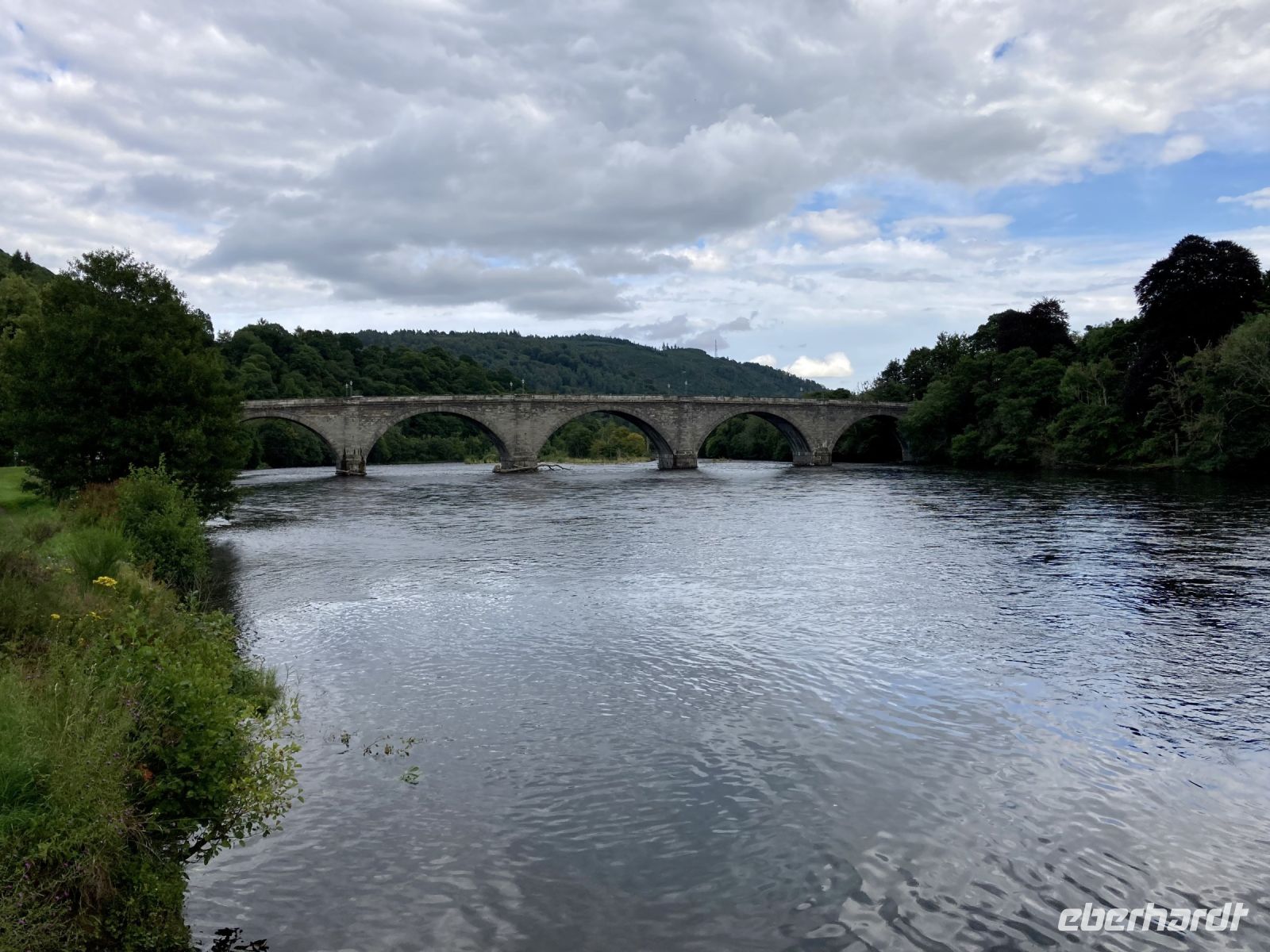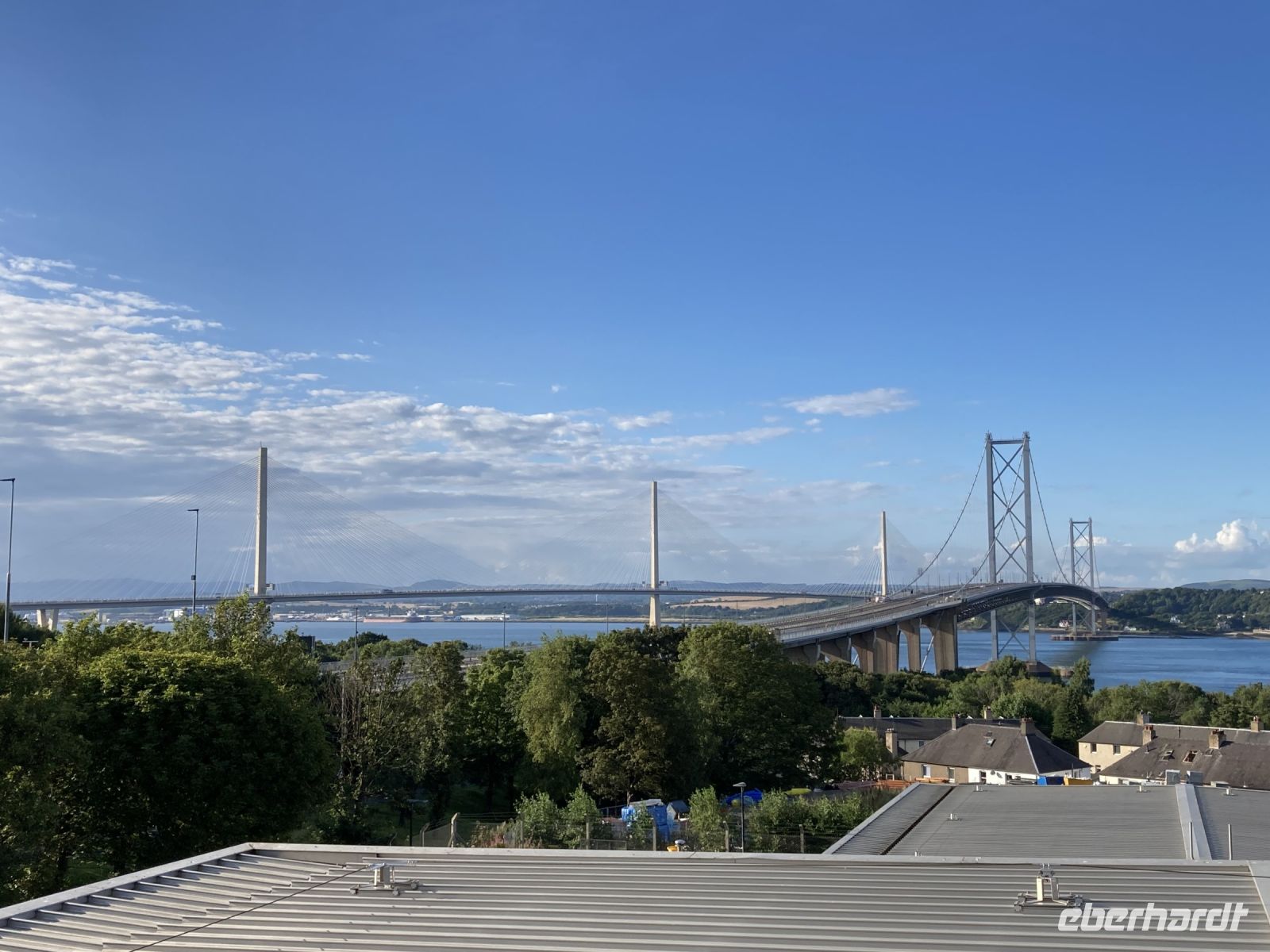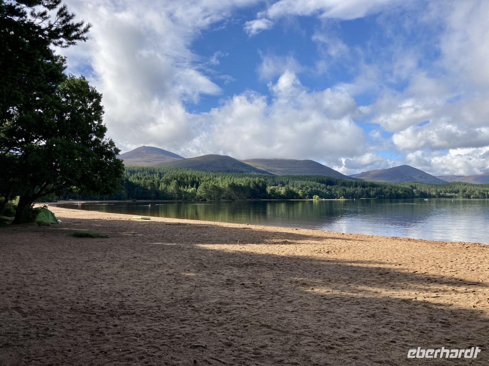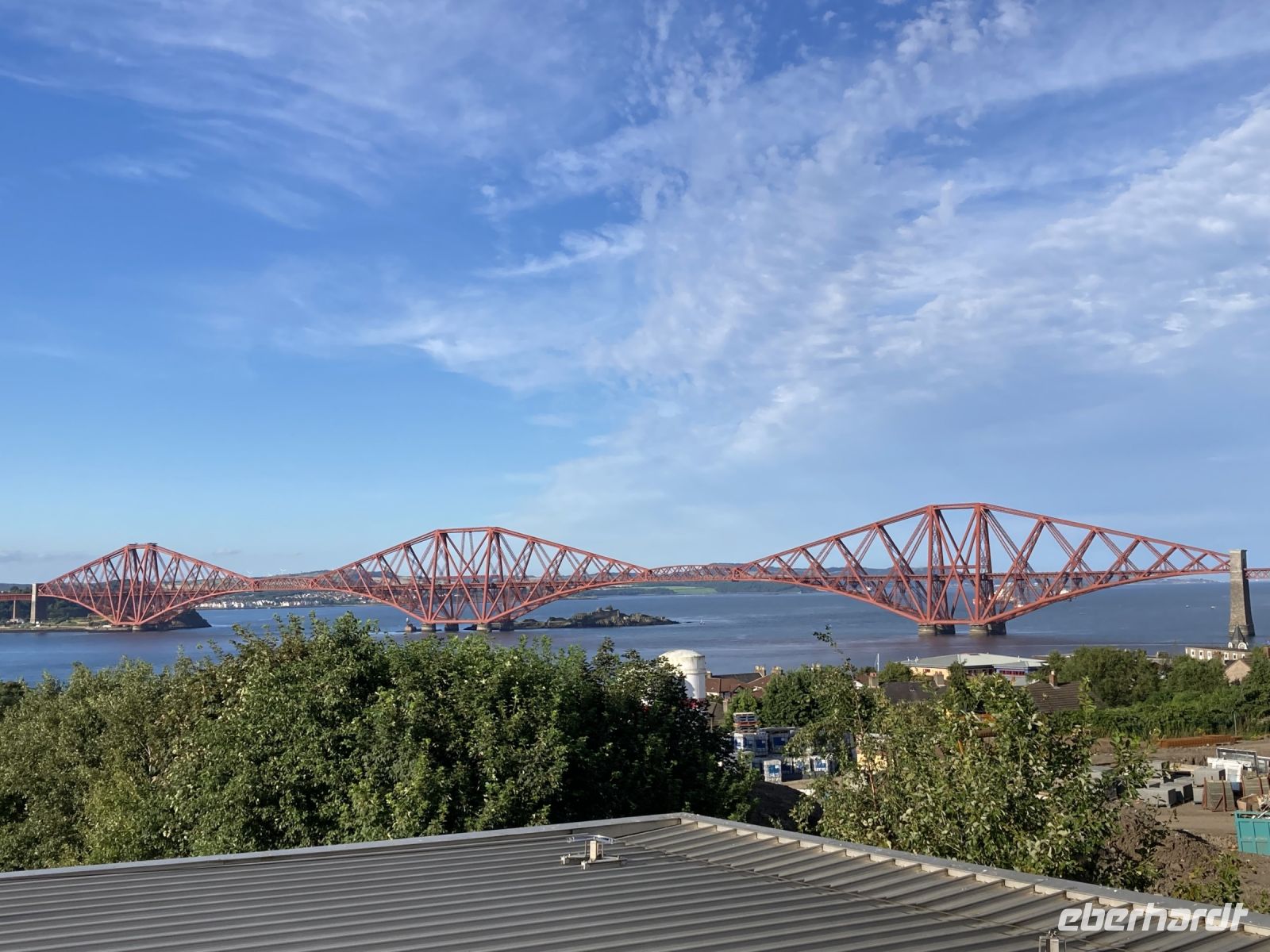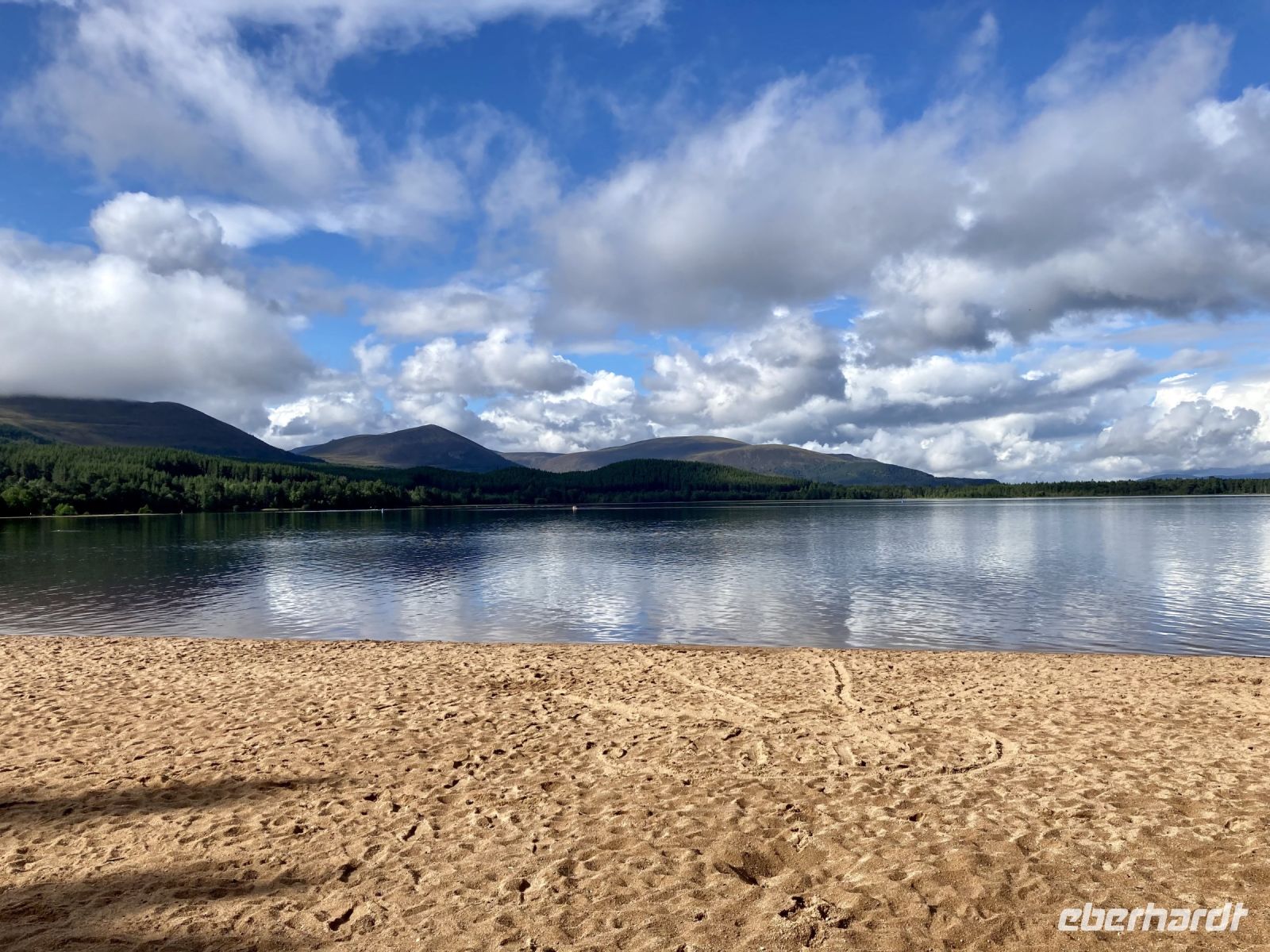 Mit dem heutigen Tag – der Fahrt nach Edinburgh – nähern wir uns unweigerlich dem geplanten Höhepunkt der Reise und Verlassen schließlich auch die Highlands. Bis dahin stehen aber noch zwei kleinere Wanderungen sowie 1–2 (oder auch 3?) Überraschungen für meine Gäste auf dem geheimen Ablaufplan des Reiseleiters. Wir verlassen also Inverness und nehmen Kurs auf den zweiten schottischen Nationalpark, den Cairngorms-Nationalpark, der sogar der größte des gesamten Vereinigten Königreichs ist. Nach einem Einkaufsstopp in Aviemore, einem ausgesprochen touristisch geprägten Ort mit vielen Outdoor-Geschäften (der Vergleich mit Österreich oder der Schweiz drängt sich auf) fährt uns Neil an den Loch Morlich im Herzen des Parks. Bei wieder einmal tollem Wetter – wie machen das meine Gäste bloß? – wandern wir einmal um den See herum und erhalten immer wieder neue Perspektiven auf die Berggipfel der Cairngorms, an deren Hängen sich drei Skigebiete befinden; die Pisten sind deutlich erkennbar. Kaum habe ich meine Wetterengel gelobt, fallen doch ein paar Regentropfen vom Himmel, obwohl wir den Bus noch nicht ganz erreicht haben. Petrus sieht seinen Irrtum jedoch schnell ein und dreht den Hahn geschwind wieder zu. Geht doch! Für so viel Einsatz hat sich die Gruppe die erste Überraschung verdient, weshalb ich Neil bitte, kurz beim Highland Chocolatier anzuhalten. Allein schon der Duft, als wir die Schokoladenfabrik durch die Eingangstür betreten! Himmlisch! Reiseleiter Andreas ist in seinem Paradies! Vielleicht nicht paradiesisch, aber wunderschön findet er auch immer wieder die Wanderung zu den Birks auf Aberfeldy, auch wenn einige Höhenmeter zu überwinden sind. Doch die Schlucht ist wunderschön und endet an einem Wasserfall – kein Wunder, dass Robert Burns hier zu seinem Volkslied „The Birks of Aberfeldy“ inspiriert wurde! Wieder eine schöne Wanderung, wieder komplett anders. Trotzdem dürstet es meine Gäste nach so viel Anstrengung nach einer Erfrischung – wie gut, dass der Reiseleiter in Dunkeld einen Laden kennt, wo es gutes Eis zu kaufen gibt! Die Eistheke erweist sich sogar als größerer Anziehungsmagnet als die Ruine der berühmten Kathedrale mit den Überresten des Missionars Columba. Ich merke schon, wo die Prioritäten liegen ... Nun aber weiter nach Edinburgh! Der mächtig breite Firth of Forth stellt ein letztes Hindernis dar, bevor wie die Hauptstadt erreichen. Zum Glück führen heutzutage drei Brücken über ihn, darunter die imposante rote Forth Bridge (noch ein Weltkulturerbe!). Gab es da nicht einen Aussichtspunkt für einen Fotostopp? Hach, als Reiseleiter hat man es auch nicht leicht mit seinen geheimen Überraschungen, wenn ein Teil der Gäste schon mal auf einer Schottlandreise war. Ja, natürlich gibt es den, und natürlich machen wir da auch einen Halt! Den Fotostopp nutzen wir dann nicht nur, um die Flasche Highland Park noch bis auf den letzten Tropfen zu leeren, sondern auch, um uns von unserem liebgewonnenen Neil zu verabschieden, der ab morgen seinen wohlverdienten Urlaub antreten kann. Sein Nachfolger Les erwartet uns bereits am Hotel, das etwas nördlich des Stadtzentrums ebenfalls am Firth of Forth liegt, und lässt sich sogar gleich zu einem Abendspaziergang zur Royal Yacht Britannia überreden, die nicht weit entfernt im Hafen liegt. Der Ankerplatz ist allerdings gleich hinter einem riesigen Shopping Centre, weshalb wir etwas suchen müssen, bis wir schließlich im dortigen Parkhaus doch noch einen guten Platz finden, von dem aus wir die königliche Yacht tatsächlich fotografieren können. Unterwegs treffen wir sogar auf die Fregatte Hessen der deutschen Marine – ein Gruß aus der Heimat sozusagen. Wir sind nun schon sehr gespannt, was uns morgen in der Hauptstadt erwartet!
