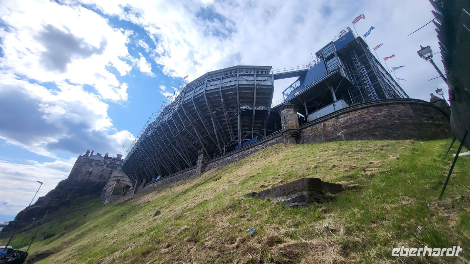 Am Edinburgh Castle, einem majestätischen Wahrzeichen, können wir bereits die Vorbereitungen für das bevorstehende Fringe Festival sehen. Die Stadt ist voller Leben, und wir können erahnen, dass es im August, wenn das weltberühmte Festival stattfindet, noch lebendiger und voller Besucher sein wird.