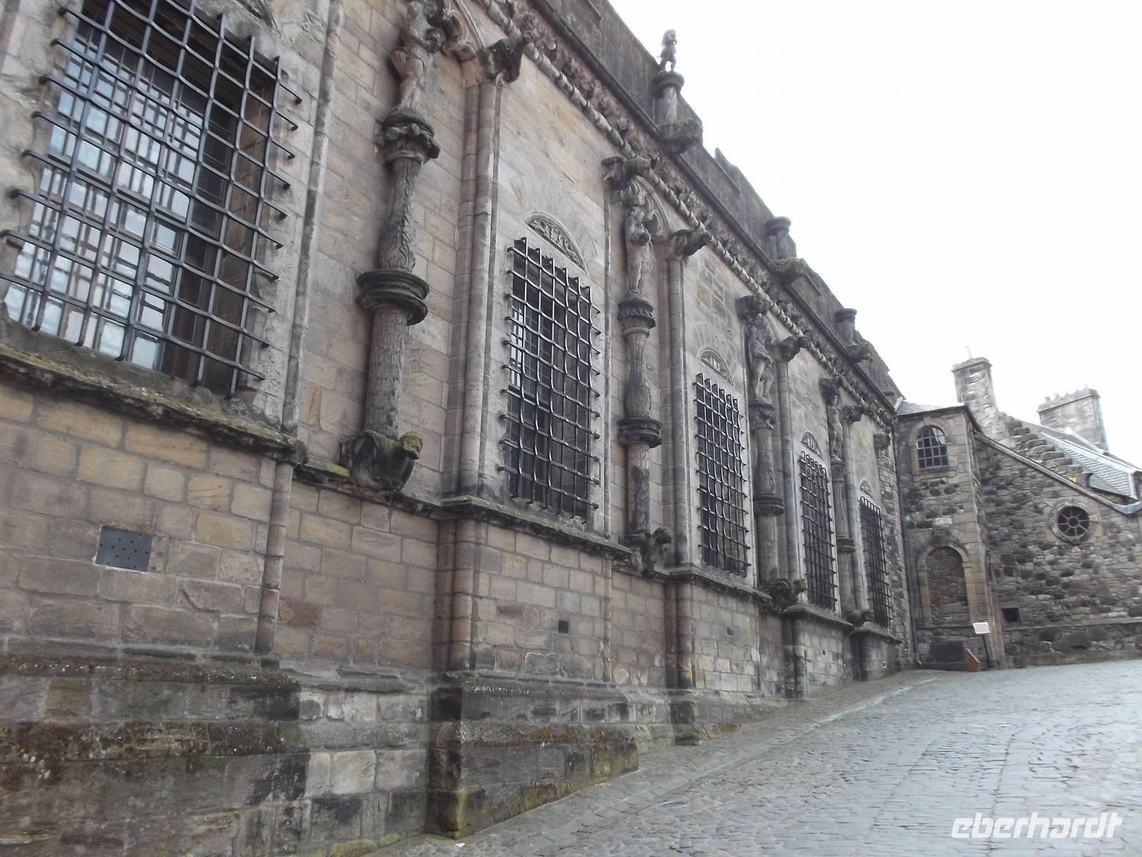 Vom Falkirk Wheel führte unser weiterer Weg nach Stirling, einst Hauptstadt des Königsreiches Schottland. Hier besichtigten wir die Burg, die auf einem Vulkanhügel thronend die Stadt weithin überragt. Da es nur von einer Seite erreichbar und ansonsten von steilen Klippen umgeben ist, war die schon sehr früh hier errichtete Burg stets strategisch wichtig. Der heute noch präsente Palast wurde Mitte des 16. Jh. erbaut und ist eine interessante Stilmischung aus Spätgotik und Renaissance. Besonders aufwendig und spektakulär ist die „Great Hall", die Versammlungs- und Audienzhalle, in der auch das schottische Parlament tagte. Nach einer kurzen Führung in der Burg hatten wir Gelegenheit, uns individuell umzusehen und es blieb auch noch etwas Freizeit für die nahegelegene Altstadt.