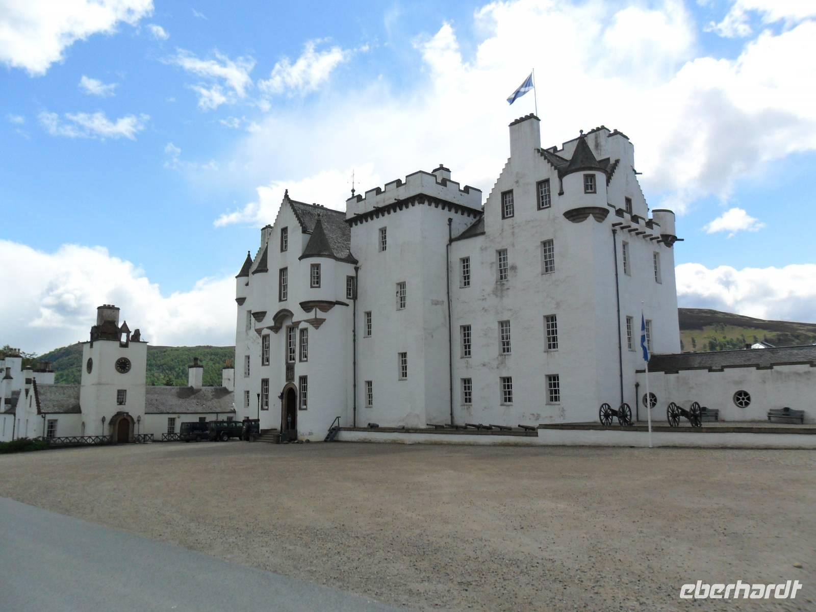Nach der Führung und natürlich der Verkostung des edlen Tropfens war es Zeit, zu den Highland Games aufzubrechen. Sie fanden im Park des Blair Castle statt, dem Sitz des Herzogs von Atholl. Er ist der einzige Adelige in Großbritannien, der eine Privat-Armee unterhalten darf, die berühmten „Blair Atholl Highlanders". Das Schloss, in den vergangenen Jahrhunderten vielfach umgebaut, gehört zu den malerischsten Schlössern in Schottland. Es besitzt noch die komplette Einrichtung der Prunkgemächer, die eindrucksvoll das Leben der Adeligen in Schottland widerspiegeln und wer von unseren Gästen wollte, konnte die Burg besichtigen, da die daneben stattfindenden Hochlandspiele viel Freiraum ließen.