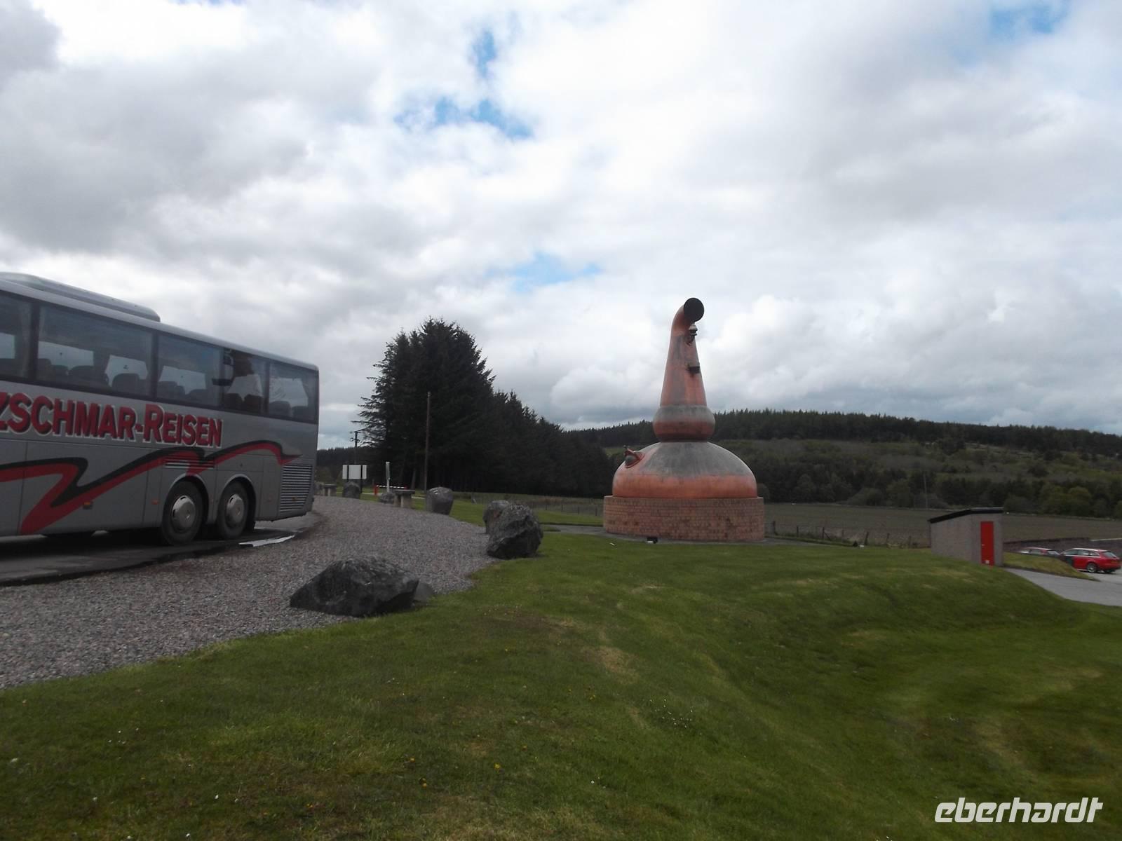 Nach unserem vormittäglichen Aufenthalt in der „Hauptstadt der Highlands" ging es gleich weiter zu einer Whiskyprobe - nein - natürlich gab es davor ein Führung. Die Besonderheiten beim Malzen, Maischen, Brennen und Lagern kannten wir ja als Prinzip schon, aber jede Whisky-Destille hat ihre Besonderheiten und „Geheimnisse" - sonst gäbe es ja nicht die teilweise erheblichen Unterschiede im Geschmack des „Lebenswassers". Glen Ord in den Highlands, wenige Kilometer von Inverness ist nicht mehr so sehr wie im Vorjahr , Baustelle, aber man bemerkt die Modernisierung überall. Ihr Ziel, die produzierte Alkoholmenge auf etwa elf Millionen Liter Whisky verdoppeln, hat die Brennerei inzwischen erreicht. Bei uns nicht ganz so bekannt, gehört die recht große Glen Ord Destille zum weltweit größten Spirituosenkonzern Diageo. Der hat eine Besonderheit: er läßt die Gelder aus seiner Pensionskasse als Anlage in zweieinhalb Millionen Fässern Whisky ruhen !