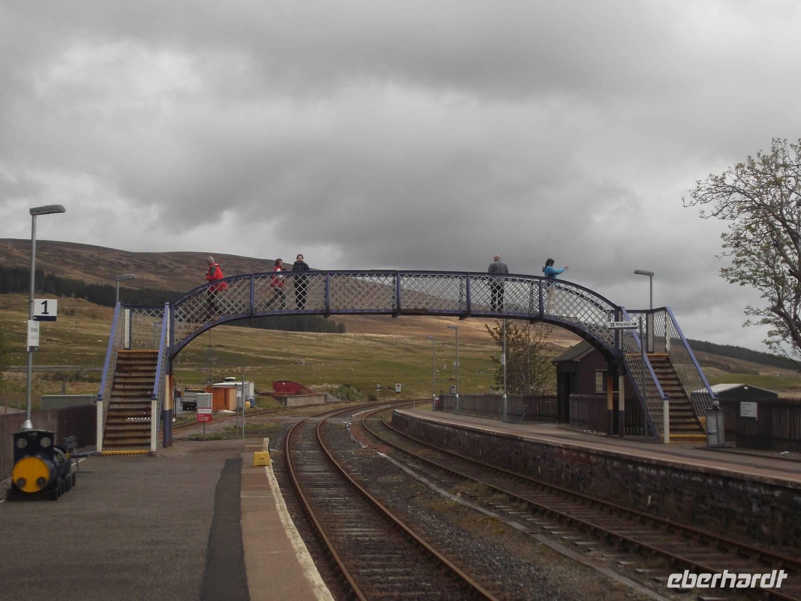 Bis nach dem Höhepunkt, dem Aufmarsch der Dudelsackkapelle, blieben wir hier, ehe wir unseren Weg nach Norden fortsetzten. Einen kleinen Abstecher gönnten wir uns noch zum historischen Bahnhof „Boat of Garden". Die im viktorianischen Stil erhaltene Eisenbahnstation wird heute von der Museumseisenbahn „Strathspey Railway" betrieben und gehört zu einer 1965 stillgelegten Eisenbahnstrecke durch das Spey-Tal.